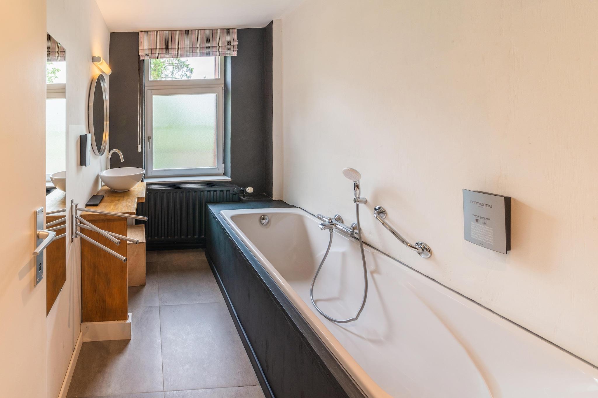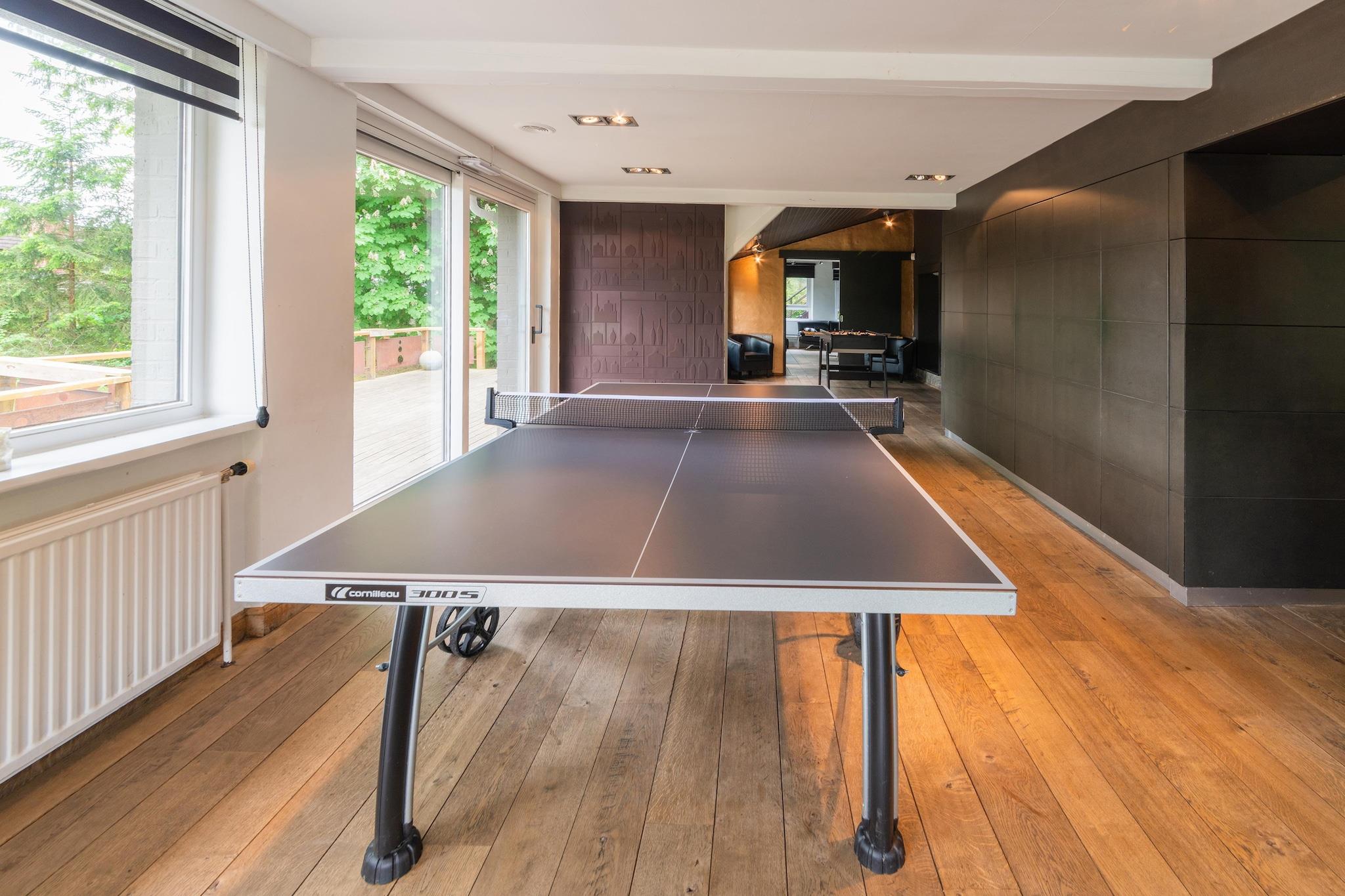 Denne dejlige villa er fredeligt beliggende lige uden for centrum af Barvaux, hvilket gør den ideel til store grupper, der søger komfort og ro. Ejendommen har en rummelig, delvist lukket have med en legeplads, der tilbyder et sikkert og afslappende sted for børn at lege og for gæster at slappe af. Villaen er blevet omhyggeligt renoveret og omfatter adskillige komfortable soveværelser, hver med sit eget private badeværelse for at sikre bekvemmelighed og privatliv for alle. Et professionelt køkken er til rådighed, fuldt udstyret til at tilberede lækre måltider til din gruppe, mens den rummelige terrasse inviterer dig til at nyde snacks og drinks med stil. Villaen ligger kun 2 km fra centrum af Barvaux og tilbyder nem adgang til butikker, restauranter og supermarkeder. I nærheden finder du Adventure Valley-parken og det helt nye indendørscenter, perfekt for naturelskere, kulturentusiaster og sportsfans, der ønsker at udforske området.