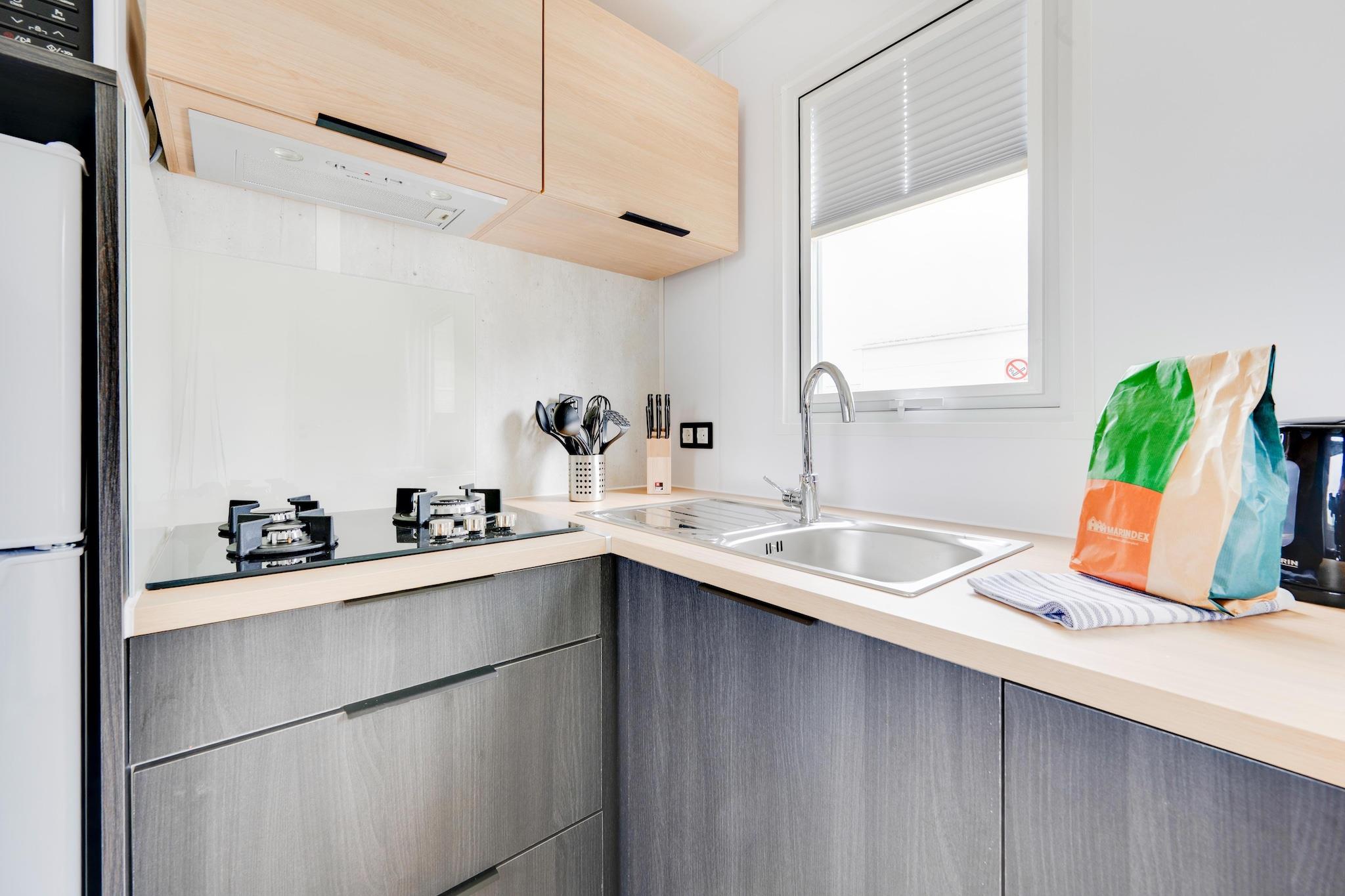Gemt væk i Berlares fredelige omgivelser tilbyder denne hyggelige campingvogn et enkelt, men charmerende tilflugtssted for op til 6 gæster. Perfekt til familier eller venner, der ønsker at slappe af tæt på naturen, kombinerer den kompakt bolig med alt, hvad der er nødvendigt for et afslappet og komfortabelt ophold. Indvendigt er campingvognen omhyggeligt indrettet for at få mest muligt ud af sin plads. Det åbne køkken er udstyret med kogeplader, køleskab med fryser, kaffemaskine, elkedel og alt basalt køkkengrej, hvilket gør det nemt at tilberede lette måltider. Opholds- og spisestuen har en dobbelt sovesofa, tv og et siddehjørne, hvilket skaber et varmt rum at slappe af efter en dag udendørs. Der er to soveværelser, et med en dobbeltseng og et andet med to enkeltsenge, samt et badeværelse med bruser og et separat toilet. Aircondition og en luft-til-luft-varmepumpe sikrer komfort i alle årstider. Træd ud gennem havedørene til en privat terrasse med havemøbler, ideel til at nyde frisk luft, morgenkaffe eller rolige aftener. De naturlige omgivelser bidrager til den afslappede feriestemning. Beliggenheden er perfekt til at udforske regionen. Berlares berømte Donkmeer-sø ligger i nærheden og byder på vandrestier, sejlads og afslappende steder ved søbredden. Du kan også besøge Donkmeer Park, nyde cykelruter gennem landskabet eller udforske nærliggende byer som Dendermonde og Gent for kultur, shopping og restauranter. Et hyggeligt og afslappet ophold, ideelt til at slappe af og nyde naturens enkle glæder.