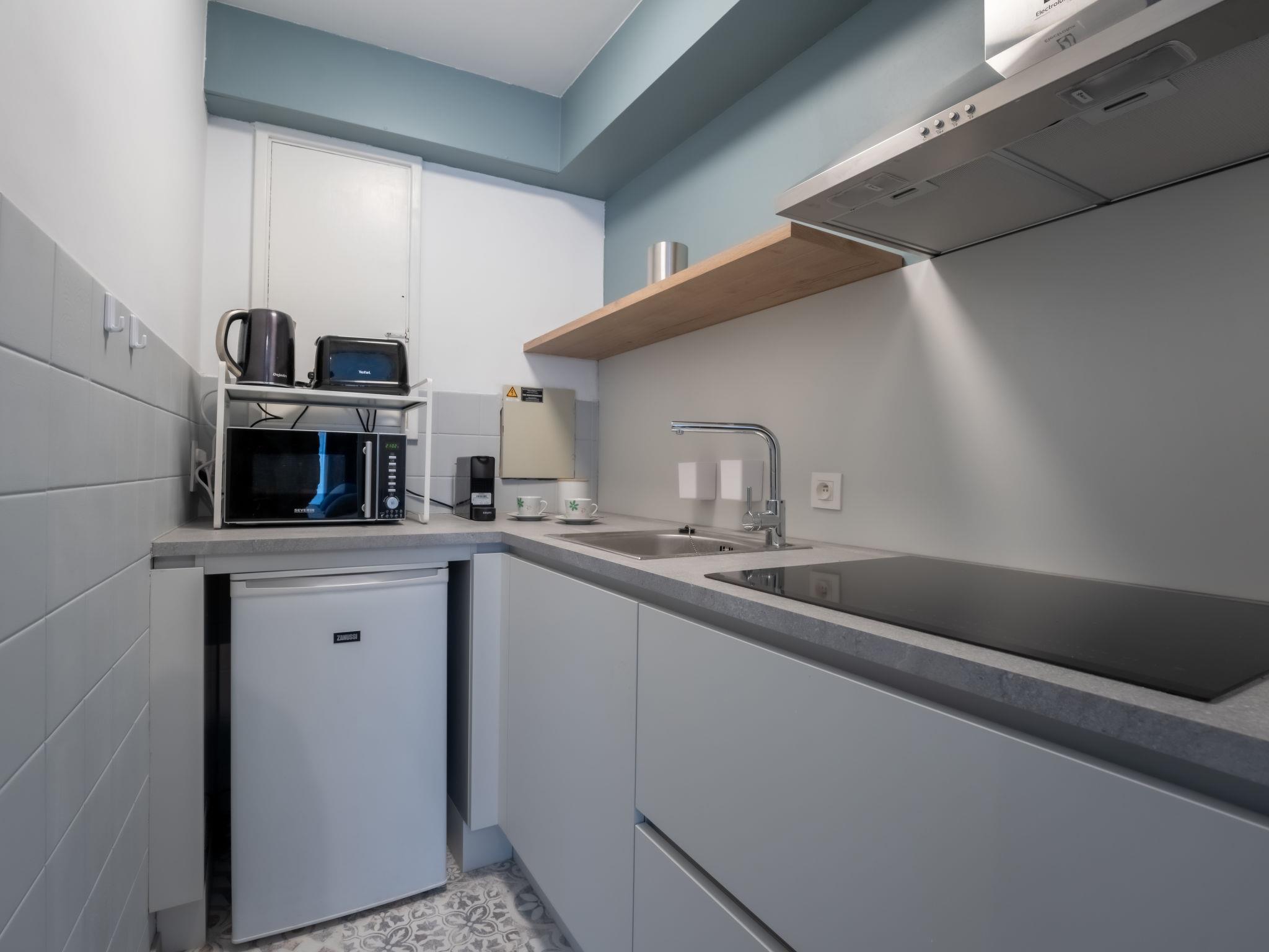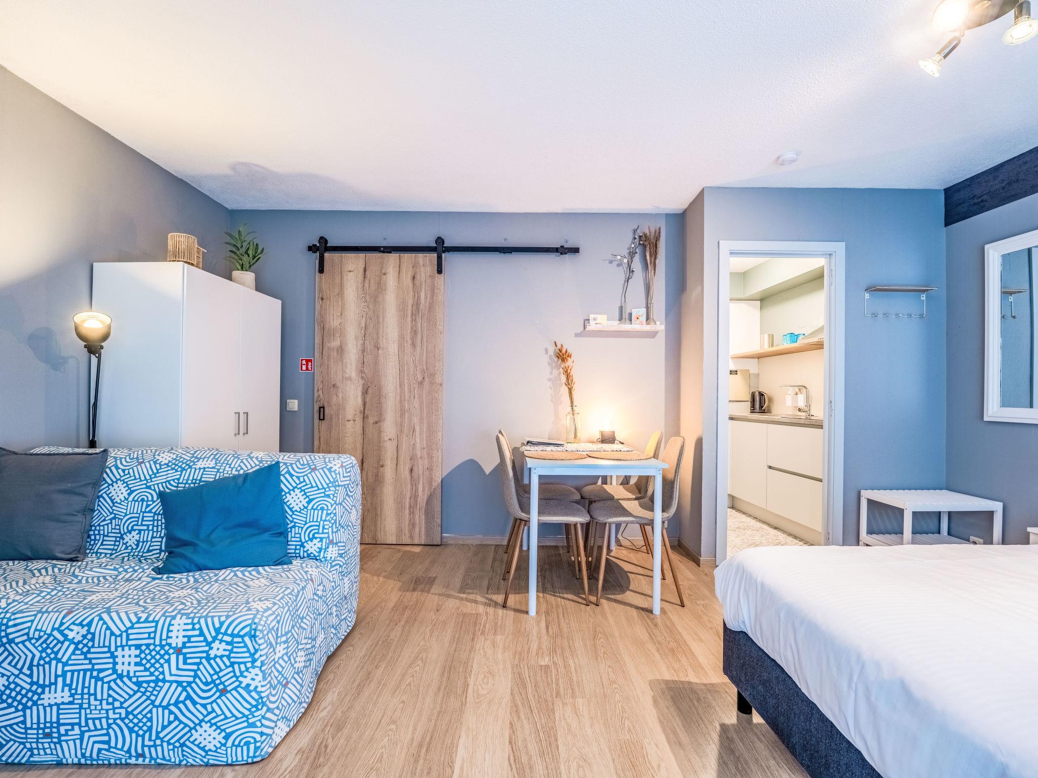 "Blue Sand I with lateral sea view", 1-room studio 35 m2 on 1st floor. Bright, comfortable and cosy furnishings: living/sleeping room with 1 sofabed (140 cm, length 200 cm), 1 double bed (180 cm, length 200 cm), digital TV and international TV channels. Exit to the balcony. Kitchen (4 induction hot plates, toaster, kettle, microwave, electric coffee machine). Bath or shower/WC. Heating. Side view of the sea and the port. Facilities: Internet (WiFi, free). Please note: non-smoking house. Maximum 1 pet/ dog allowed. Smoke alarm, fire extinguisher. Narrow balcony over the entire length of the studio. LD399232