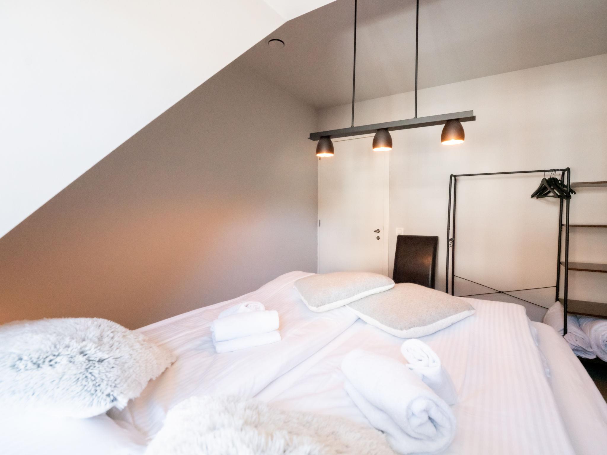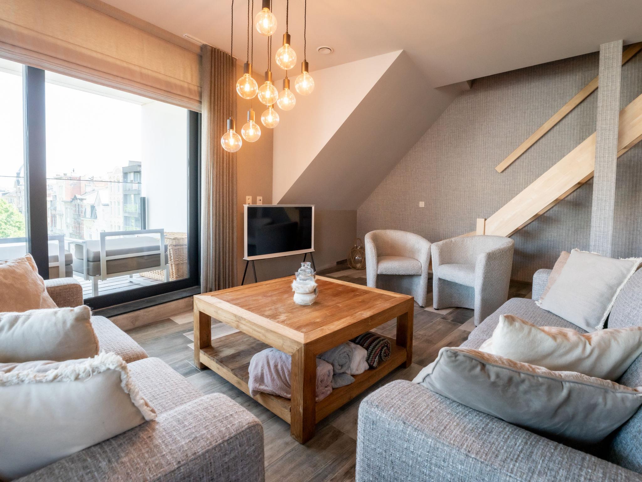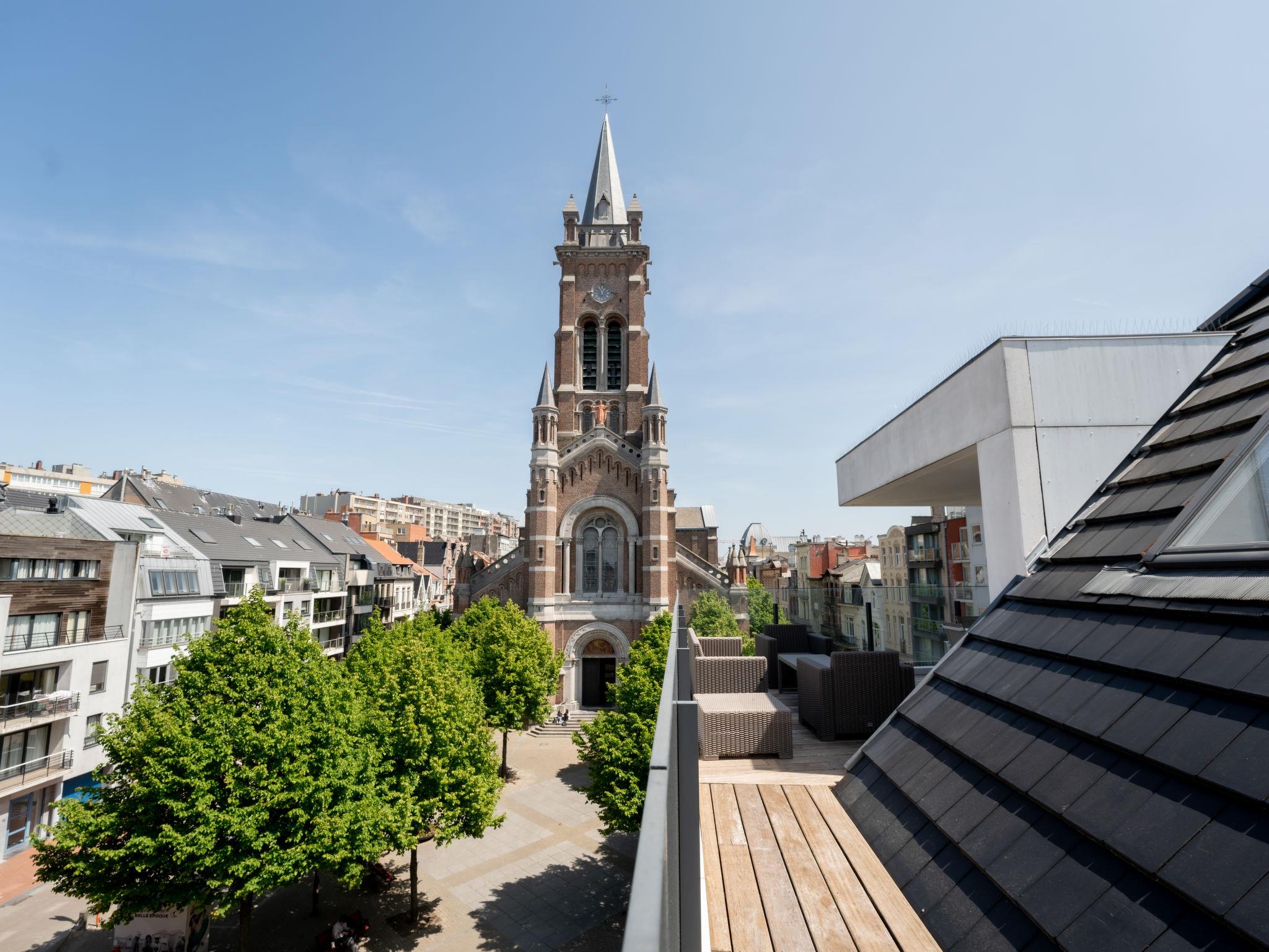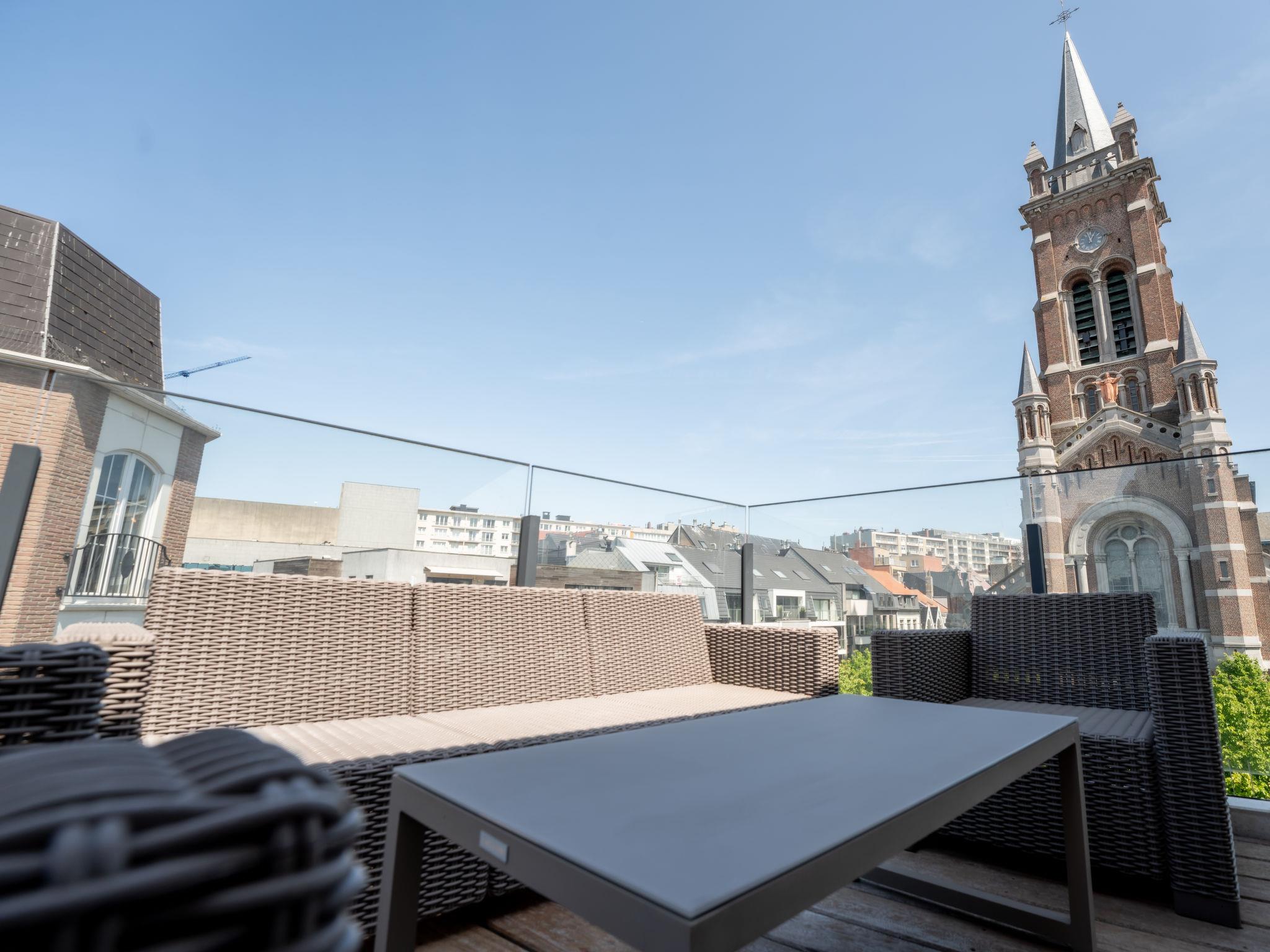 "Rochusview.be with parking and terrace", 4-room penthouse 126 m2 on 4th floor. Spacious and bright, modern and cosy furnishings: entrance hall with separate WC. Living/dining room with TV, digital TV and international TV channels (flat screen). Exit to the terrace. 1 double bedroom with 1 double bed (160 cm, length 200 cm). 1 double bedroom with 1 double bed (160 cm, length 200 cm). 1 double bedroom with 2 beds (90 cm, length 200 cm). Open kitchen (dishwasher, 4 induction hot plates, toaster, kettle, freezer, electric coffee machine, steamer, combination microwave). Shower/WC, hip bath, sep. WC. Heating. Large terrace 35 m2. Terrace furniture. Beautiful view of the city. Facilities: washing machine, dryer, iron, hair dryer. Internet (WiFi, free). Garage. Please note: non-smokers only. Smoke alarm, fire extinguisher. LD398864