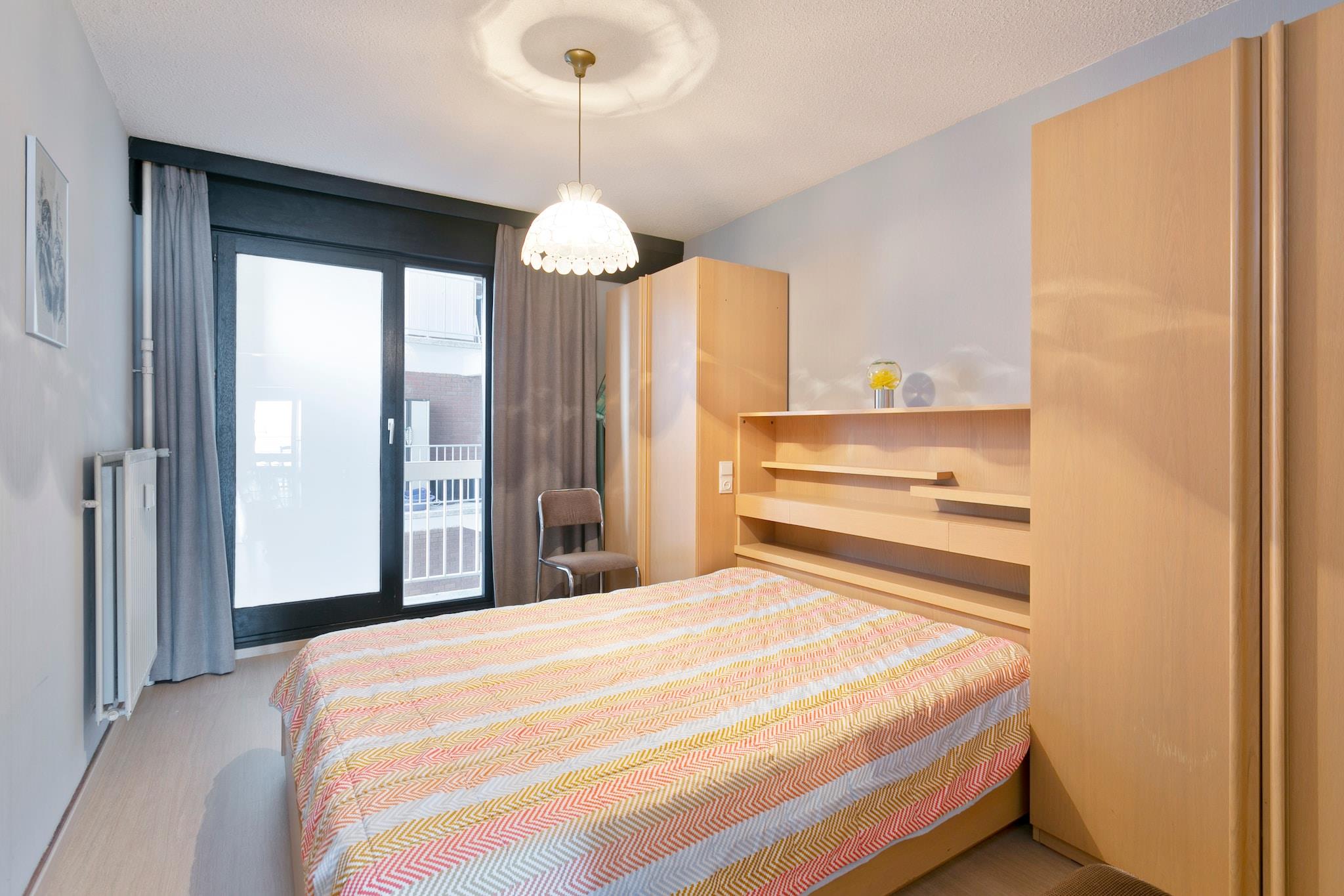 Denne hyggelige etværelses lejlighed tilbyder et behageligt og afslappende ophold med en fantastisk udsigt over strandpromenaden. Den rummelige stue er designet til ultimativ komfort og flyder problemfrit ind i det fuldt udstyrede køkken, som har en praktisk gennemgangsluge til nem spisning. Soveværelset er indrettet med en komfortabel dobbeltseng, der sikrer en god nats søvn. For ekstra bekvemmelighed inkluderer lejligheden et separat toilet samt et badeværelse med badekar og bruseforhæng, hvilket giver både funktionalitet og privatliv. Blankenberge tilbyder en perfekt blanding af historie, kultur og rekreation. På Belle Epoque Centrum kan du lære om byens fremgang som en smart badeby med udstillinger om arkitektur, mode og kunst. Udforsk det historiske House of Majutte, det ældste fiskerhus på den belgiske kyst, eller besøg SEA LIFE for at se over 2.500 havdyr. Nyd den naturskønne udsigt fra den belgiske mole eller Oosterstaketsel, ideel til fotografering og fiskeri. Havnefestivalen og Paravang-festerne fejrer byens maritime traditioner og Belle Epoque-arv. For at slappe af kan du slappe af ved Riant d"Eau Wellness eller Bloso Blankenberges saunakompleks. Vandsportsentusiaster kan besøge O"Neil Beachclub, mens sportselskere kan nyde tennis, padel eller petanque i Tennis Club. Glem ikke en sjov aften med bowling på Bowl Inn! Lejligheden har en privat terrasse på bagsiden, der er tilgængelig fra soveværelset, og tilbyder et fredeligt udendørsområde til at slappe af. Køkkenet er fuldt udstyret med moderne apparater, hvilket gør tilberedning af måltider ubesværet. Med sin fremragende beliggenhed, tankevækkende faciliteter og komfortable møbler er denne lejlighed et fantastisk valg for par eller små familier på udkig efter en mindeværdig ferie ved havet.