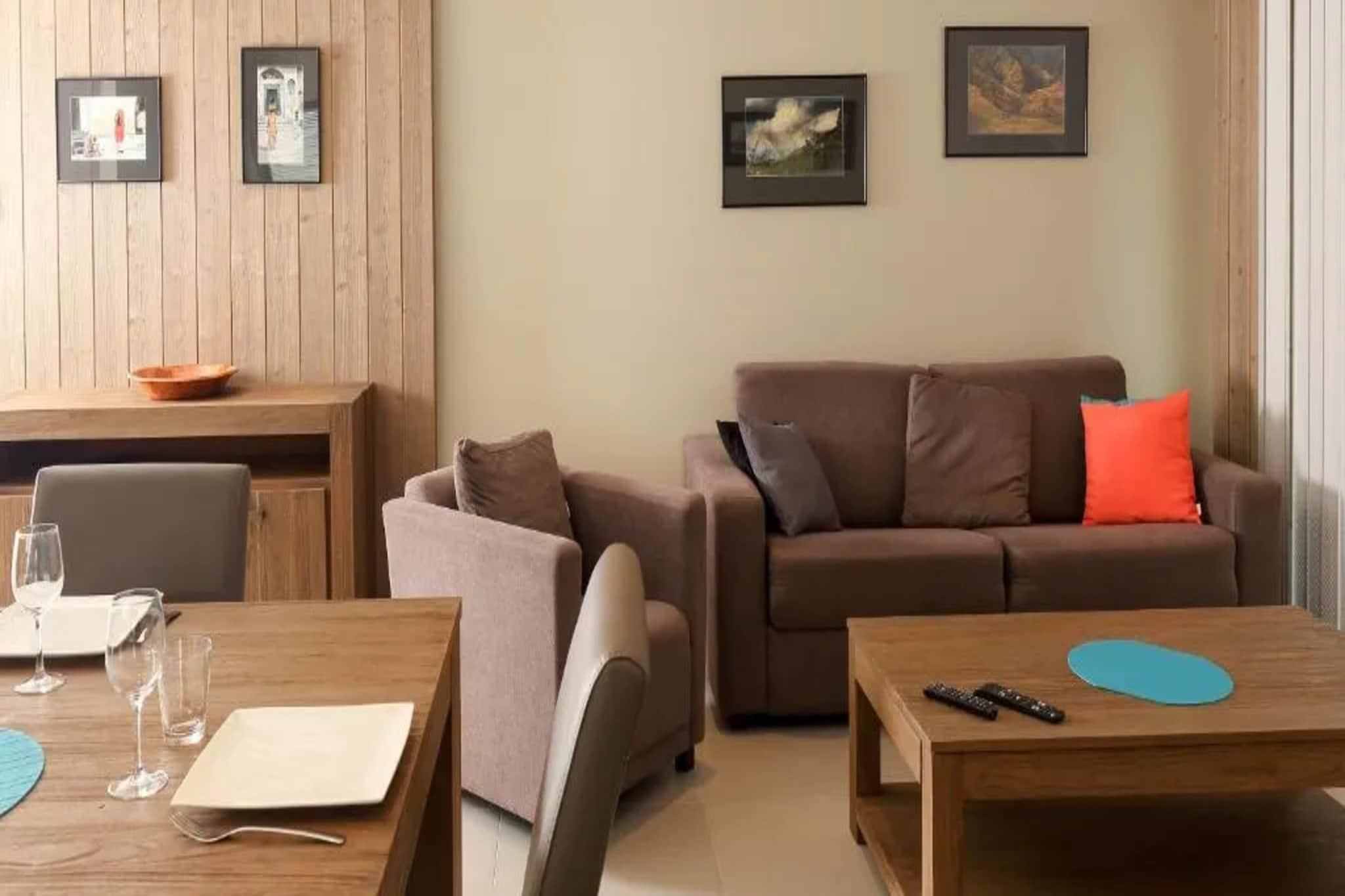 Flygt til denne smukt designede 2-værelses villa i hjertet af Lacs de l'Eau d'Heure, der tilbyder den perfekte blanding af moderne komfort og fredfyldt ophold ved søen. Dette 70 m² store miljøvenlige tilflugtssted er ideelt til 4 gæster og har en rummelig opholdsstue med fladskærms-tv, åben spiseplads og et fuldt udstyret køkken med førsteklasses apparater. Slap af i det luksuriøse king-size soveværelse, mens det andet soveværelse byder på hyggelige enkeltsenge til familie eller venner. Træd ud på den private 15m² store terrasse med havemøbler, perfekt til fredelige morgener eller afslappende aftener efter en dag med eventyr. Villaens gennemtænkte design sikrer et roligt og stilfuldt ophold. Omgivet af natur kan gæsterne nyde vandsport, vandreture og nærliggende attraktioner såsom Natura Parc og Plate Taille Dam. Kun 35 minutter fra Charleroi Lufthavn er denne eksklusive villa din indgang til uforglemmelige minder ved søen.