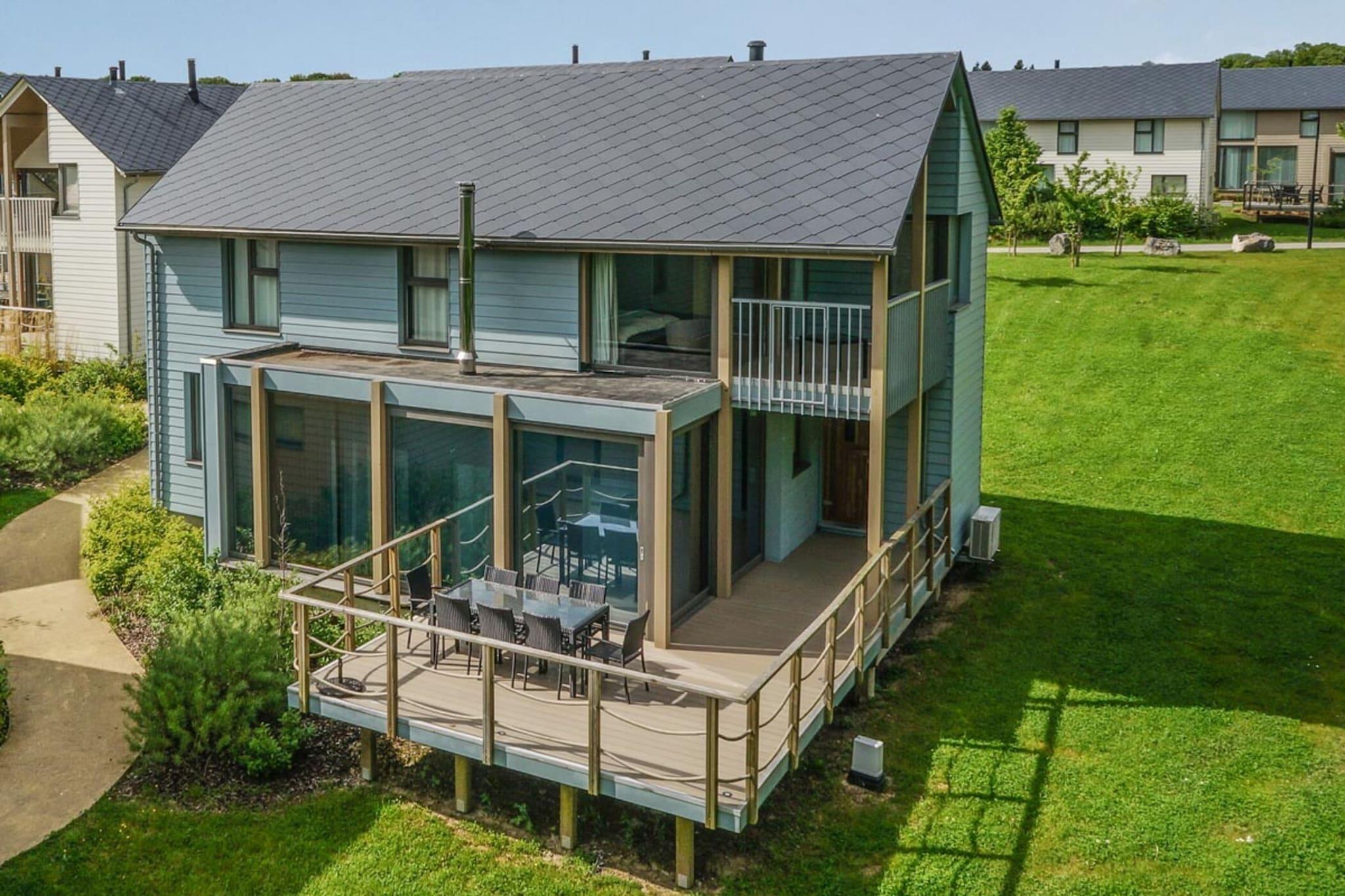 Slap af i denne rummelige villa på 130 m² designet til op til 8 gæster, hvor komfort møder charme. Stueetagen har en hyggelig opholdsstue med pejs, et indbydende soveværelse med en dobbeltseng (to enkeltmadrasser og dyner), et elegant brusebadeværelse og et separat toilet for ekstra bekvemmelighed. Det er det perfekte setup til afslappende aftener og afslappende nætter. Ovenpå tilbyder tre omhyggeligt indrettede soveværelser fleksibilitet for familier eller grupper: et dobbeltværelse med balkonadgang, et dobbeltværelse med to separate senge og et køjeværelse med seks enkeltdyner og en dobbeltdyne. To badeværelser, et med badekar og et med bruser, plus et ekstra toilet sikrer alles komfort under hele opholdet. Træd udenfor til en privat 30m² terrasse, der er møbleret til udendørs spisning og fritid. Uanset om du nyder en solrig morgenmad eller en fredfyldt aften under stjernerne, tilbyder denne villa fredfyldte omgivelser for uforglemmelige øjeblikke.
