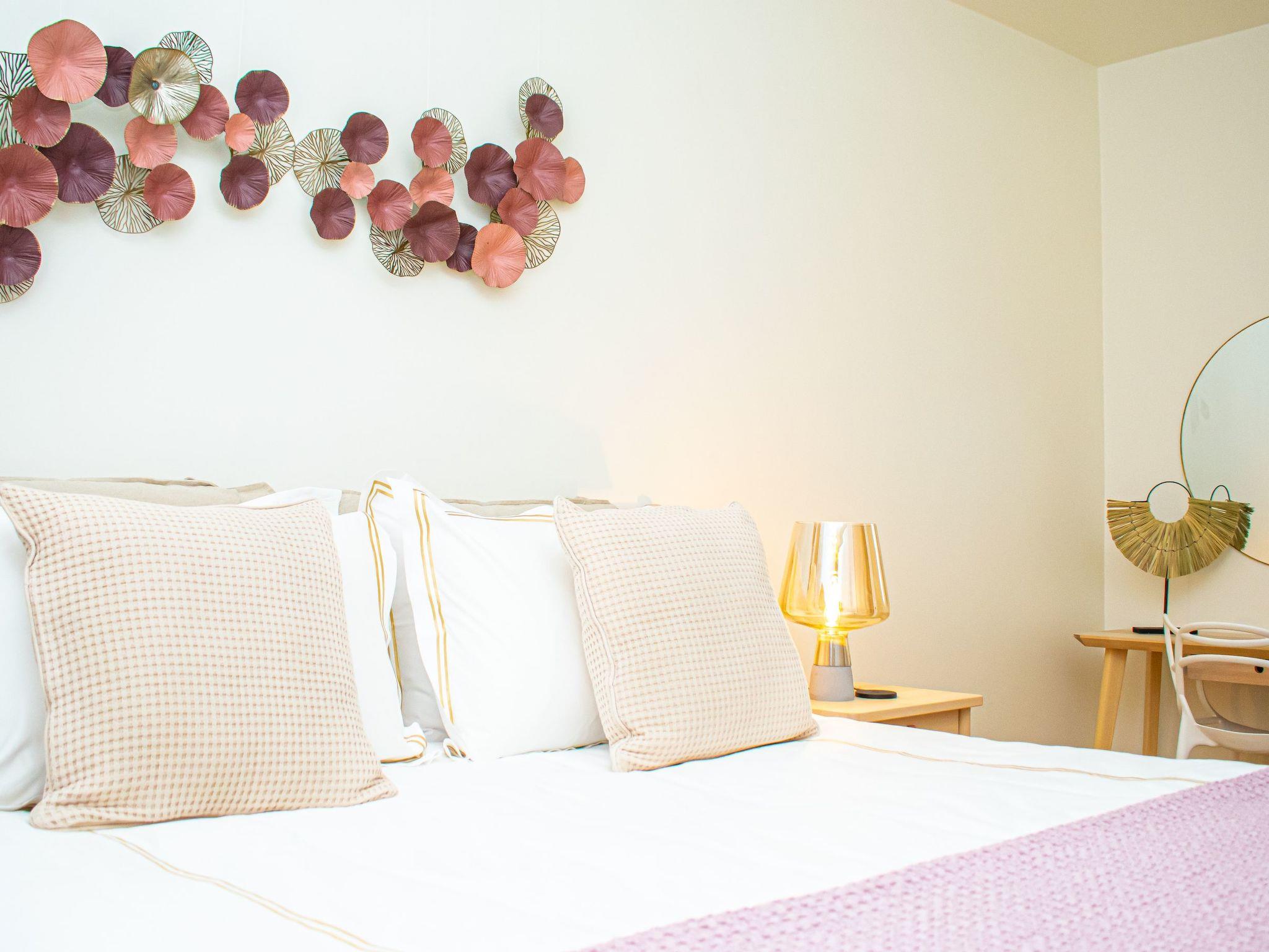 Inside, the contemporary day area is designed for both relaxation and entertainment, featuring a seating lounge complete with a reading nook, alongside a designer dining table. The kitchen is superbly equipped, meeting all your culinary needs with modern appliances including a dishwasher, electric kettle, and more. Comfort is at the forefront of this residence's design, with two luminous bedrooms boasting king-size beds, a washing machine, and a clothes dryer for your sole use, ensuring a restful night's sleep and utmost convenience during your stay.