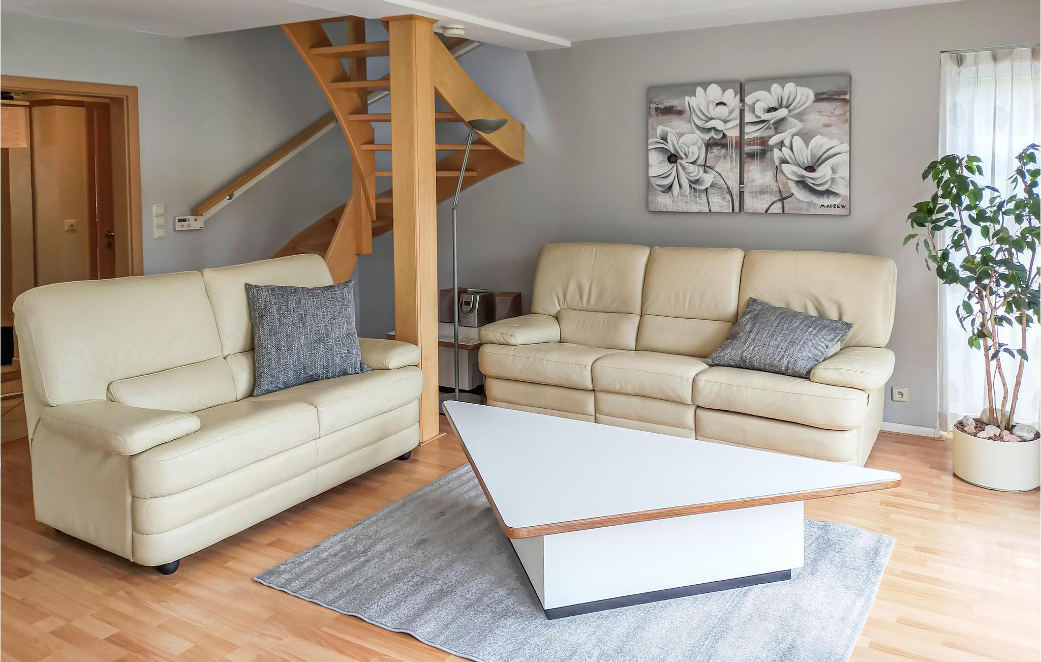 Fritliggende og komfortabelt feriehus ved grænsen mellem Belgien og Luxemburg, i den skønne Ourdal mellem Burg-Reuland og Ouren. I bor bare 100 m fra den tyske grænse og tre km fra Luxemburgs grænse, men alligevel i Belgien. I dette hjørne hvor de tre lande mødes tales der tysk, ligesom i de andre østlige kantoner i Belgien, der tilsammen danner Hohe Venn mod nord. Her kan I nyde roen, frisk luft, skøn natur og ikke mindst den gode mad. Gå lange ture i omgivelserne og nyde den smukke vide udsigt. Clervaux, Vianden, Monschau og Trier er alle skønne udflugtsmål. Vi kan anbefale Trier til alle der holder af historiske markedspladser eller gerne vil se Porta Nigra, som er en smukt vedligeholdt romersk port. I huset ligger der mange brochurer hvor I kan læse mere om området, vandremuligheder og meget andet. Huset ligger på bjergside, hvorfor I kommer ind i stue ad en trappe. Fra stuen er der flere udgange til balkonen og terrassen. Soveværelserne ligger på første sal. Bemærk! Etagesengen er både kort og saml (190 x 80 cm) og egner sig godt til børn. Fra stuen er der en vidunderlig udsigt over dalen. Dette hus vil glæde alle de gæster der holder af at slappe af i naturskønne omgivelser.