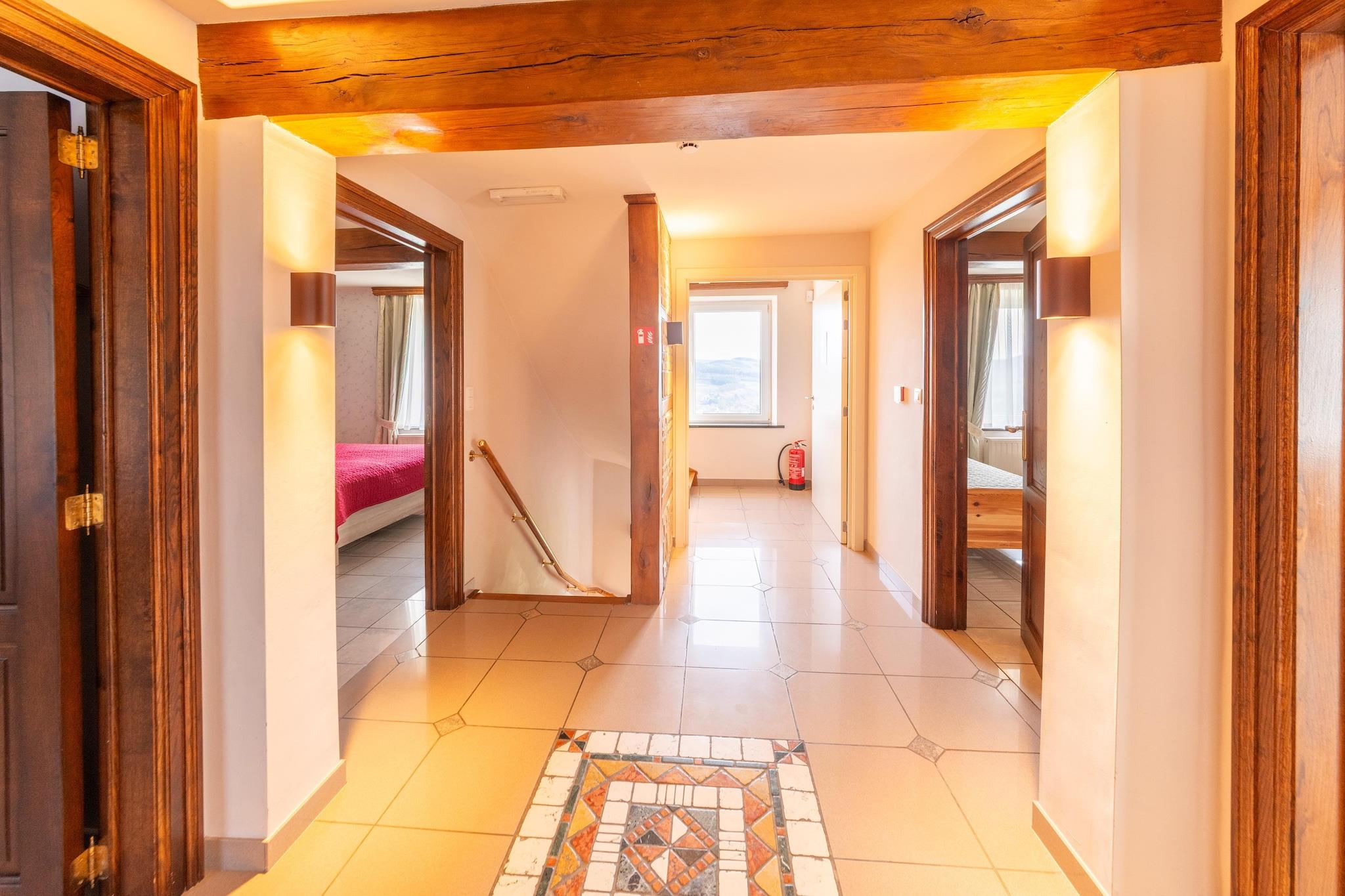 Beliggende i hjertet af Ardennerne i Chevron (Stoumont) byder Villa Les Charmes på et enestående ophold, hvor luksuriøs komfort, plads og natur smelter perfekt sammen. Ideel til store familier eller grupper på op til 20 personer kombinerer denne unikke ejendom privatliv, hygge og førsteklasses faciliteter. Ved ankomsten vil du straks blive betaget af de rummelige omgivelser og den varme atmosfære i hovedhuset, suppleret af et separat studio for ekstra privatliv. Opholdsområderne er designet til at skabe uforglemmelige øjeblikke: en stor spisestue, en hyggelig stue med pejs og et fuldt udstyret køkken… alt er samlet for at få dig til at føle dig endnu bedre end hjemme. Villaens højdepunkt? En smuk opvarmet semi-overdækket pool med åbning mod det fri og en fantastisk udsigt over den omkringliggende natur. Hertil kommer et wellnessområde med sauna, perfekt til afslapning efter en aktiv dag. Der er masser af aktiviteter: billard, bordfodbold, bordtennis, petanque, badminton… samt store udendørsarealer med terrasser, der er ideelle til hyggelige grillaftener. Beliggende i rolige, grønne omgivelser, men stadig let tilgængelig og tæt på faciliteter – en sjælden balance mellem fred og bekvemmelighed. Vandreture, outdoor-aktiviteter og lokale oplevelser venter. Omhyggeligt vedligeholdt og fulgt op af ejeren i nærheden garanterer Villa Les Charmes et uforglemmeligt ophold i smukke omgivelser. ?? En enestående adresse til magiske øjeblikke året rundt.