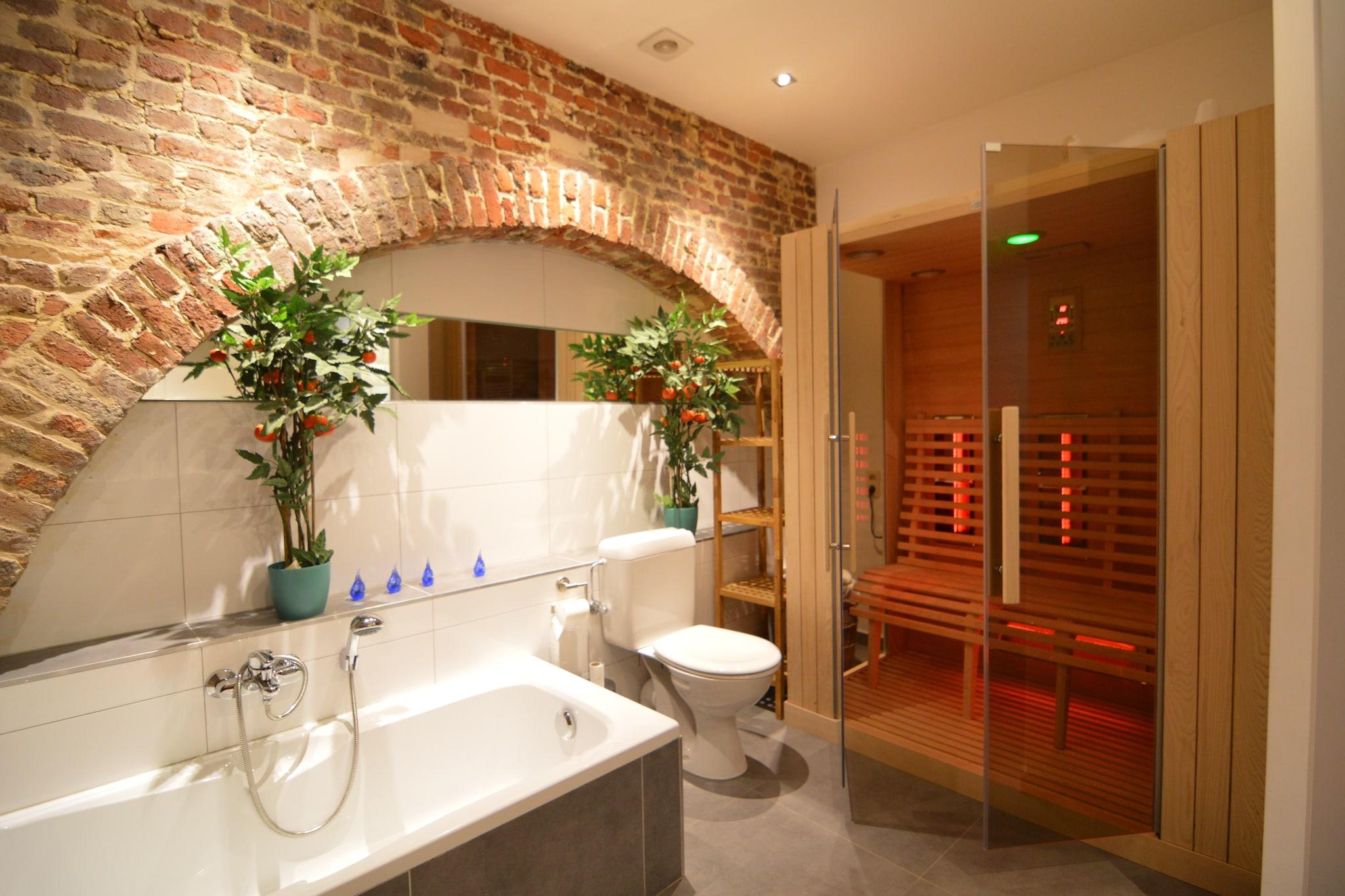 Denne indbydende duplex i Clavier Station tilbyder et afslappende ophold i hjertet af Belgiens Liège-region. Ejendommen er perfekt til familier eller små grupper, kun få skridt fra lokale butikker og offentlig transport, hvilket gør det til en bekvem base for at udforske Ardennerne. Nærliggende attraktioner omfatter det majestætiske Château de Modave, de underjordiske vidundere Grotte de Comblain og de naturskønne cykelstier på Domaine de Palogne. For et kulturelt præg er Musée de la Bière i Anthisnes en lokal favorit. Hjemmet har tre soveværelser med to enkeltsenge, to badeværelser - det ene med badekar og infrarød sauna - og et separat brusebad. Det åbne køkken er udstyret med kaffemaskine, ovn, mikroovn og opvaskemaskine, mens stue/spisestue har tv, dvd-afspiller og dekorativ pejs. En privat terrasse med havemøbler indbyder til udendørs afslapning, og der er fire cykler til rådighed, så gæsterne kan udforske landskabet. Clavier tilbyder fremragende spisemuligheder i nærheden. Nyd brændefyret pizza på Saporita Pizza, gourmetburgere på Niglo Burger eller hyggelige belgiske retter på L'entre mets toi". Uanset om du cykler på skovstier, besøger slotte eller slapper af i saunaen, er denne duplex en perfekt tilflugtssted i Ardennerne.