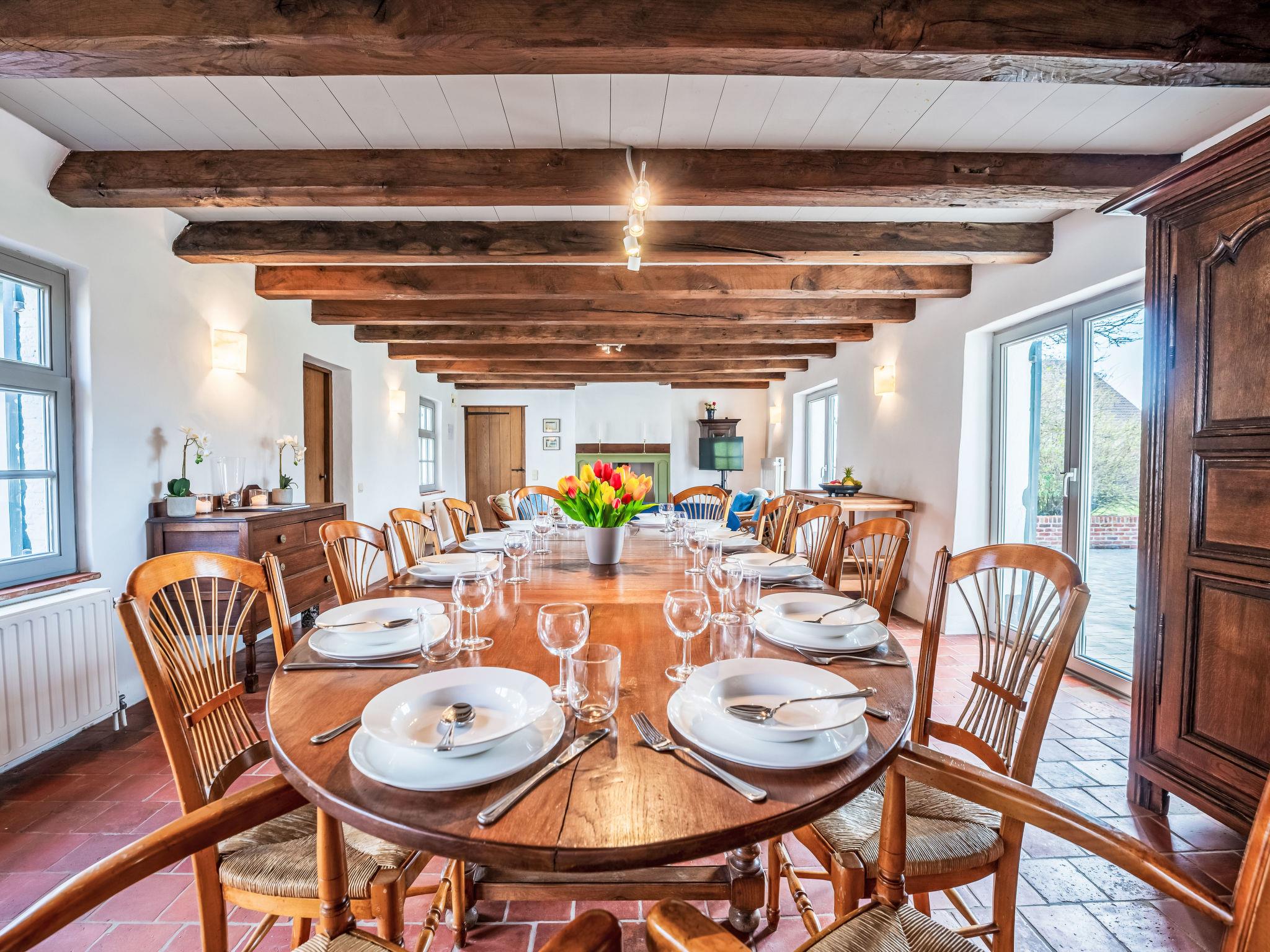 "Dunezwin - protected cultural heritage", 5-room farmhouse 300 m2. Object suitable for 6 adults + 6 children. Comfortable furnishings: entrance hall with separate WC. 1 large double bedroom with 1 bed (180 cm, length 200 cm), bath/shower/WC and double hand-basin. Open living/dining room with open-hearth fireplace (only for decoration), TV. Exit to the garden, to the terrace. Large lounge with TV and international TV channels. 1 large double bedroom with 2 beds (90 cm, length 200 cm), bath/WC. Kitchen (4 hot plates, oven, dishwasher, toaster, kettle, microwave, freezer, electric coffee machine). Exit to the garden, to the patio. Upper floor: 1 large double bedroom with 2 beds (90 cm, length 200 cm), hand-basin and separate WC. 1 open large children's room with 6 beds (90 cm, length 200 cm), bath/shower/WC. Natural stone floors. Comfortable furnishings in the country house style. Large terrace. Terrace furniture. Facilities: children's high chair, hair dryer. Internet (WiFi, free). Please note: suitable for families. Non-smoking house. Maximum 3 pets/ dogs allowed. Smoke alarm, fire extinguisher.