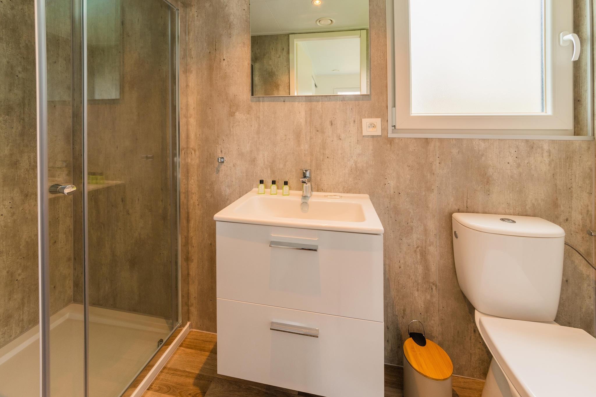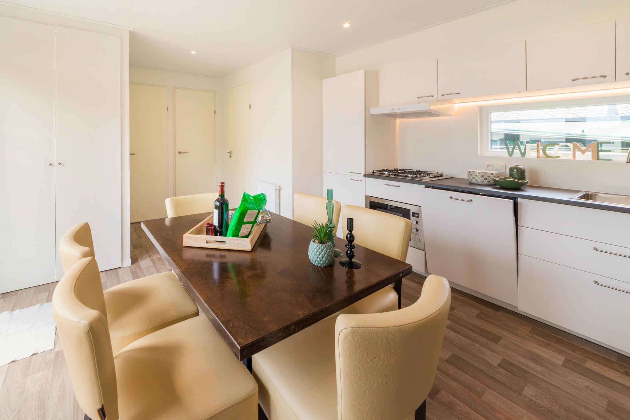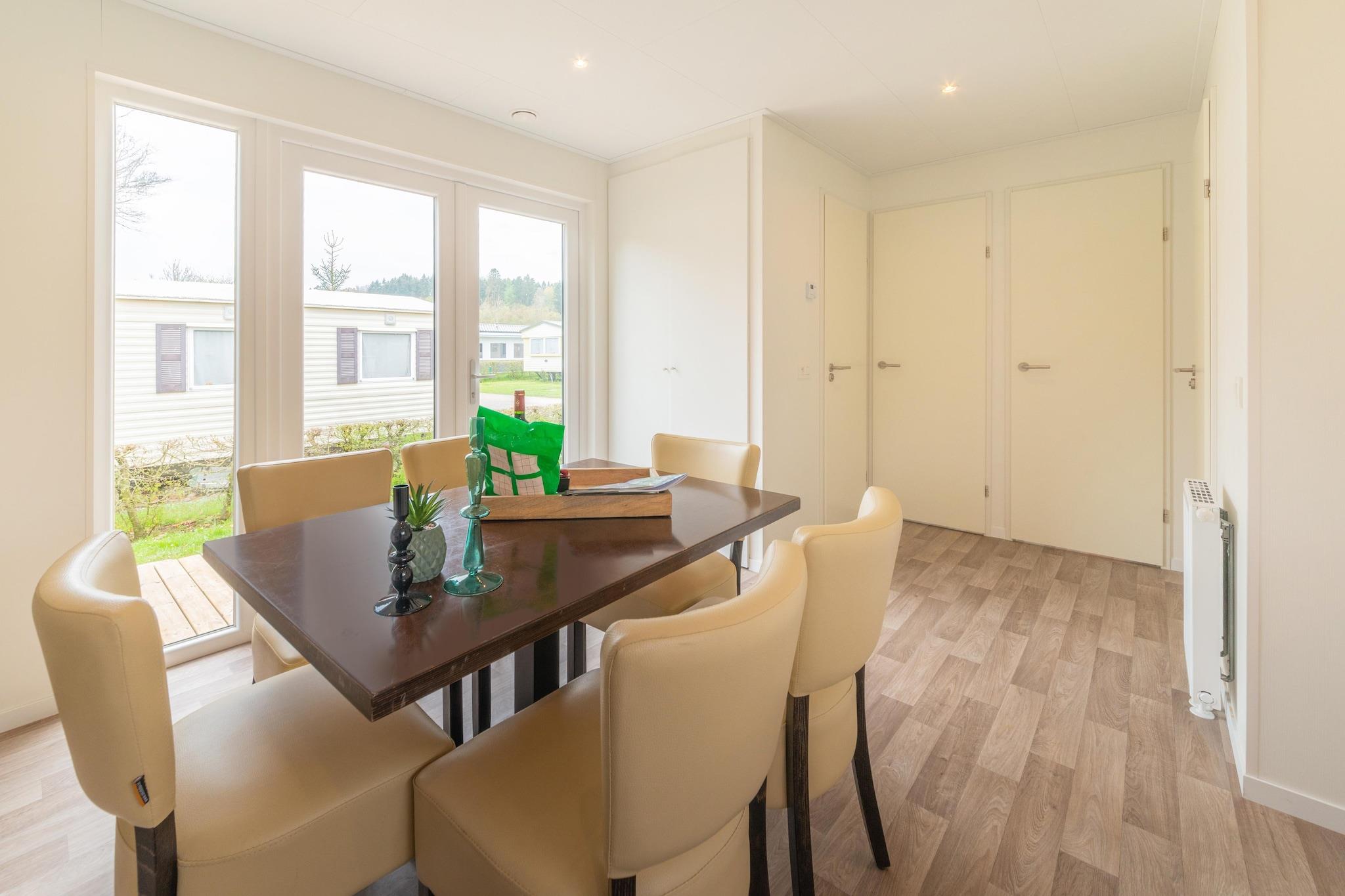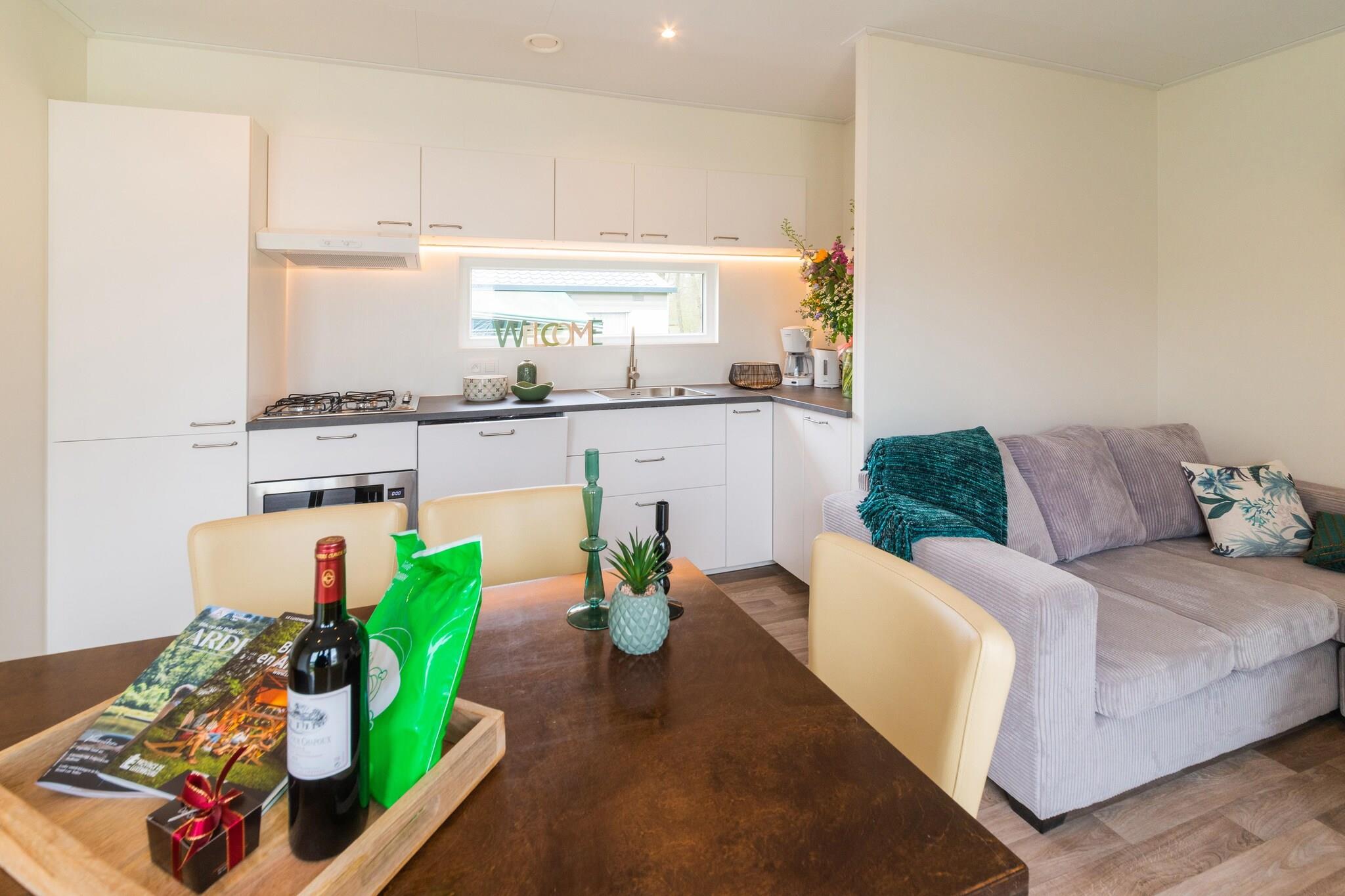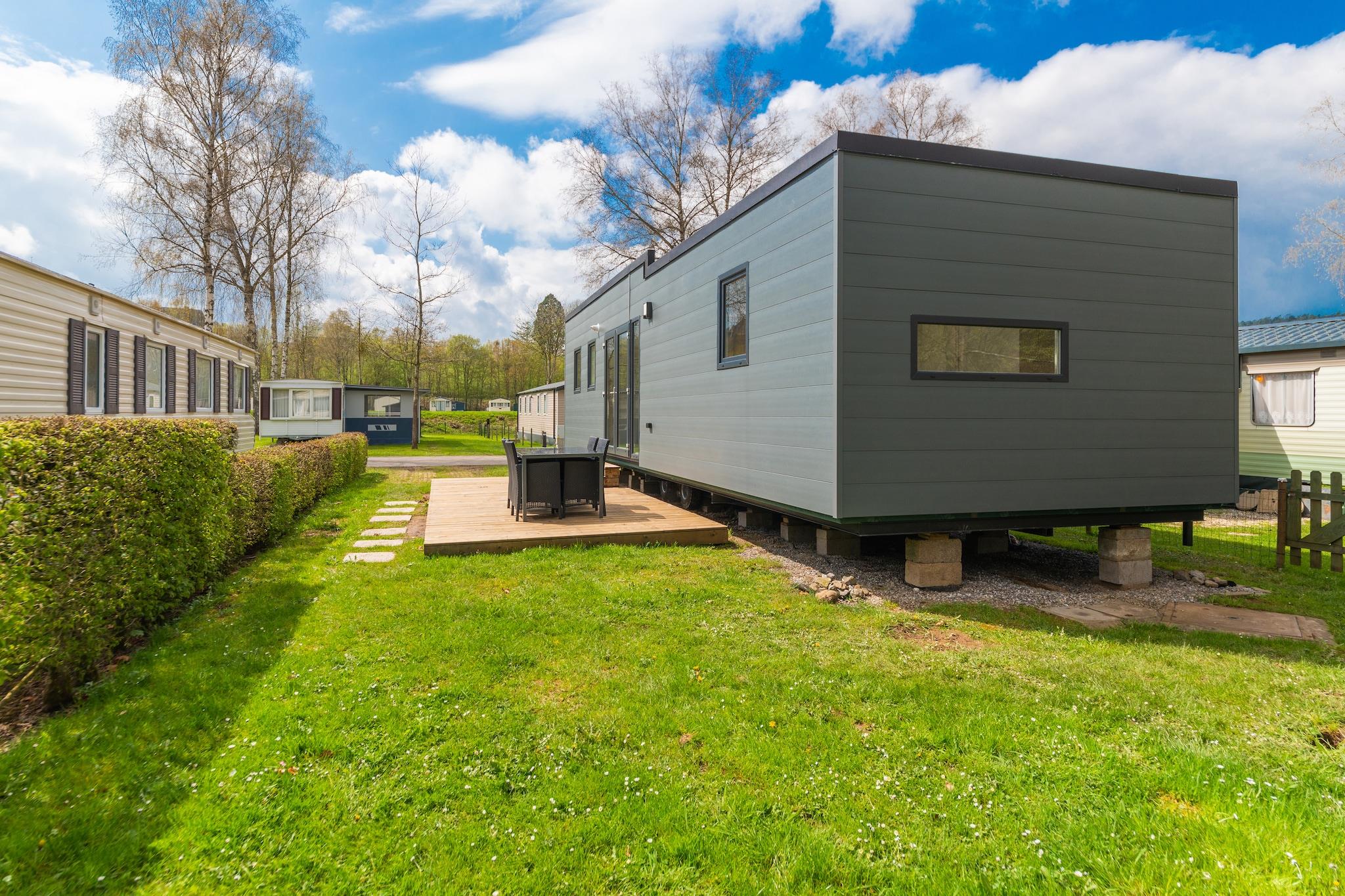 Dette helt nye, rummelige mobilehome tilbyder en komfortabel og stilfuld base for par, familier eller små grupper, der søger en fredelig ferie i Belgiens naturskønne landskab. Ideelt for dem, der sætter pris på udendørsliv, ligger huset ved en rislende bæk og har en privat terrasse - et perfekt sted at slappe af med en morgenkaffe eller en aftendrink, mens man lytter til naturens beroligende lyde. Indvendigt er mobilehomet omhyggeligt designet med moderne komfort i tankerne. Den åbne stue og spisestue har komfortable siddepladser og et tv, hvilket skaber et indbydende rum at slappe af efter en dag med udforskning af den omkringliggende region. Køkkenet er fuldt udstyret med alt, hvad du behøver til selvforplejning - inklusive moderne apparater - så det er nemt og behageligt at tilberede måltider. Indkvarteringen inkluderer et soveværelse med eget badeværelse og to ekstra soveværelser, der er indrettet til komfortabelt at sove gæster. Et komplet badeværelse med bruser giver daglig bekvemmelighed. Yderligere funktioner såsom centralvarme, opbevaring og kvalitetsmøbler sikrer et behageligt og stressfrit ophold. Træd ud på din private terrasse for at nyde de fredelige omgivelser ved vandet, spise udendørs eller blot indånde den friske landskabsluft. Den omkringliggende have forbedrer udendørsoplevelsen og skaber en rolig atmosfære, der komplementerer hjemmets komfort. Beliggende i nærheden af lokale attraktioner, vandre- og cykelruter, skove og charmerende belgiske landsbyer, tilbyder dette mobilehome både afslapning og bekvemmelighed. Uanset om du planlægger en kort pause eller et længere ophold, er det et fremragende valg til en mindeværdig ferie omgivet af naturen.