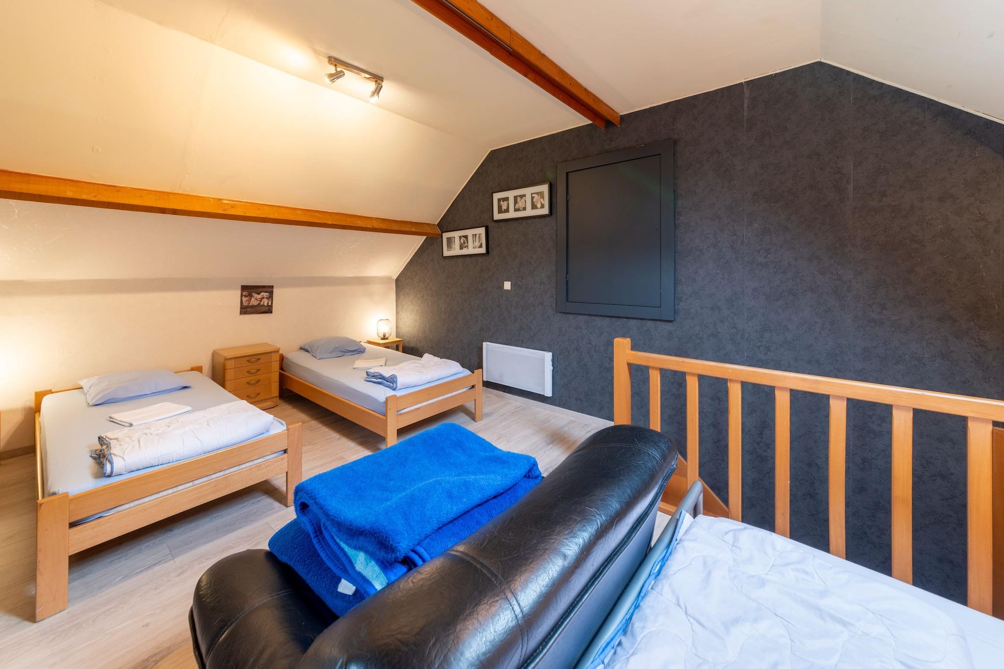 Dette charmerende kæledyrsvenlige sommerhus i Érezée er perfekt til familier eller små grupper, der søger et fredeligt tilflugtssted i Ardennerne. Kun 1 km fra landsbyens centrum og omgivet af skov giver det nem adgang til naturen og lokale attraktioner. Gæsterne kan udforske den naturskønne Tramway Touristique de l'Aisne, nyde chokoladesmagning på Chocolaterie Defroidmont eller besøge middelalderbyen Durbuy, kendt som den mindste by i verden. Den nærliggende Grottes de Hotton byder også på et fascinerende underjordisk eventyr. Ejendommen har to soveværelser og en mezzanin med ekstra soveplads, en hyggelig stue med TV og et fuldt udstyret åbent køkken med ovn, mikroovn og opvaskemaskine. Et badeværelse med både badekar og bruser sikrer komfort, mens faciliteter som en tørretumbler, børnesenge, høje stole og legeredskaber gør det ideelt for familier. Udendørs kan gæsterne slappe af på terrassen, nyde måltider i haven eller fyre op i grillen. Spisemuligheder inden for gåafstand omfatter L'Affenage for raffineret belgisk køkken, Pizzeria Peperoncino for italienske favoritter og The Barber Knife's, der er kendt for sine gourmetburgere.