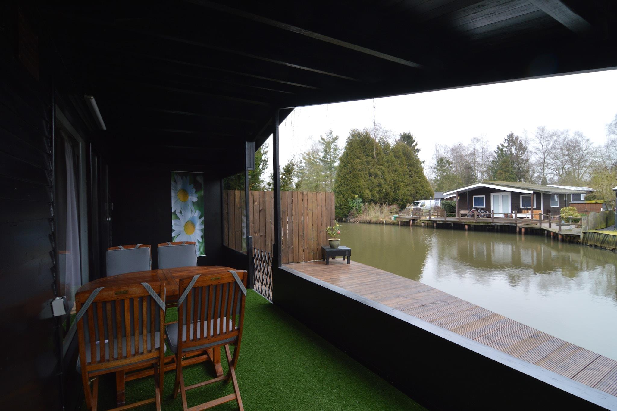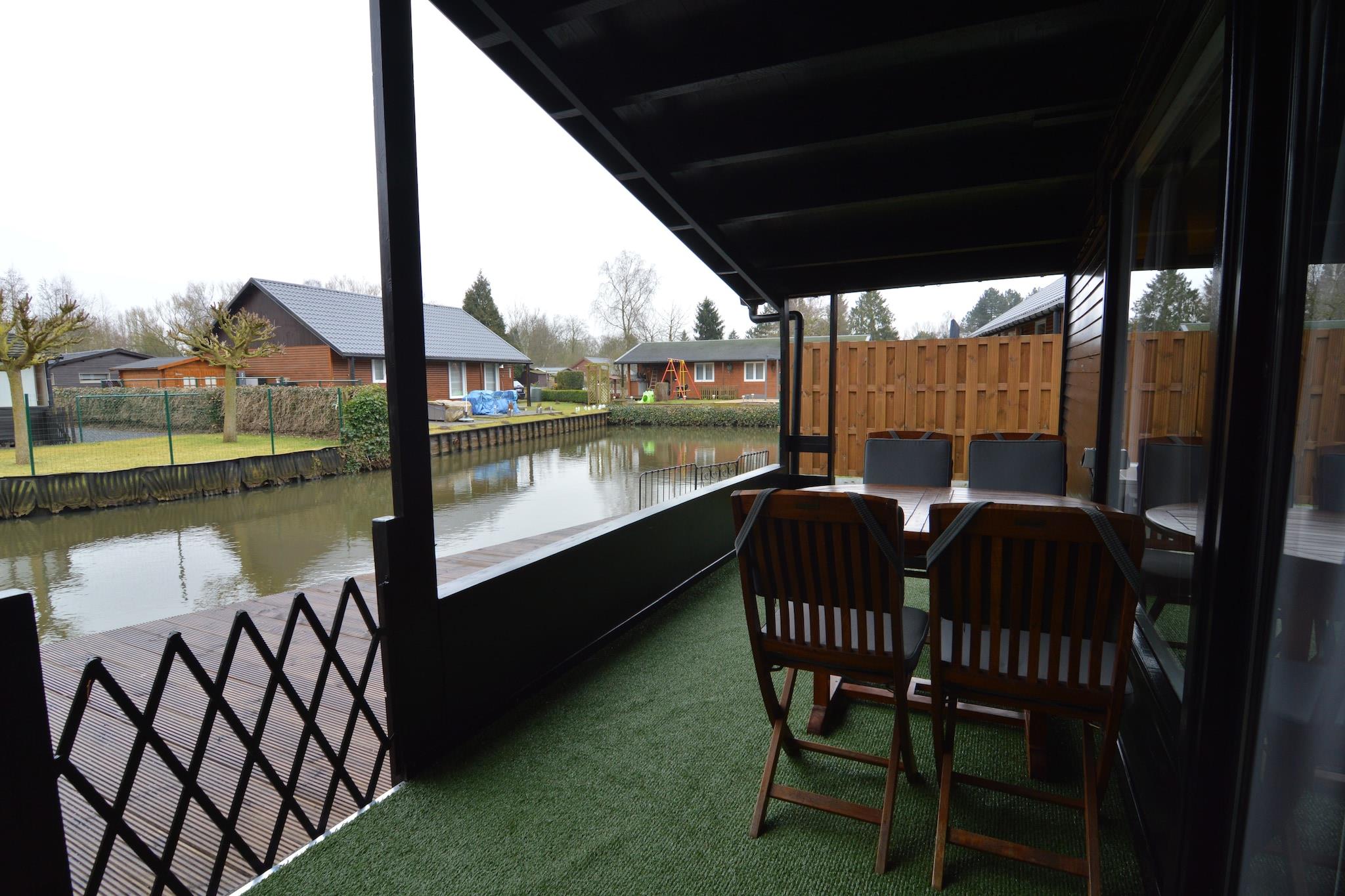 Chalet i park med en fiskedam