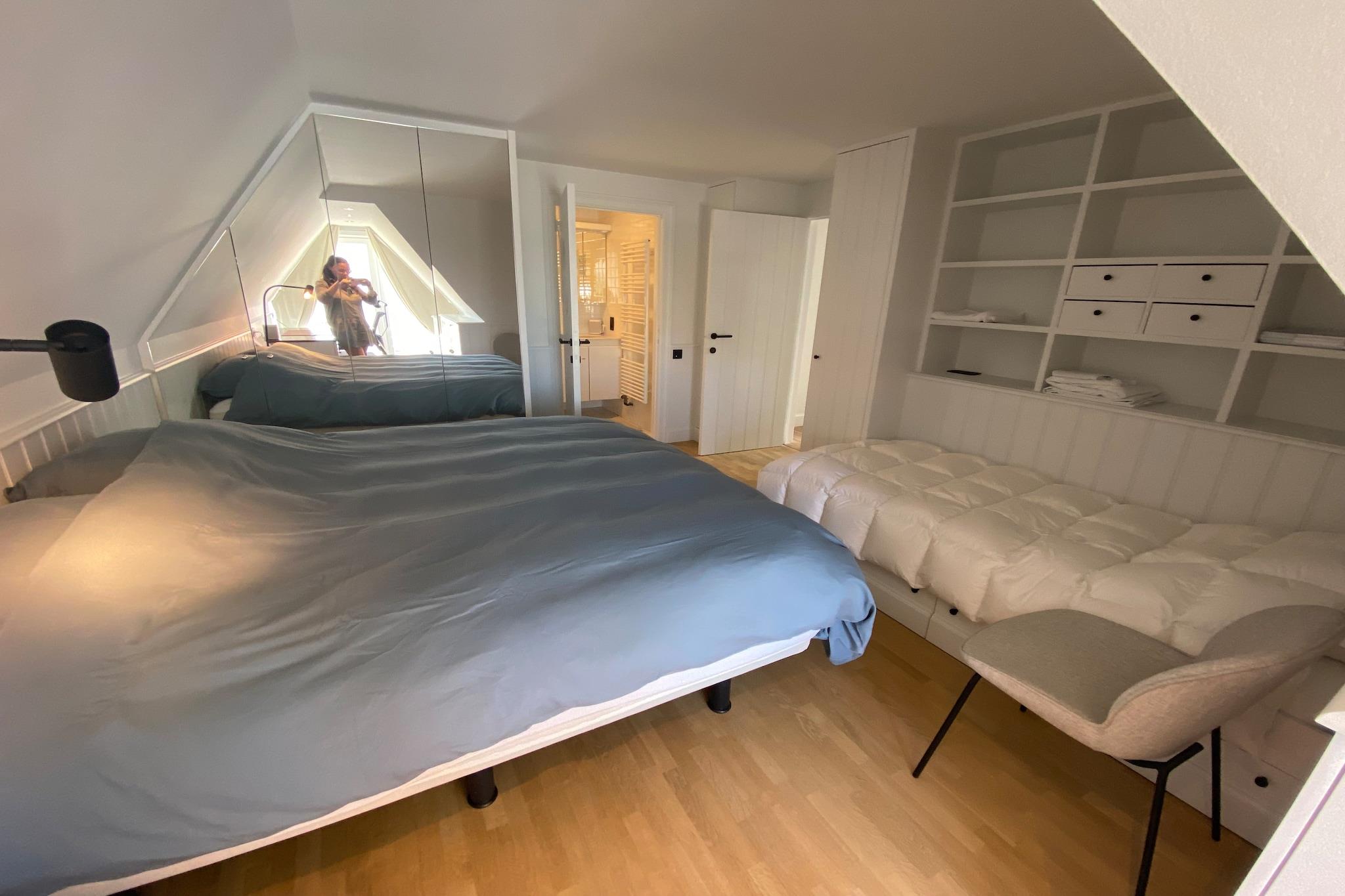 På 2. etage: (åbent køkken(kogeplade(induktion), elkedel, brødrister, kaffemaskine(kopper, kaffetragt), combi-mikroovn, opvaskemaskine , Blender), stue / spisestue(Fjernsyn(digital), spisebord, sofahjørne, klimaanlæg), Soveværelse med badeværelse(enkeltseng, dobbeltseng(180 x 200 cm), badekar eller bruser, håndvask, toilet), Soveværelse med badeværelse(dobbeltseng(180 x 200 cm), bruser, håndvask, toilet), toilet(toilet), Internetadgang) garage, tørretumbler, sauna, vaskemaskine, patio, terrasse, cykelopbevaring, strygebræt, strygejern, Netflix
