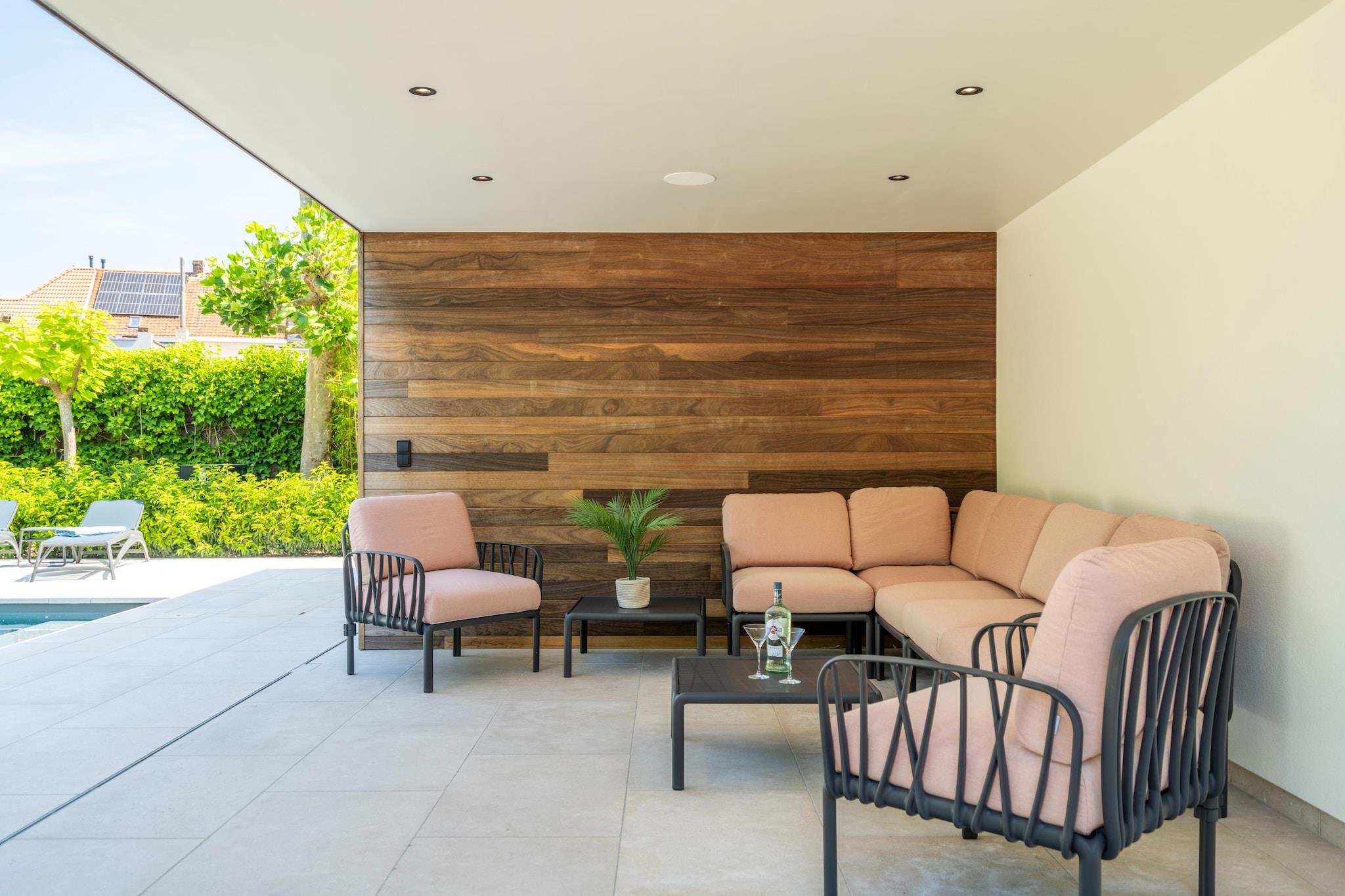 Stueetage: (åbent køkken(kogeplade(induktion), elkedel, brødrister, emhætte, kaffemaskine, espressomaskine, ovn, mikrobølgeovn, opvaskemaskine , køle-fryseskab, Saftpresser, Stavblender), stue / spisestue(Fjernsyn, spisebord, sofahjørne, trådløst musiksystem, klimaanlæg), Soveværelse med badeværelse(dobbeltseng(180 x 200 cm), bruser, håndvask, toilet, klimaanlæg), toilet(toilet), sal(tørretumbler, vaskemaskine, strygebræt, strygejern), opholdsrum(bar, opvaskemaskine , køleskab, fryser, klimaanlæg)) På 1. etage: (Soveværelse med badeværelse(dobbeltseng(180 x 200 cm), bruser, håndvask, toilet, klimaanlæg), Soveværelse med badeværelse(dobbeltseng(180 x 200 cm), bruser, håndvask, toilet, klimaanlæg), Soveværelse med badeværelse(dobbeltseng(180 x 200 cm), bruser, håndvask, toilet, klimaanlæg), Soveværelse med badeværelse(dobbeltseng(180 x 200 cm), bruser, håndvask, toilet, klimaanlæg)) spisebord, trådløst musiksystem, sauna, vaskemaskine, patio, varme, klimaanlæg, terrasse, have, cykelopbevaring, havemøbler, solstole, grill, parkering, swimmingpool(privat, opvarmet, opened from Apr upto and including Oct), loungemøbler, Ladestation til el-biler, Surveillance camera