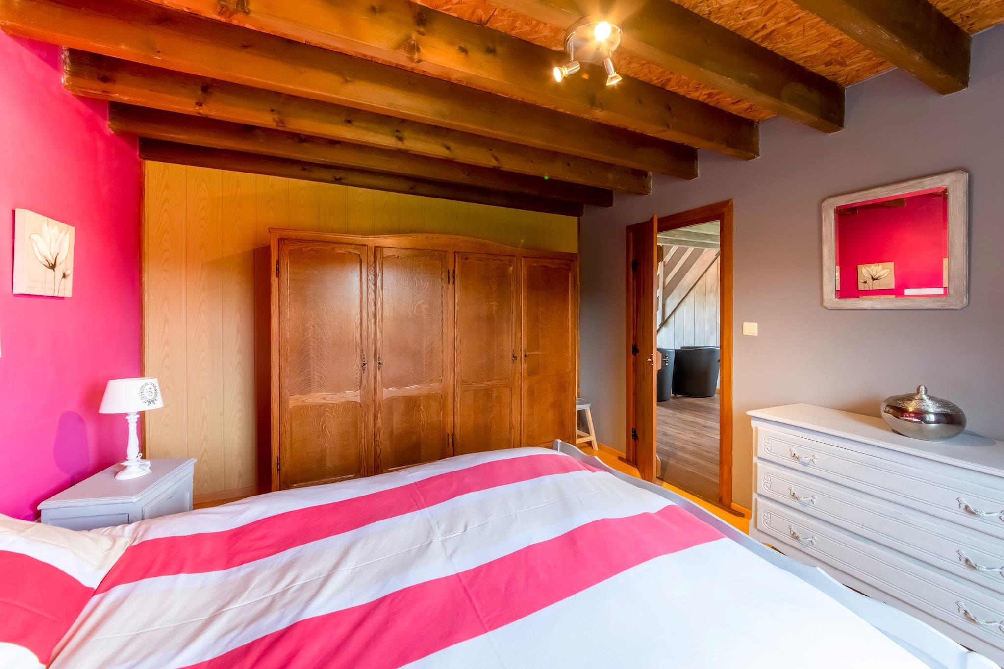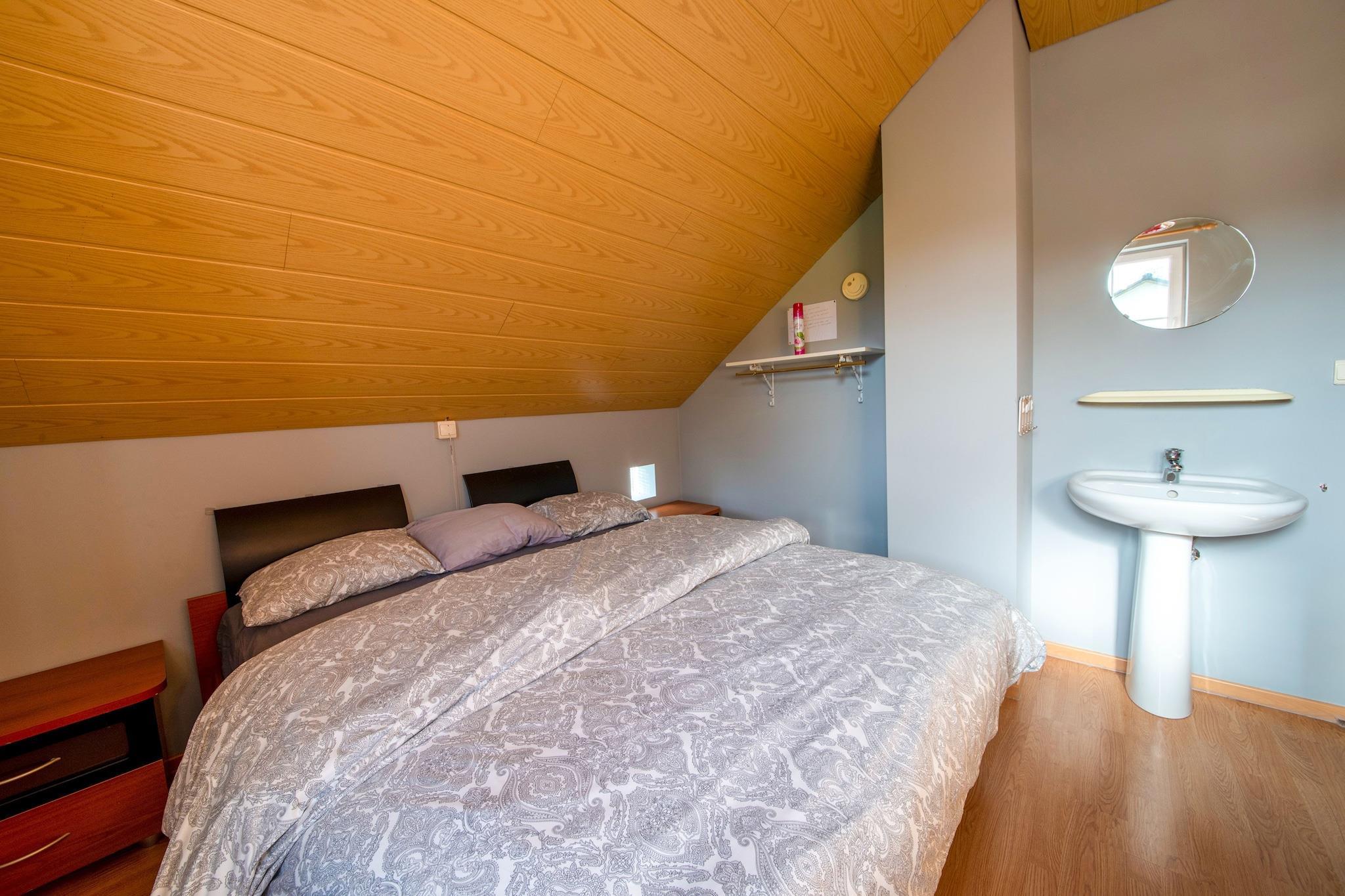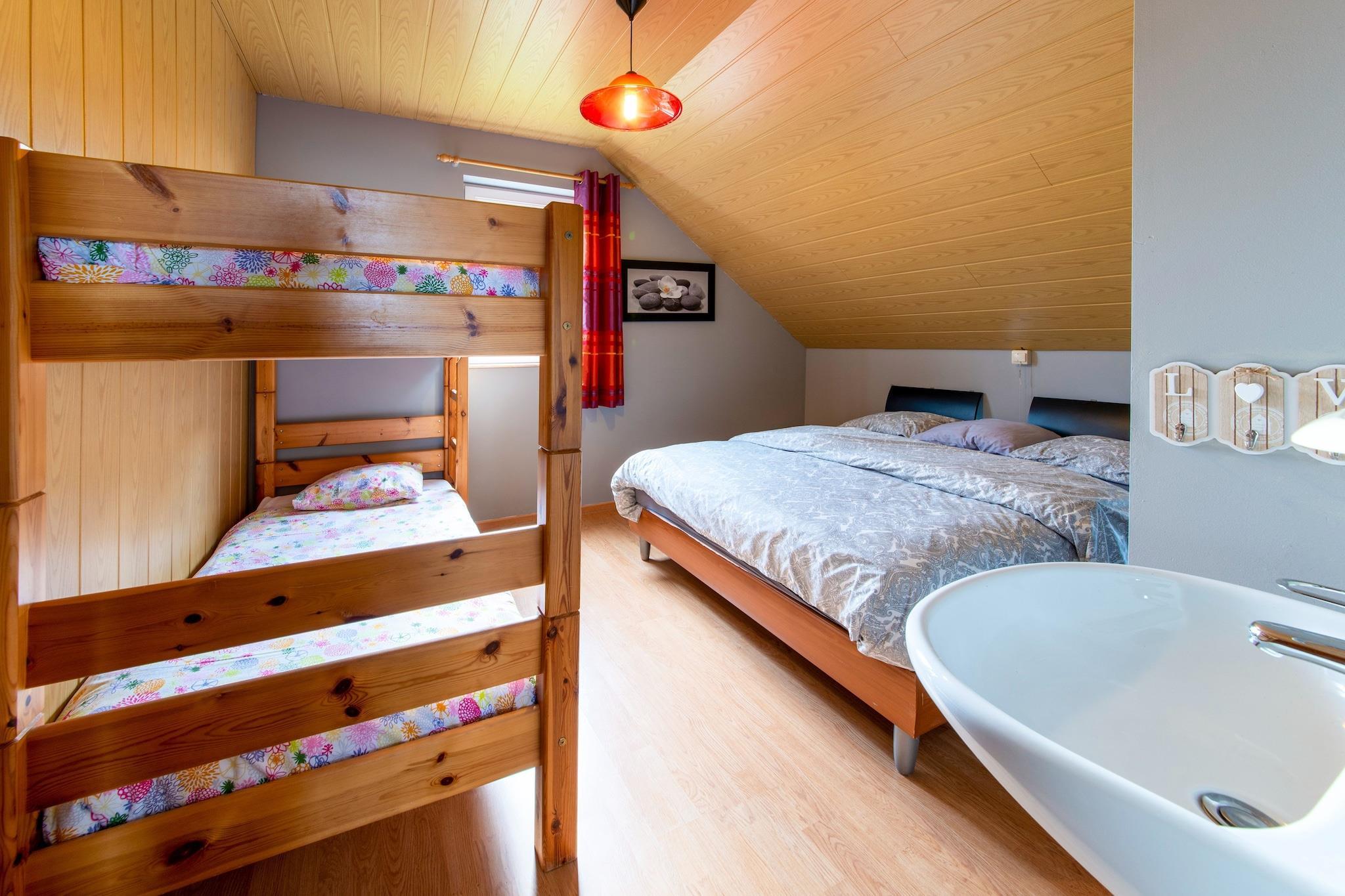 Dette charmerende feriehus i La Roche-en-Ardenne tilbyder et hyggeligt tilflugtssted for familier eller små grupper. Kun 4 km fra byens centrum og omgivet af skov, er det ideelt for naturelskere og historieinteresserede. Nærliggende attraktioner omfatter Château Féodal de La Roche, der tilbyder panoramaudsigt og falkejagtshows, Musée de la Bataille des Ardennes med WWII artefakter og den naturskønne Barrage de Nisramont til vandreture og kajaksejlads. Maboge Beach er også i nærheden til sommersvømmeture og picnics ved floden. Ejendommen har tre soveværelser, herunder et med køjeseng og håndvask, plus en enkelt sovesofa i stuen. Køkkenet er udstyret med komfur, mikroovn, opvaskemaskine og køleskab med fryser. Et opholdsrum med tv og en kælder fyldt med spil, bordtennis, bordfodbold og billard gør det perfekt til indendørs sjov. Brændevarme, terrasse, have, grill og legeredskaber sikrer komfort og underholdning for alle aldre. Spisemuligheder i La Roche-en-Ardenne omfatter Chez Henri for traditionelle ardennernes køkken, Signé Jeanne for generøse belgiske retter og L'Apero, der er kendt for sin hyggelige stemning og lokale smagsoplevelser.