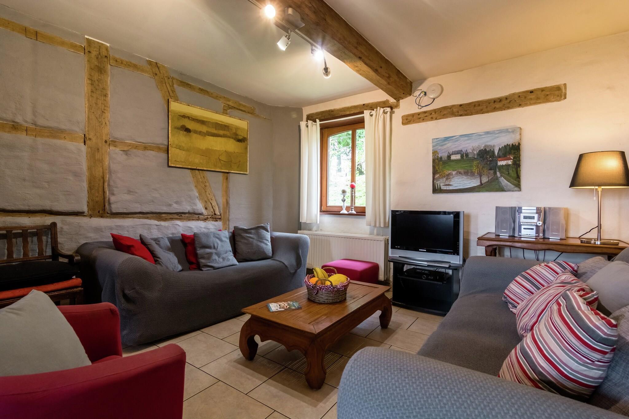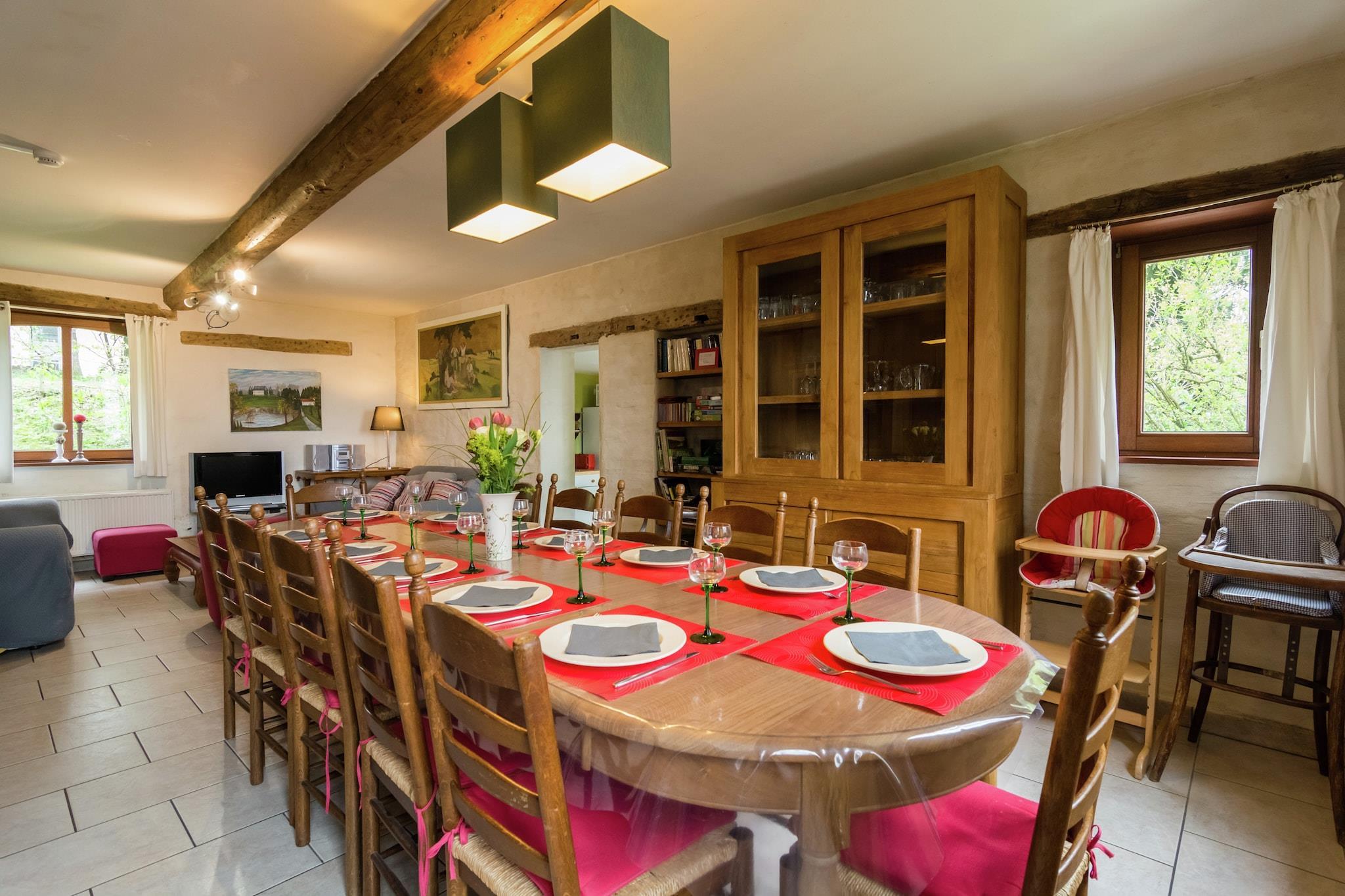 Denne gård er blevet fuldstændig renoveret og er perfekt til en familieferie. Det er centralt beliggende mellem Dinant og Rochefort. Den smagfuldt indrettede stue har et hyggeligt opholdsområde og et stort spisebord med plads til 12 personer. Der er selvfølgelig et stort fuldt udstyret køkken. Soveværelserne er rummelige, der er 2 badeværelser, en af dem med badekar. Der er også et legerum med masser af legetøj til de små. De kan have det sjovt i timevis. Der er også nogle legepladsudstyr i haven. Terrassen med havemøbler og grill har en smuk udsigt over Condrozs bølgende landskab. Denne smukke ejendom løber ind i fritidsområdet Ghevetogne, 500 meter væk. Dette rekreative område er perfekt til en dejlig tur, du kan besøge temahagerne, gå på kano, svømme, spille tennis eller nyde en runde minigolf. Der er også cafeterier og restauranter. Du kan se en byzantinsk kirke, der ligger 1 km fra huset og landsbyen Ciney 6 km væk. Det er centralt beliggende, 18 km fra Dinant og 20 km fra Rochefort. Vores feriehuse er specielt indrettet til at rumme familier.