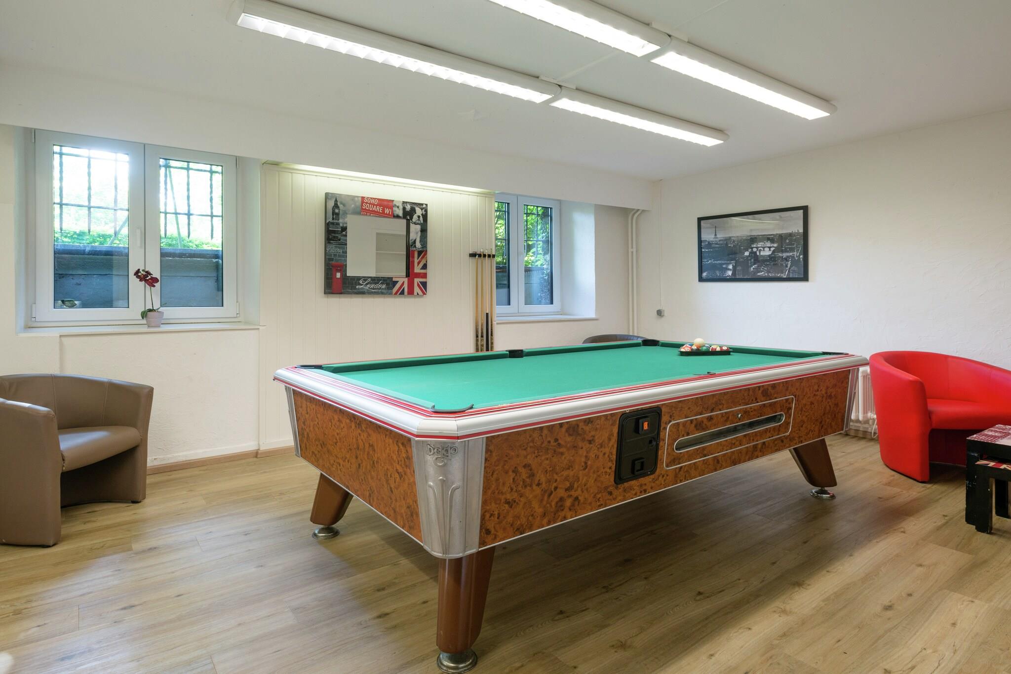 Stueetage: (sofastue, spisestue, Køkken(kaffemaskine, ovn, mikrobølgeovn, opvaskemaskine , fryser), toilet, bar) På 1. etage: (fjernsynsstue(Fjernsyn, DVD-afspiller), soveværelse(dobbeltseng, køjeseng, håndvask), soveværelse(dobbeltseng, håndvask), Soveværelse med badeværelse(dobbeltseng, badekar med bruser, 2x håndvask, toilet), badeværelse(badekar, bruser, toilet)) På 2. etage: (soveværelse(enkeltseng, dobbeltseng, håndvask), soveværelse(enkeltseng, dobbeltseng, håndvask), badeværelse(badekar med bruser, toilet), loungerum(infrarød sauna, sauna)) Kælder: (legeværelse(bordfodbold, airhockey, biljard)) have(privat), havemøbler, grill, parkering, legeredskaber, barneseng, barneseng, barnestol, barnestol, kravlegård, trappegitter