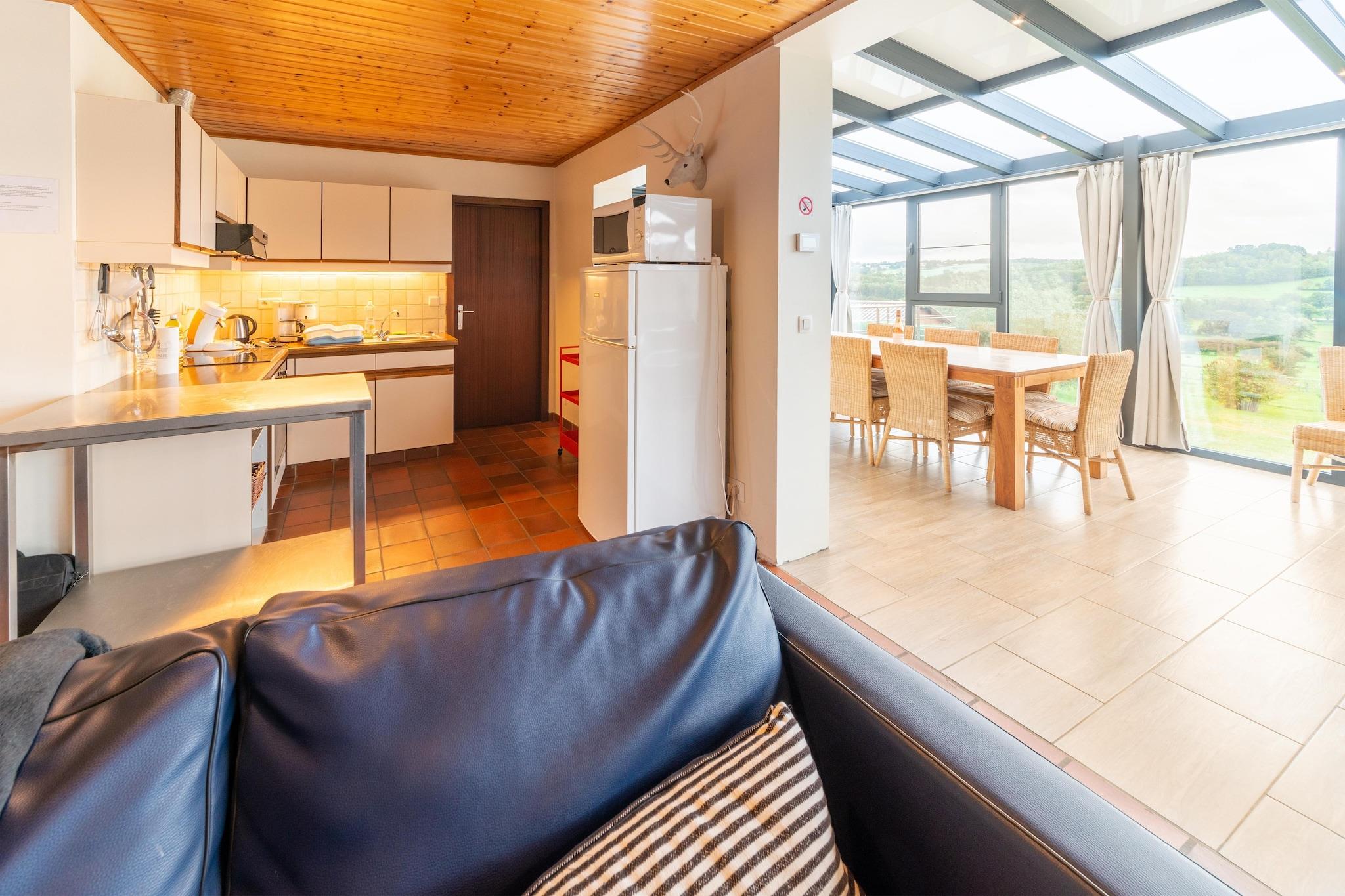 Aktivet ved dette typiske Ardennernes feriehus er først og fremmest den betagende udsigt. Uanset om du tager dertil om foråret for at nyde den grønne natur eller det hvide snetæppe om vinteren, er dette uvurderligt! Feriehuset ligger i Malmedy, nær Stavelot, Spa, High Fens og Francorchamps-kredsløbet og er det ideelle sted at udforske regionen og den nærliggende natur. Det er også det perfekte sted til vandreture, mountainbiking, cykling eller bare afslapning. Selve huset har 4 soveværelser og 2 badeværelser, en lukket terrasse med grill og den enorme have er helt lukket, hvilket gør den meget sikker for børn. Er det lidt koldere udenfor, så lun dig ved den hyggelige brændeovn og sørg for at bruge de forskellige brætspil, læse bøger eller nyde en spændende film via kabel-tv med Proximus. Flere skønne restauranter er i nærheden, hvis du foretrækker at tilberede et måltid derhjemme, ikke noget problem, køkkenet er udstyret med en elektrisk kogeplade og ovn, mikroovn, rummeligt køleskab med fryser, brødrister og tipanyaki. Endvidere råder huset over 4 private parkeringspladser.