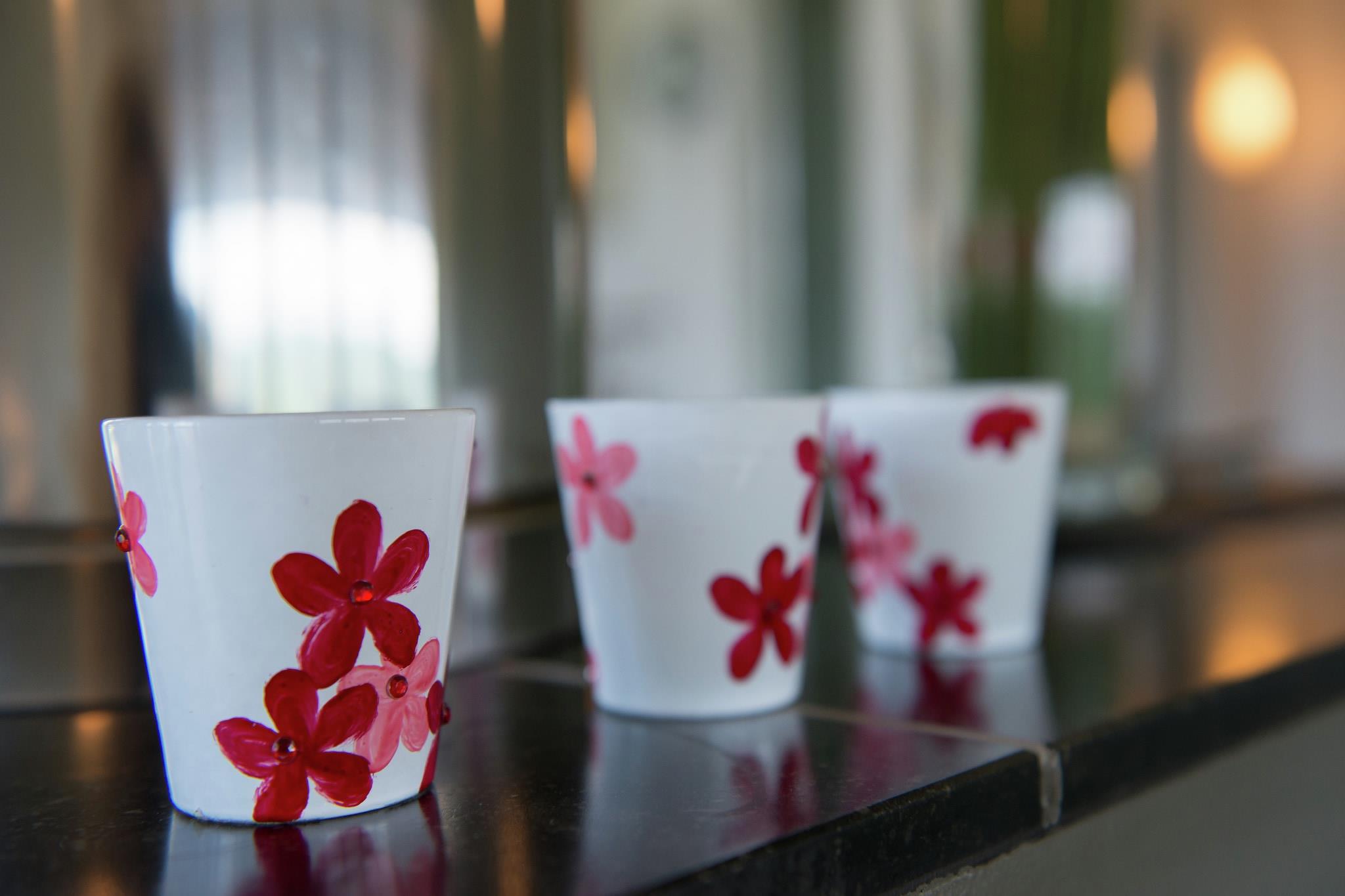 -incompleet servies, 4 persoons huis, 3 wijnglazen, 3 joghurt schaaltjes(eigenaar heeft een extra wijnglas gebracht)