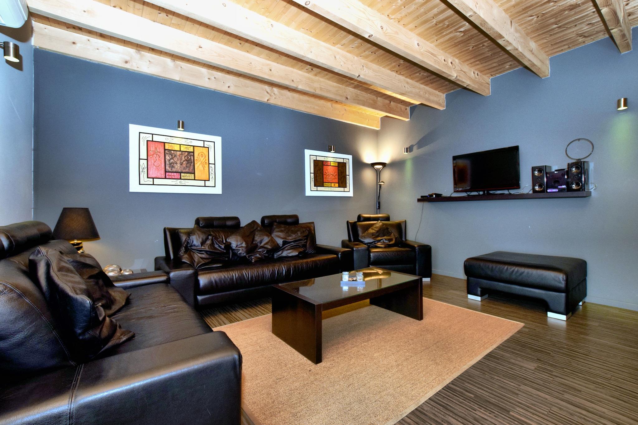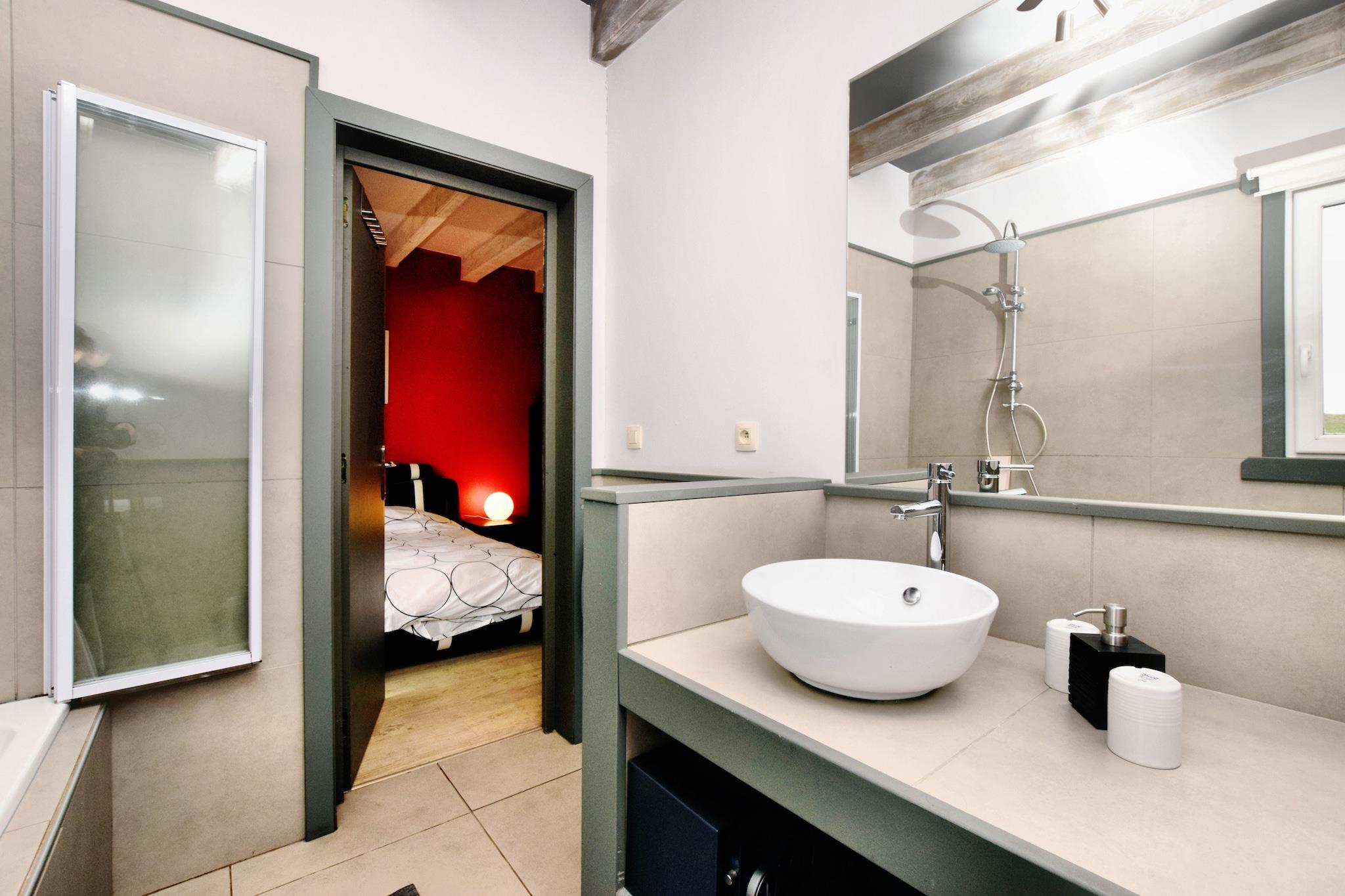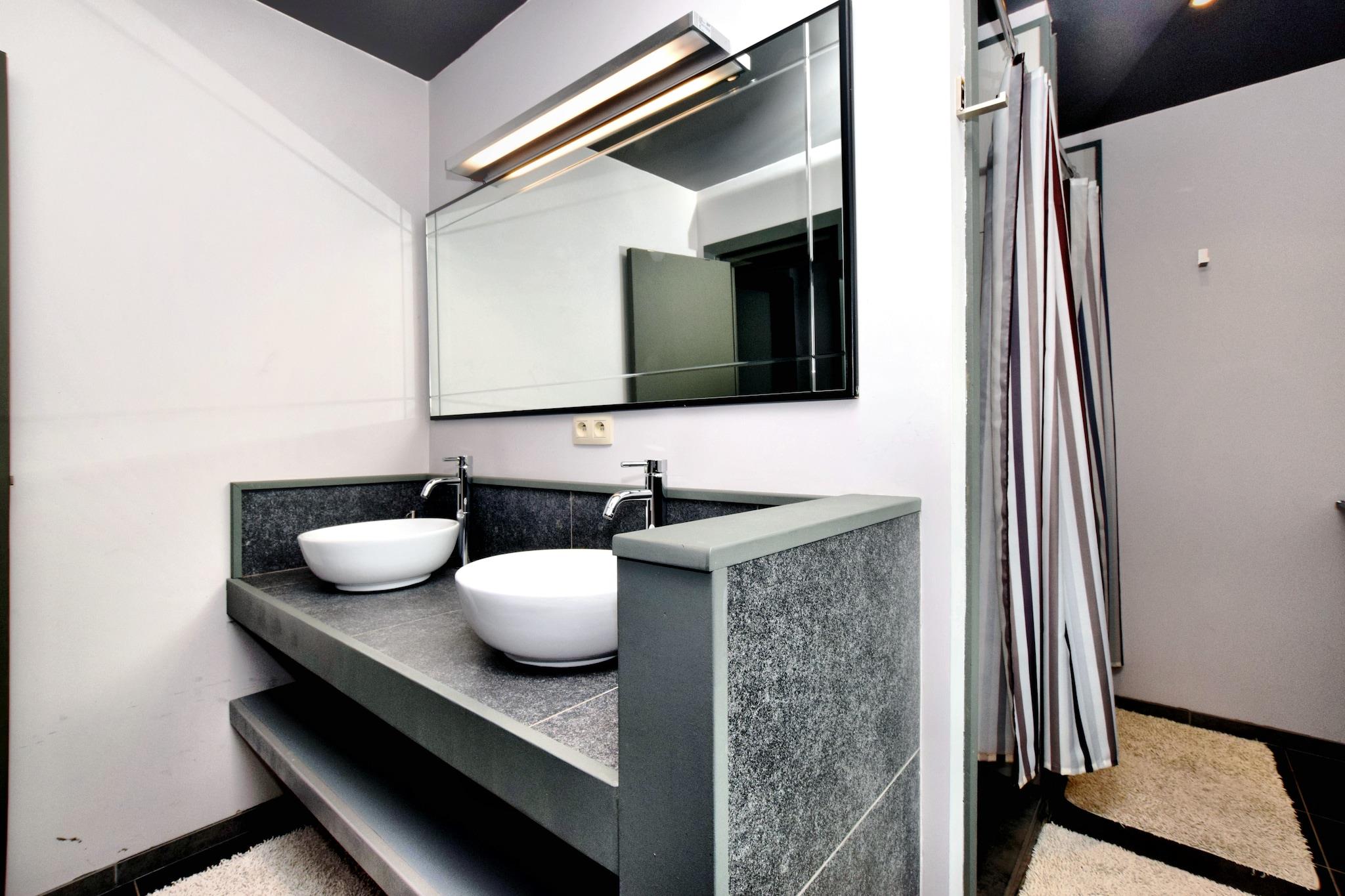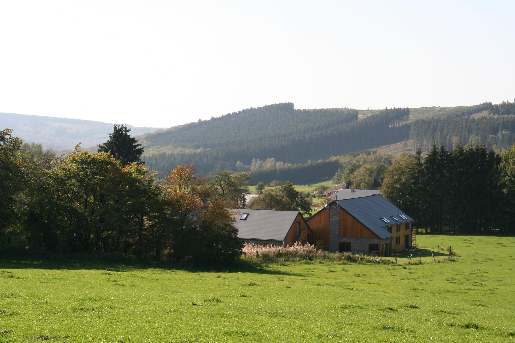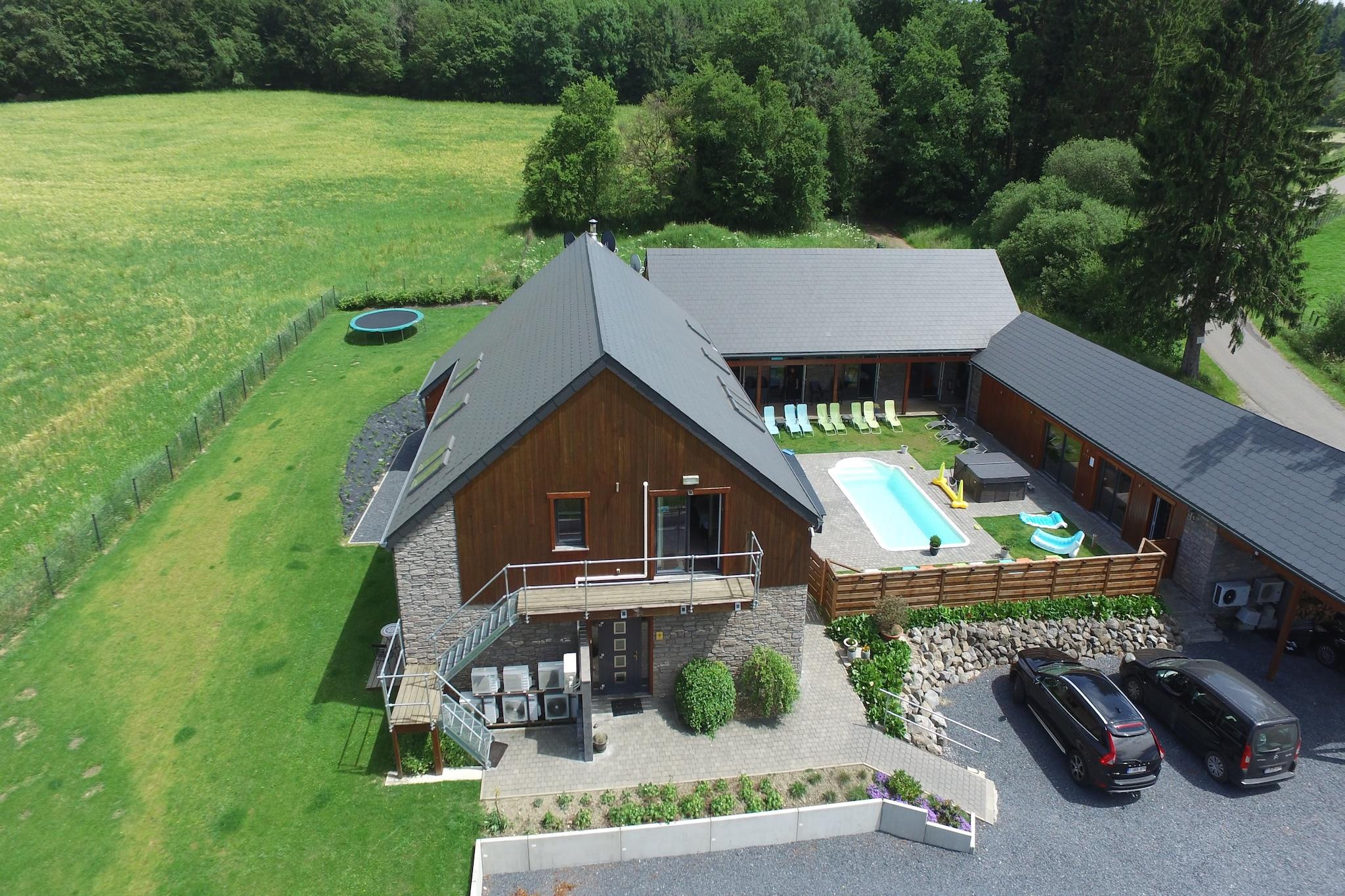 Denne ekspansive kæledyrsvenlige villa i Lamormenil, Manhay tilbyder et luksuriøst tilflugtssted for store familier eller grupper. Ejendommen er omgivet af skov og kun 1 km fra lokale restauranter og offentlige svømmefaciliteter og er perfekt placeret til både afslapning og eventyr. Nærliggende attraktioner omfatter Parc Forestier Récréatif Chlorophylle, WWII-temaet Manhay History 44 Museum og den charmerende middelalderby Durbuy, kendt for sine brostensbelagte gader og naturskønne flodudsigter. Ejendommen har flere soveværelser med en-suite badeværelser, herunder værelser tilpasset handicappede gæster. Hovedhuset omfatter en rummelig stue/spisestue med satellit-tv, pejs og adgang til haven samt et fuldt udstyret dobbeltkøkken. Pensionatet tilbyder ekstra boligareal, private terrasser og et poolhus med sauna, brusere og bordtennis. Udendørs faciliteter inkluderer en opvarmet swimmingpool (åben maj-sept), indhegnet have, grill, liggestole og legeredskaber til børn. Spisemuligheder i nærheden omfatter La Fourchette Paysanne til belgiske specialiteter, Le Patton Restaurant til fransk køkken og Biotanique, kendt for sunde europæiske retter.