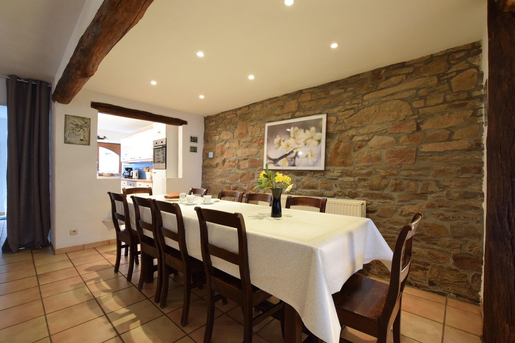 Denne hyggelige kæledyrsvenlige villa i Freyneux, Manhay tilbyder et varmt og indbydende ophold for familier og små grupper. Beliggende kun 6 km fra byens centrum og omgivet af skov- og sølandskaber, er det ideelt for naturelskere og udendørs opdagelsesrejsende. Nærliggende attraktioner omfatter Parc Forestier Récréatif Chlorophylle, en skoveventyrpark perfekt til børn, og Manhay History 44 Museum, som tilbyder et kraftfuldt kig ind i Battle of the Bulge. Vintersportsentusiaster vil nyde skilifte og langrendsløjper kun 5 km væk. Villaen strækker sig over tre etager og har tre soveværelser, heraf et med eget badeværelse og balkon. Det åbne køkken er fuldt udstyret med ovn, opvaskemaskine, kaffemaskine og køleskab, mens stue/spisestue har pejs, tv og cd-afspiller. Et vaskerum med vaskefaciliteter, centralvarme og børnevenlige faciliteter som højstol, kravlegård og børneseng sikrer et behageligt ophold. Gæsterne kan også nyde en fælles have med møbler og grillfaciliteter. Spisemuligheder inden for 6 km omfatter La Fourchette Paysanne til belgiske specialiteter, Le Patton Restaurant til fransk køkken og Biotanique, kendt for sunde europæiske retter.