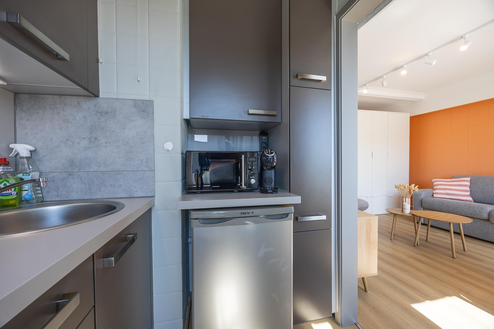 Denne charmerende lejlighed tilbyder et lyst og indbydende tilflugtssted til din kystferie. Den smarte planløsning inkluderer et dedikeret soveområde med en komfortabel dobbeltseng, der sikrer en god nats søvn. Den livlige stue har en sovesofa til to, hvilket giver fleksible sovearrangementer og et indbydende rum til at slappe af. Herfra kan du nyde en behagelig sideudsigt over havet, der tilbyder glimt af det glitrende vand og den forfriskende kystluft. Lejligheden kan prale af et halvåbent køkken, der er omhyggeligt udstyret med alle de bekvemmeligheder, du har brug for til at tilberede måltider og snacks. Et veludstyret badeværelse med badekar (inklusive bruser) og toilet øger din bekvemmelighed. Dette rum er designet til lethed og afslapning, hvilket gør det til en perfekt base for dine Blankenberge-eventyr. Hold dig forbundet med gratis Wi-Fi under hele dit ophold. Selvom parkering ikke er inkluderet, er der normalt muligheder i nærheden. Husk at medbringe dine egne lagner og håndklæder for at sikre en personlig og komfortabel oplevelse. Denne lejlighed tilbyder dejlige omgivelser til at nyde alt, hvad kysten har at byde på.