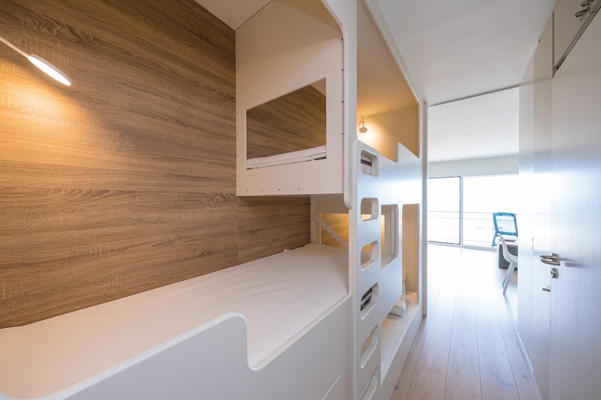På 6. etage: (åbent køkken(elkedel, kaffemaskine(kaffepude), mikrobølgeovn, opvaskemaskine , køle-fryseskab, , ), stue / spisestue(dobbeltsovesofa(dobbelt dynebetræk, 140 x 200 cm), Fjernsyn(digital), spisebord, radio), soveniche(3-etage-køjeseng(dynebetræk, 90 x 200 cm)), badeværelse(badekar med bruser, håndvask, toilet), pulterkammer) Internetadgang, varme(elektrisk), terrasse, parkering, elevator