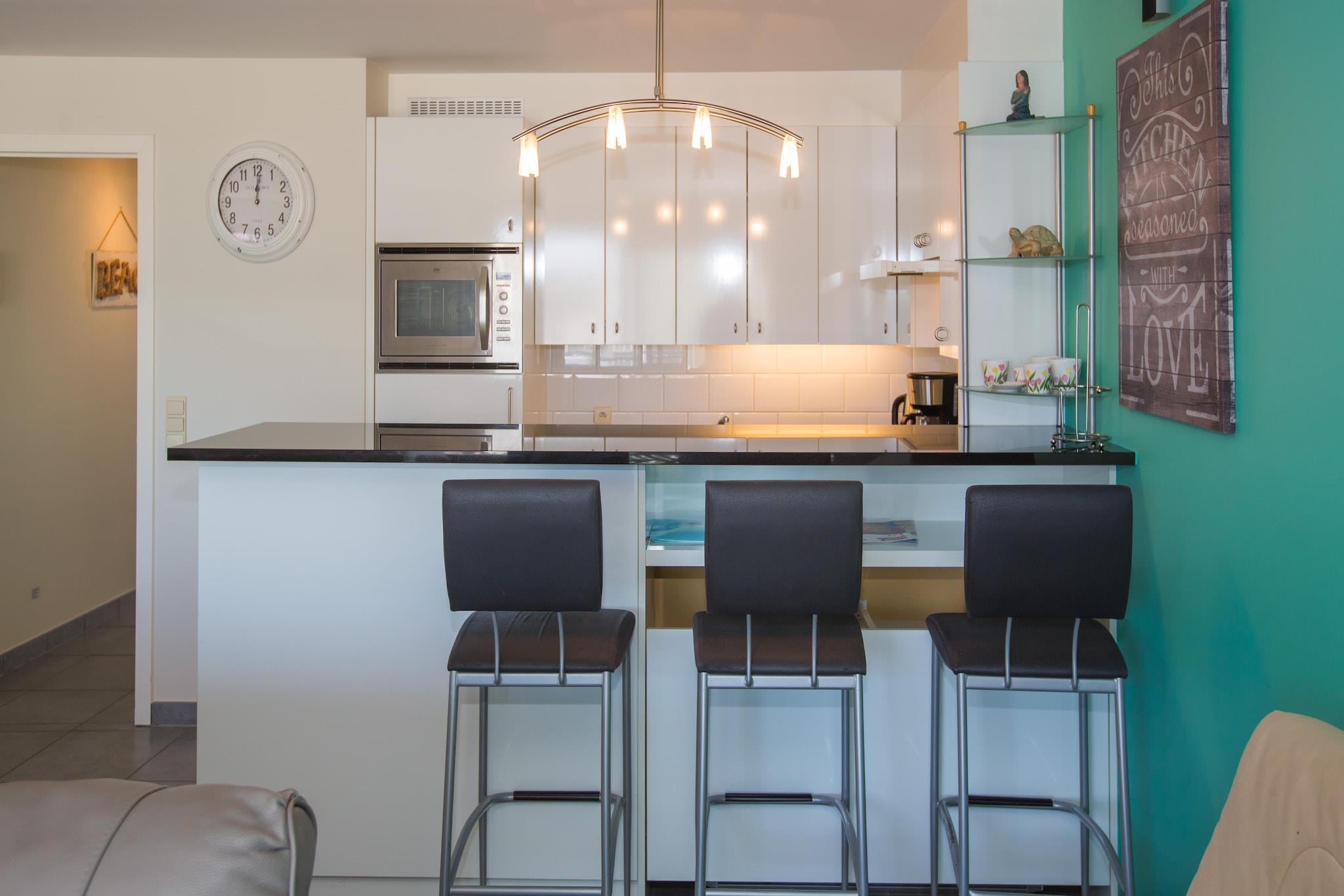 Elegance ved havet med spektakulær udsigt Velkommen til dit stilfulde tilflugtssted i hjertet af Middelkerke! Denne rummelige lejlighed på 6. sal kombinerer moderne komfort med en flot udsigt over havet, kasinoet og det livlige bytorv. Det lyse opholdsområde er designet til afslapning og byder på en blød sovesofa, et digitalt tv og direkte adgang til en solbeskinnet terrasse. Det fuldt udstyrede åbne køkken, komplet med opvaskemaskine og stavblender, gør madlavning derhjemme til en leg. Med to elegante soveværelser og to toiletter kan denne lejlighed nemt rumme op til 6 gæster. Førsteklasses beliggenhed ved stranden og kasinoet Kun få skridt fra den sandede kystlinje er denne lejlighed perfekt beliggende til stranddage, gåture ved havet og pulserende lokale begivenheder. Kasinoet og det centrale torv er lige uden for dit vindue, hvilket bringer underholdning og charme til dit dørtrin. Sporvognsstoppestedet er i nærheden, hvilket giver dig nem adgang til at udforske Belgiens smukke kystlinje uden behov for en bil. Spisning, komfort og bekvemmelighed Nyd lækre belgiske retter på caféer ved vandet, eller tag til nærliggende restauranter, der serverer frisk fisk og skaldyr og lokale specialiteter. Nyd ro i sindet med gratis Wi-Fi, en vaskemaskine, en privat garage og en elevator. Uanset om du er her for en familieferie eller en afslappende ferie med venner, leverer dette kæledyrsfrie luksusophold den perfekte balance mellem ro og spænding ved havet.