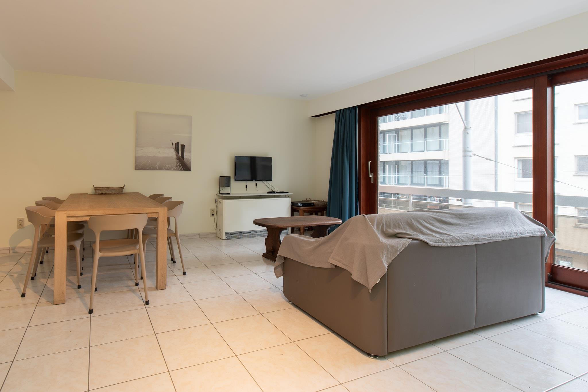 Denne rummelige og lyse lejlighed, beliggende på anden sal, tilbyder et behageligt og afslappende ophold i Middelkerke. Med en stor stue, der problemfrit forbinder til det åbne køkken, er lejligheden perfekt til både afslapning og underholdende. Lejligheden har to soveværelser og kan rumme op til 7 personer, med en sovesofa for ekstra soveplads. Der er et moderne badeværelse med bruseniche, samt et separat toilet for ekstra bekvemmelighed. Lejligheden ligger kun få skridt fra kasinoet og havmuren, så gæsterne nemt kan udforske de nærliggende attraktioner. Kæledyr er ikke tilladt, hvilket sikrer et fredeligt miljø. Lejligheden er ideelt beliggende nær Epernay-pladsen og er i gåafstand fra centrum og et sporvognsstoppested, hvilket gør det nemt at udforske Middelkerke og de omkringliggende områder. Selvom lejligheden ikke har havudsigt, kan den prale af en balkon foran og en terrasse på bagsiden, hvor gæsterne kan nyde udendørs i komfort. Ejendommen tilbyder også en elevator og er tilgængelig for kørestolsbrugere, hvilket gør det bekvemt for alle gæster. Udstyret med moderne bekvemmeligheder inkluderer lejligheden elektrisk opvarmning, digital-tv, Wi-Fi og et fuldt udstyret køkken med kaffemaskine, ovn, mikroovn, køleskab med fryser, opvaskemaskine, mixer, brødrister og kedel. For ekstra bekvemmelighed er der strygebræt, strygejern og støvsuger. Med laminatparketgulve og gennemtænkt design overalt tilbyder denne lejlighed et komfortabelt og veludstyret ophold for familier eller grupper.