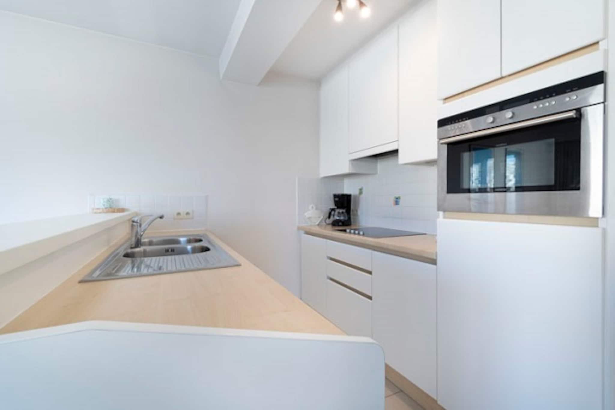 Denne moderne og behagelige hjørnelejlighed, beliggende på 7. sal i en nybygget bolig, tilbyder både en diagonal havudsigt og udsigt over baglandet, hvilket gør den til et ideelt sted at slappe af og nyde det omkringliggende landskab. Indretningen omfatter en rummelig stue med åbent køkken, et badeværelse med badekar, et separat toilet, et depotrum og to hyggelige soveværelser. Lejligheden kan rumme op til 6 personer, med en sovesofa til ekstra soveplads. Det kan varmt anbefales til dem, der leder efter et behageligt og velbeliggende ophold i Middelkerke. Bekvemt beliggende nær Epernay Square og et sporvognsstoppested, er denne lejlighed tæt på centrum og tilbyder nem adgang til lokale attraktioner, shopping og restauranter. Til lejligheden hører desuden en altan på bagsiden, hvor du kan nyde den friske luft og nyde udsigten. Bygningen er udstyret med en elevator og er tilgængelig for kørestolsbrugere, hvilket sikrer et behageligt ophold for alle gæster. Lejligheden er fuldt udstyret med moderne bekvemmeligheder, herunder digital-tv, Wi-Fi og laminat parketgulv. Køkkenet er komplet med kaffemaskine, ovn, mikroovn, køleskab med fryser, opvaskemaskine og elkedel. Yderligere bekvemmeligheder inkluderer en støvsuger, strygejern, dyner til to personer (160x200) og et sæde på balkonen. Med sin lyse og rummelige planløsning tilbyder denne lejlighed det perfekte sted at slappe af og nyde din ferie i Middelkerke.