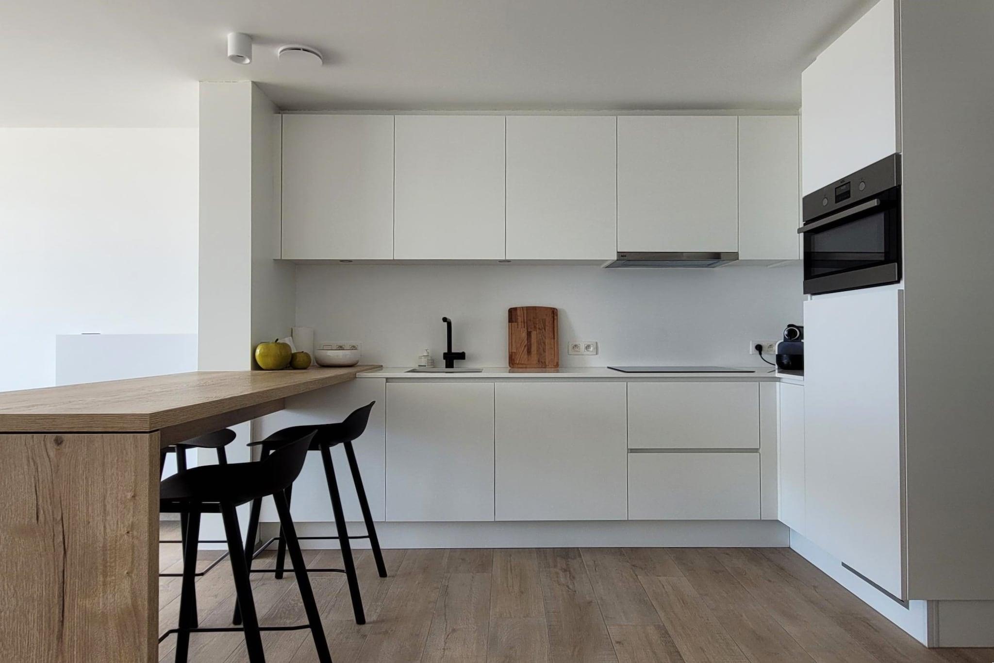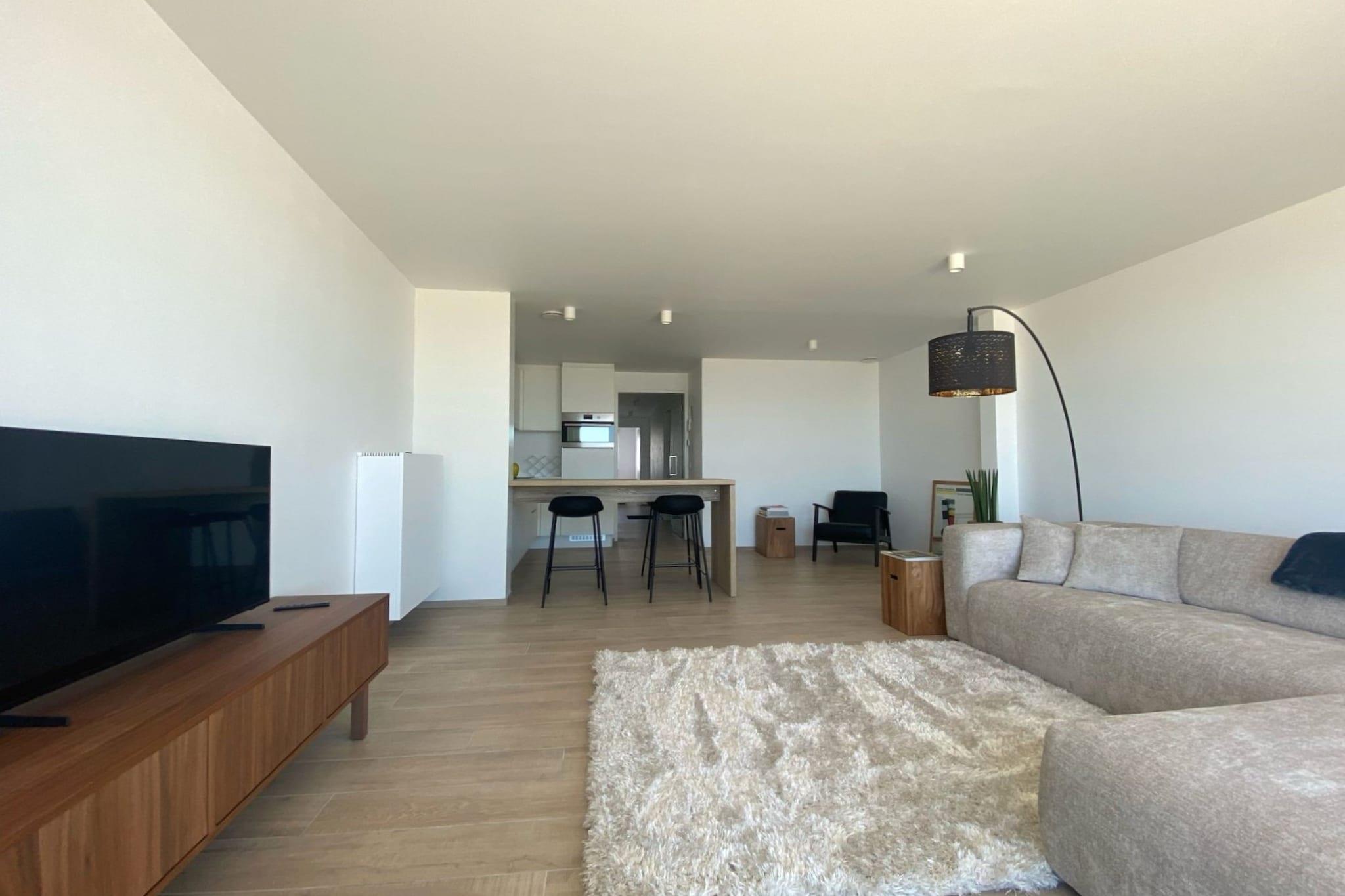 Oplev den perfekte strandferie i denne luksuriøse nybyggede lejlighed beliggende direkte ved Middelkerkes havmur. Nyd en fantastisk havudsigt fra din private terrasse og slap af i det stilfulde, moderne interiør designet til maksimal komfort. Med sin førsteklasses beliggenhed nær centrum, sporvognsstoppested og promenade tilbyder denne lejlighed de ideelle rammer for en afslappende og godt forbundet kystferie. Lejligheden har en lys og åben opholdsstue med panoramaudsigt, et hyggeligt siddeområde og adgang til den forreste terrasse, hvor du kan nyde din morgenkaffe eller en drink ved solnedgang. Det åbne køkken er fuldt udstyret med high-end apparater, herunder en Nespresso-maskine, kombinationsovn, køleskab med frostboks, opvaskemaskine og mixer - perfekt til at tilberede måltider i ro og mag. De to komfortable soveværelser og det moderne badeværelse med bruseniche sikrer et fredeligt og forfriskende ophold. Et separat toilet og opbevaringsrum giver ekstra bekvemmelighed. Yderligere faciliteter inkluderer digital-tv, Netflix, Wi-Fi, laminatparketgulv og en støvsuger. Bygningen tilbyder et cykelskur og elevatoradgang. Kæledyr er ikke tilladt, og lejligheden er røgfri, hvilket sikrer et rent og allergivenligt miljø. Uanset om du planlægger en romantisk ferie eller et roligt tilflugtssted ved havet, tilbyder denne elegante lejlighed alt, hvad du behøver for et uforglemmeligt ophold i Middelkerke.