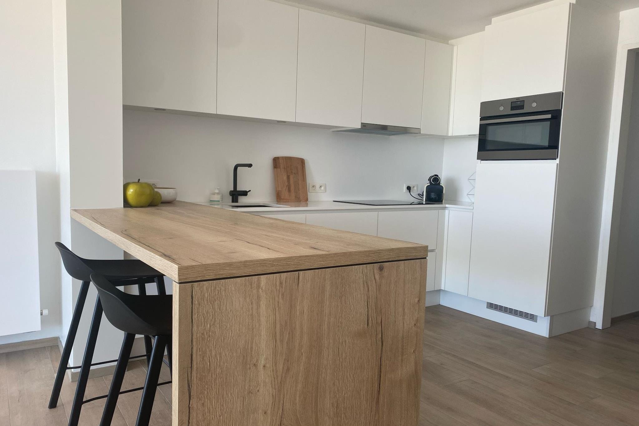 Køkken(, kaffemaskine(kopper, kaffetragt), ovn, combi-mikroovn, opvaskemaskine , køleskab(+ fryser)), stue / spisestue(Fjernsyn(digital), spisebord, sofahjørne, Netflix), soveværelse(dobbeltseng(dobbelt dynebetræk, 160 x 200 cm)), soveværelse(dobbeltseng(dobbelt dynebetræk)), badeværelse(bruser), toilet(toilet), terrasse, cykelopbevaring, elevator