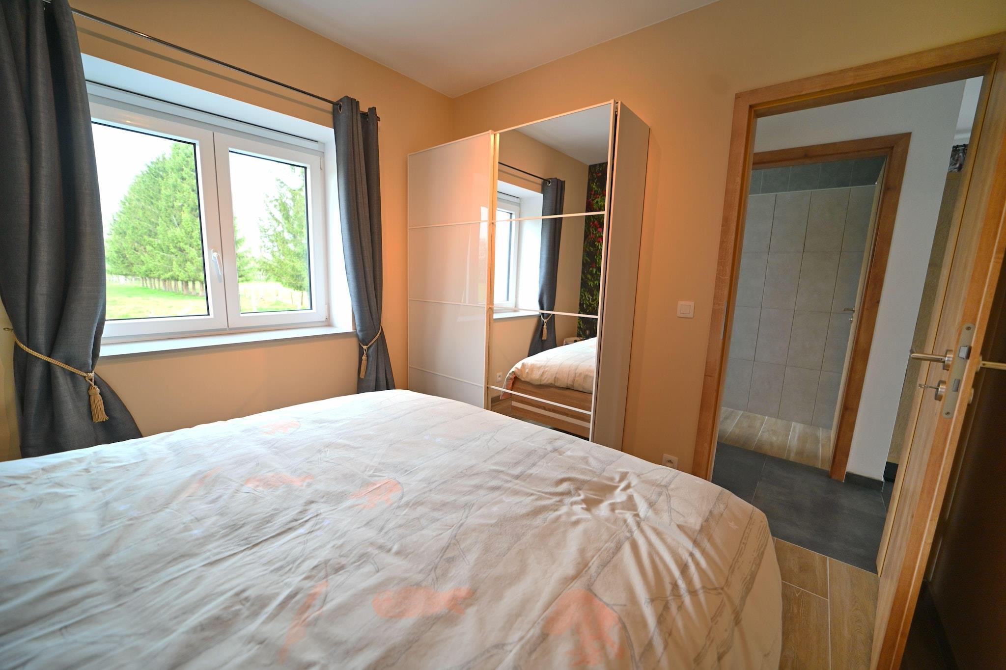Stueetage: (åbent køkken(komfur(glaskeramisk), kaffemaskine, ovn, køleskab), stue / spisestue(Fjernsyn(digital), spisebord, sofahjørne), Soveværelse med badeværelse(dobbeltseng, bruser, håndvask), toilet) På 1. etage: (åbent rum(2x enkeltseng, sofahjørne, håndvask)) kakkelovn(pille), varme(elektrisk), terrasse, have, havemøbler, grill(elektrisk), parkering