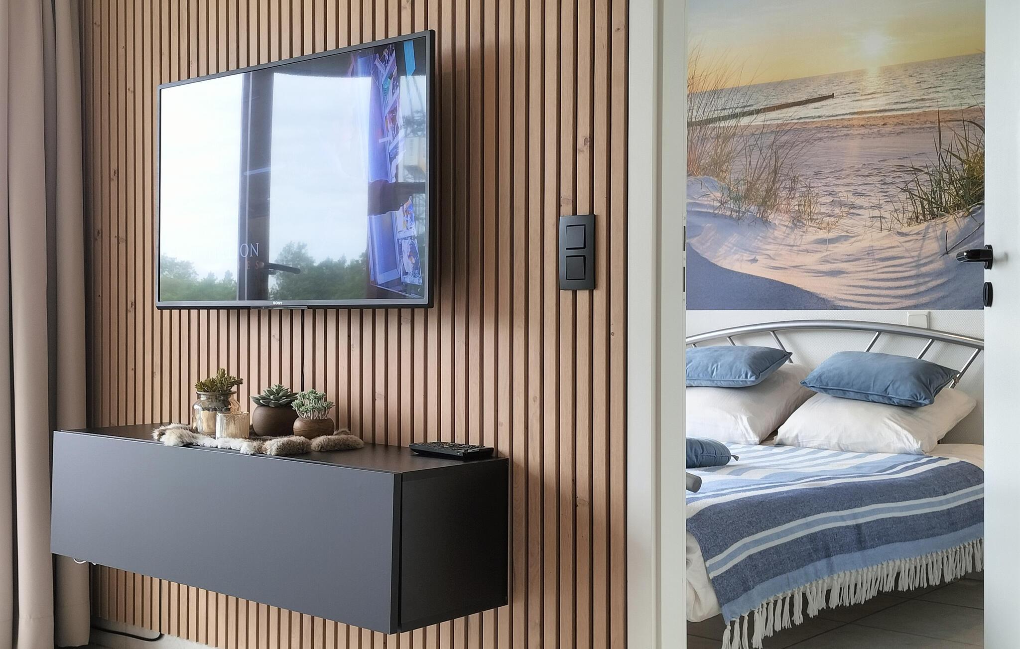 Bare en kort gåtur fra sandstranden byder denne lyse og smagfulde ferielejlighed jer velkommen. Naturlige farver og raffineret indretning skaber en behagelig atmosfære. Nyd harmoniske måltider ved det stilfuldt dækkede spisebord, planlæg jeres aktiviteter i fred og ro, og slap af på den komfortable sofa efter en begivenhedsrig dag.