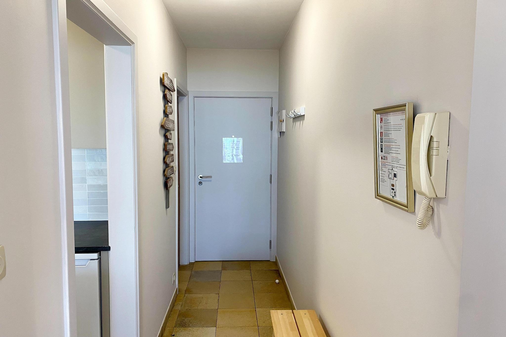 På 5. etage: (åbent køkken(komfur(elektrisk), emhætte, kaffemaskine, ovn, mikrobølgeovn, køleskab(+ fryser)), stue / spisestue(dobbeltsovesofa(dobbeltdyne, dun, 160 x 200 cm), Fjernsyn(digital), spisebord, sofahjørne, radio), soveværelse(dobbeltseng(dobbeltdyne, dun)), badeværelse(bruser, håndvask, toilet)) cykelopbevaring, elevator