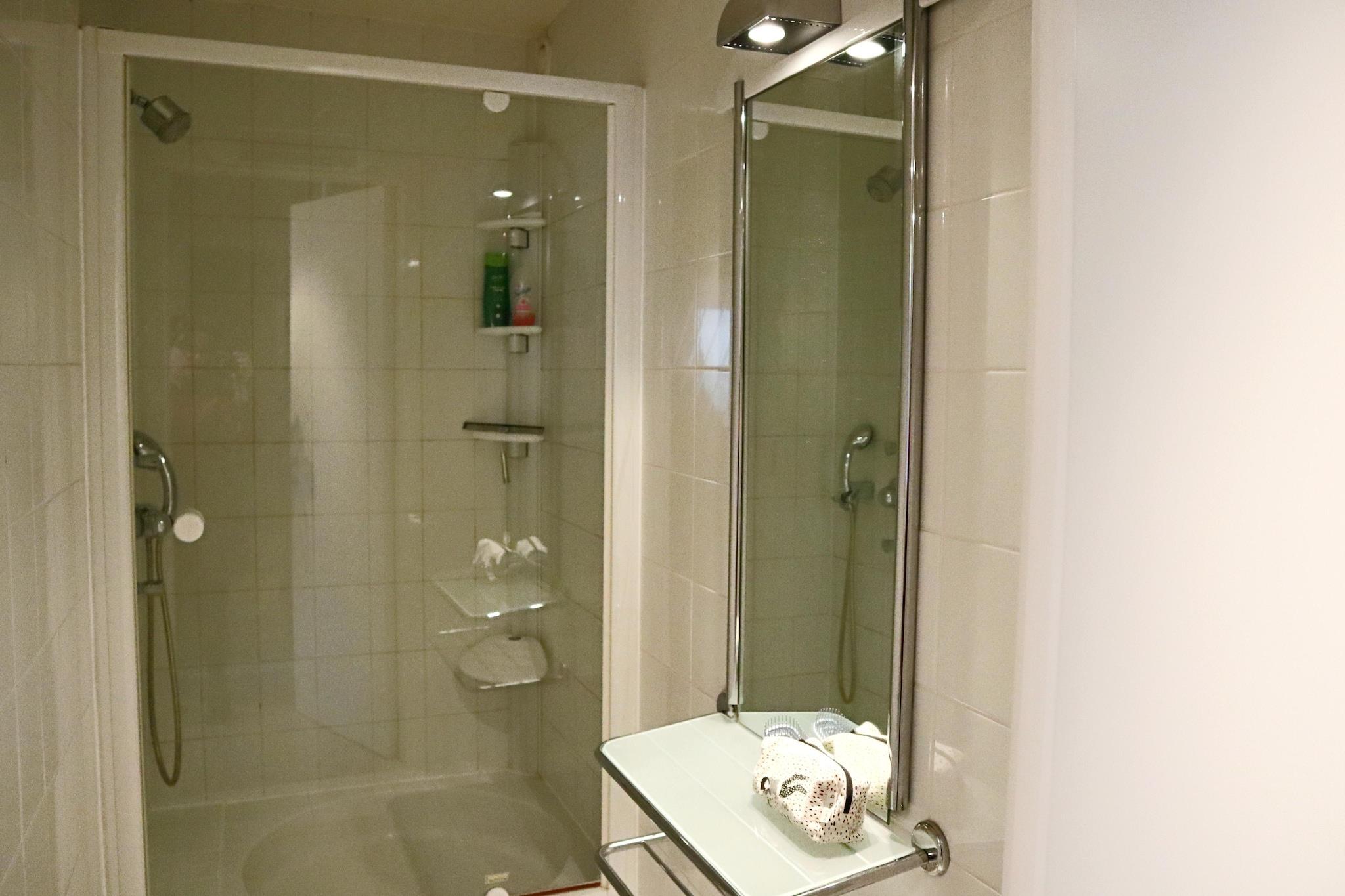 På 9. etage: (åbent køkken(komfur(elektrisk), kaffemaskine, ovn, opvaskemaskine , køleskab(+ fryser)), stue / spisestue(Fjernsyn(digital), DVD-afspiller, radio), soveværelse(dobbeltseng(dobbeltdyne, dun, 160 x 200 cm), håndvask), soveværelse(dobbeltseng(180 x 200 cm)), soveværelse(køjeseng(dyne, dun)), badeværelse(badekar med bruser, håndvask, toilet), badeværelse(bruser), badeværelse, toilet(toilet)) garage, terrasse, cykelopbevaring, havemøbler, elevator