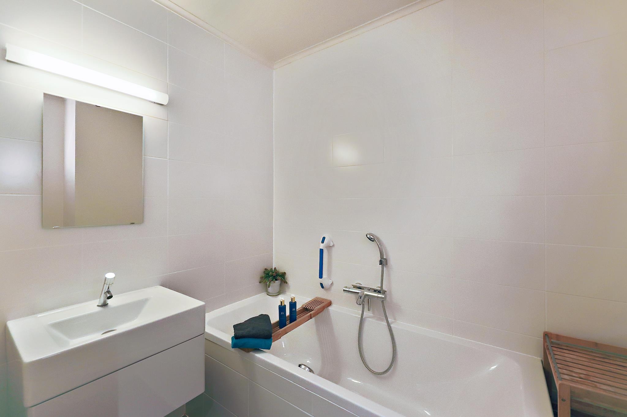På 4. etage: (Køkken(kogeplade(induktion), kaffemaskine, combi-mikroovn, opvaskemaskine , køle-fryseskab), stue / spisestue(Fjernsyn, spisebord, sofahjørne), soveværelse(køjeseng(dynebetræk), køjeseng(dynebetræk)), soveværelse(dobbeltseng(dobbelt dynebetræk, 180 x 200 cm)), badeværelse(bruser, håndvask), badeværelse(badekar, håndvask, toilet), toilet(toilet), pulterkammer) vaskemaskine, terrasse, cykelopbevaring, elevator, barnestol, strygebræt, strygejern, baby crib(free)