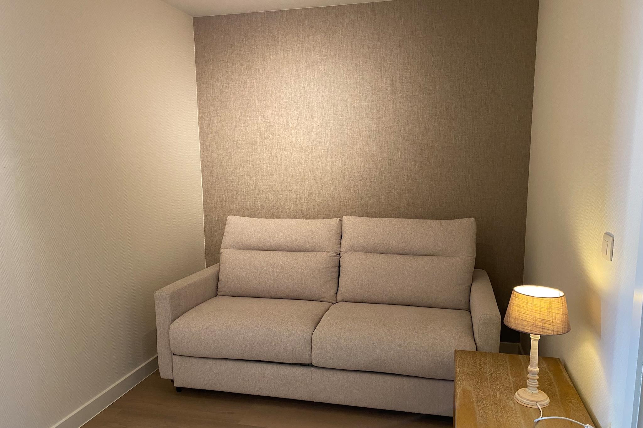 På 5. etage: (entre(køjeseng), åbent køkken(komfur(elektrisk), kaffemaskine(kaffetragt, kaffepude), ovn, mikrobølgeovn, opvaskemaskine , køle-fryseskab), stue / spisestue(Fjernsyn(digital), spisebord, sofahjørne, DVD-afspiller, radio), soveværelse(dobbeltseng(180 x 200 cm)), soveværelse(enkeltseng, enkeltseng), badeværelse(badekar med bruser, håndvask, toilet), toilet(toilet)) tørretumbler, vaskemaskine, terrasse, parkering