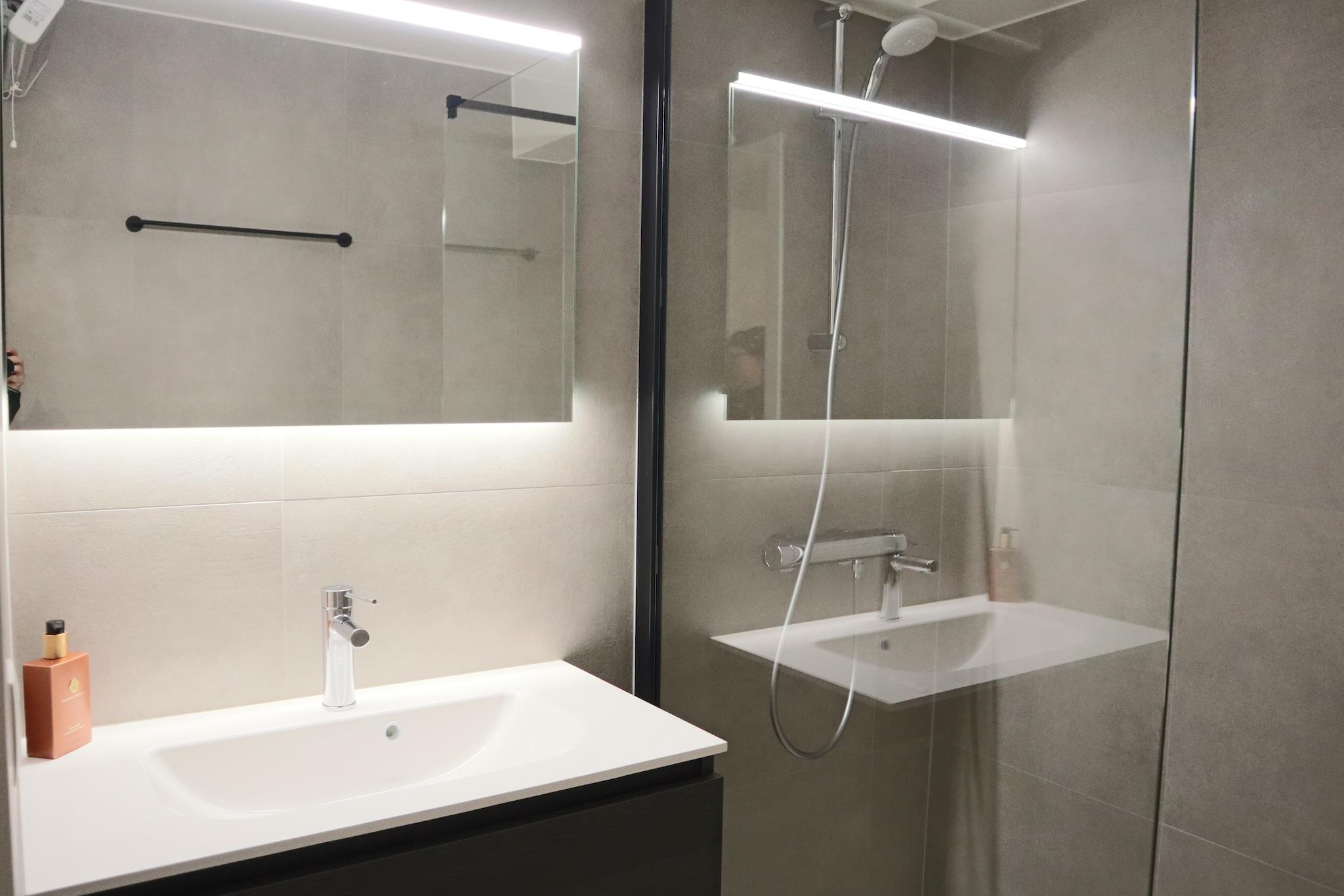 På 6. etage: (åbent køkken(kogeplade(induktion), kaffemaskine, ovn, mikrobølgeovn, opvaskemaskine , køleskab(+ fryser)), stue / spisestue(Fjernsyn(digital), spisebord, sofahjørne), soveværelse(dobbeltseng(dobbelt dynebetræk, 160 x 200 cm)), soveværelse(køjeseng(dynebetræk)), badeværelse(bruser, håndvask), toilet(toilet)) cykelopbevaring(deles med andre gæster), elevator