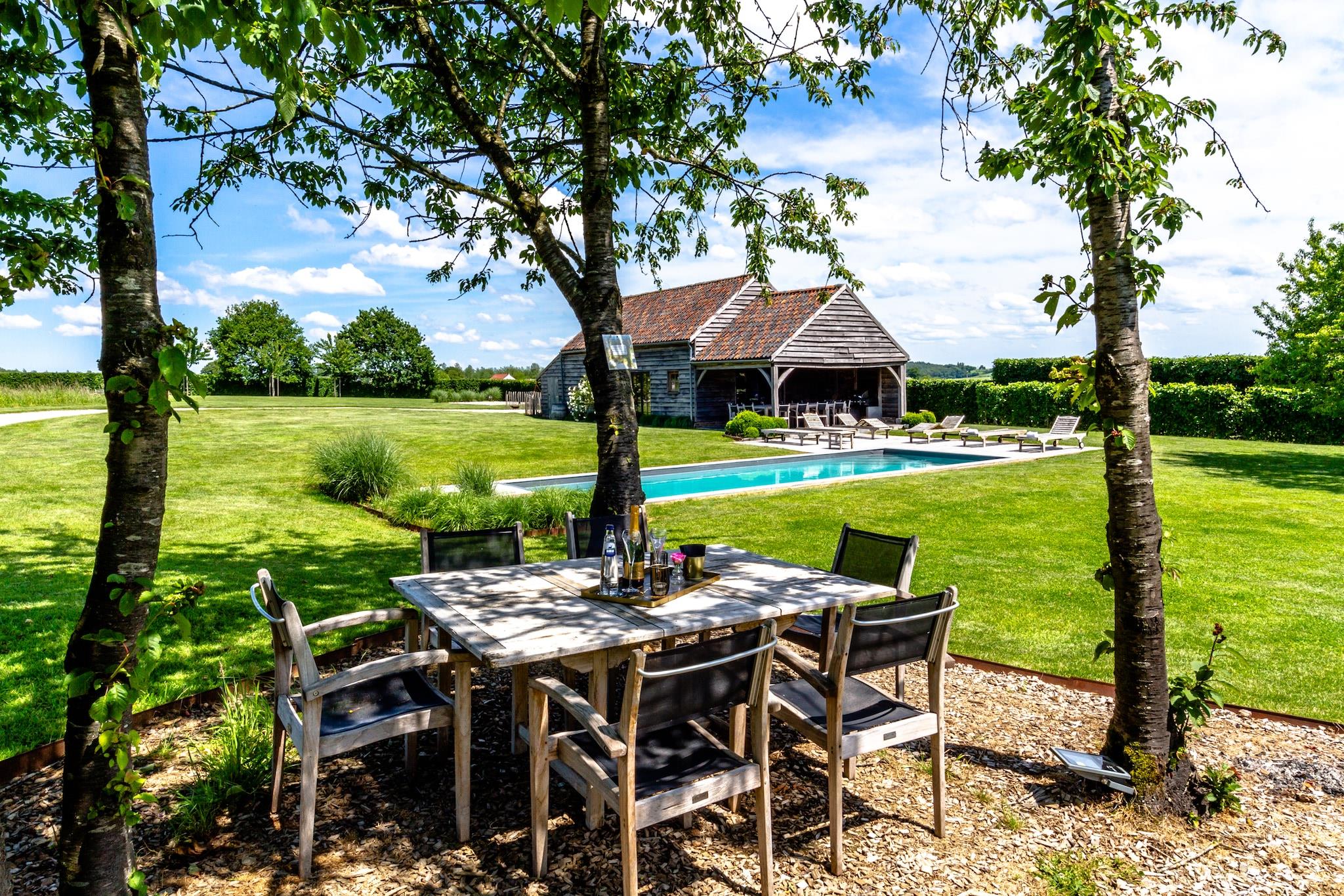 Denne perle af et feriehus med en opvarmet udendørs pool og luksus poolhouse er beliggende på en unik ejendom på 1 hektar. Huset er en del af en beskyttet gård, en imponerende ejendom, som du kan se fjernt i de ekspansive felter i Condroz. Tag de mest vidunderlige måltider i det veludstyrede køkken, nyd en aperitif ved åben ild (biogas) eller tag et foryngende boblebad i det moderne badeværelse. Hjemmet er smagfuldt renoveret med de bedste materialer og udstråler luksus og charme. Glasurret på kagen er den enorme have i ryggen og en dejlig swimmingpool, et flot poolhus, en dam og fodstier. Poolhuset er specielt udstyret til møder eller sammenkomster, med projektor, projektionsskærm og udstyret bar. Denne plads kan bruges til op til 20 personer. Desuden har poolhuset et femte soveværelse, så nu kan op til 20 personer bo i dette hus.