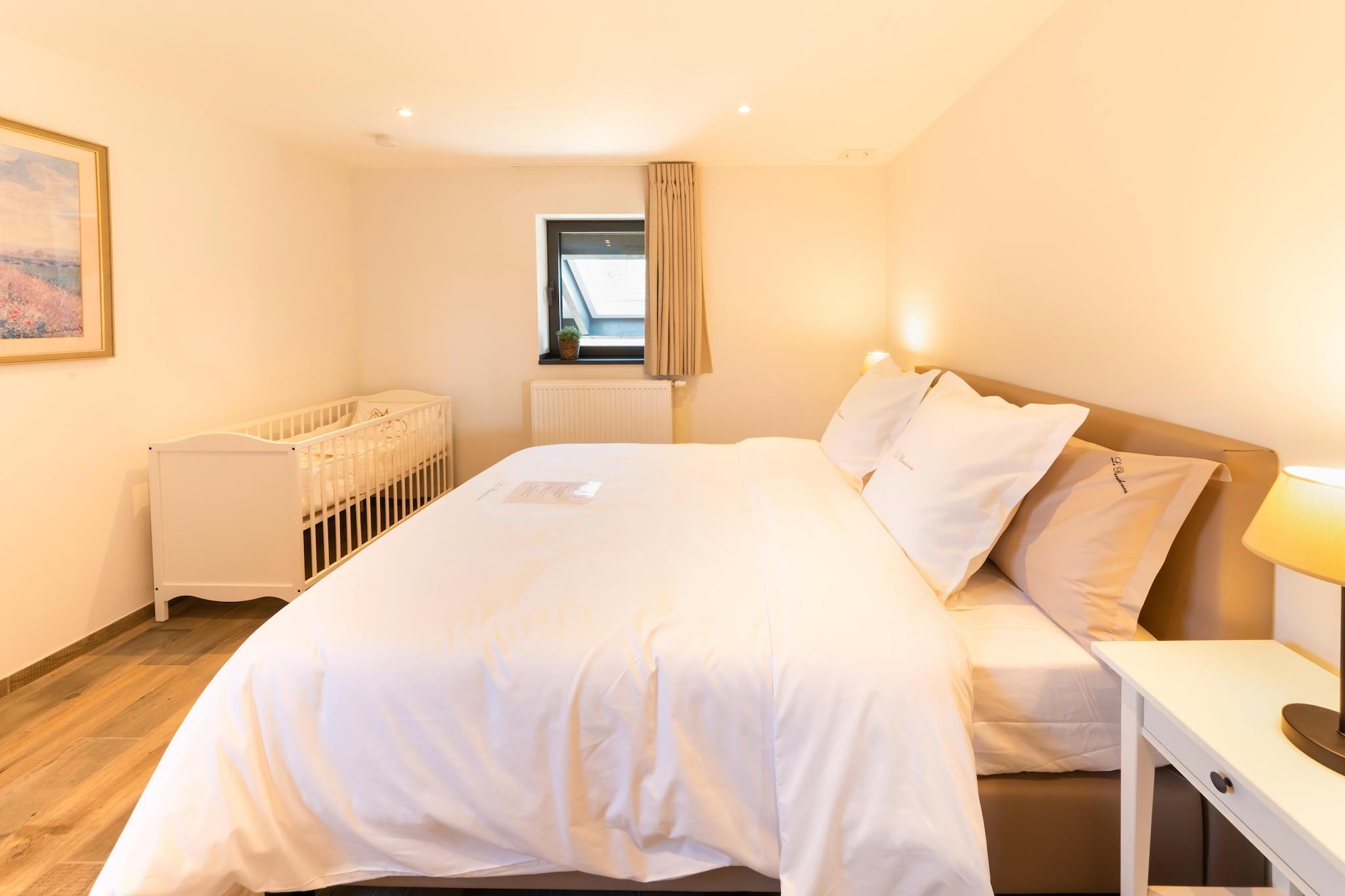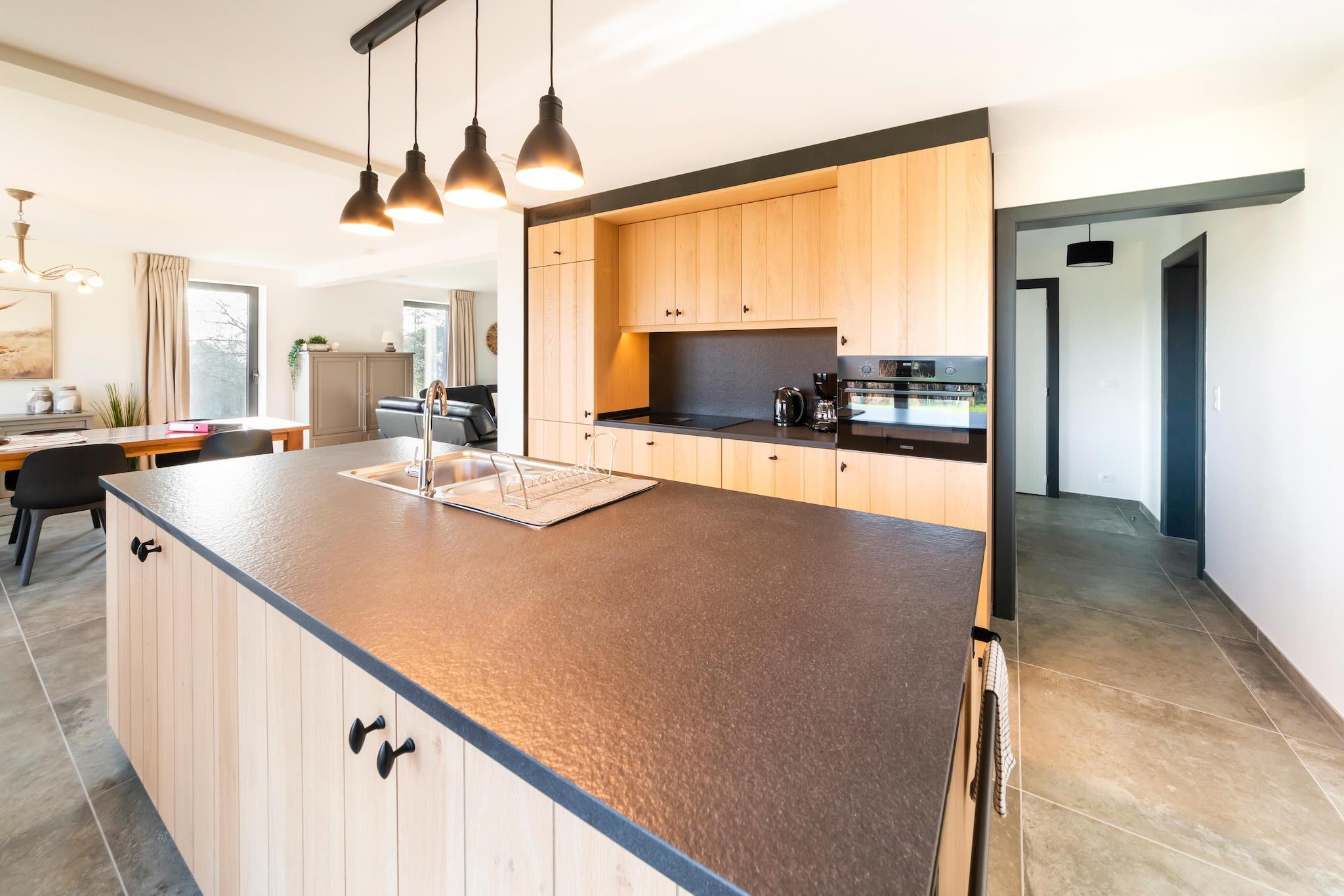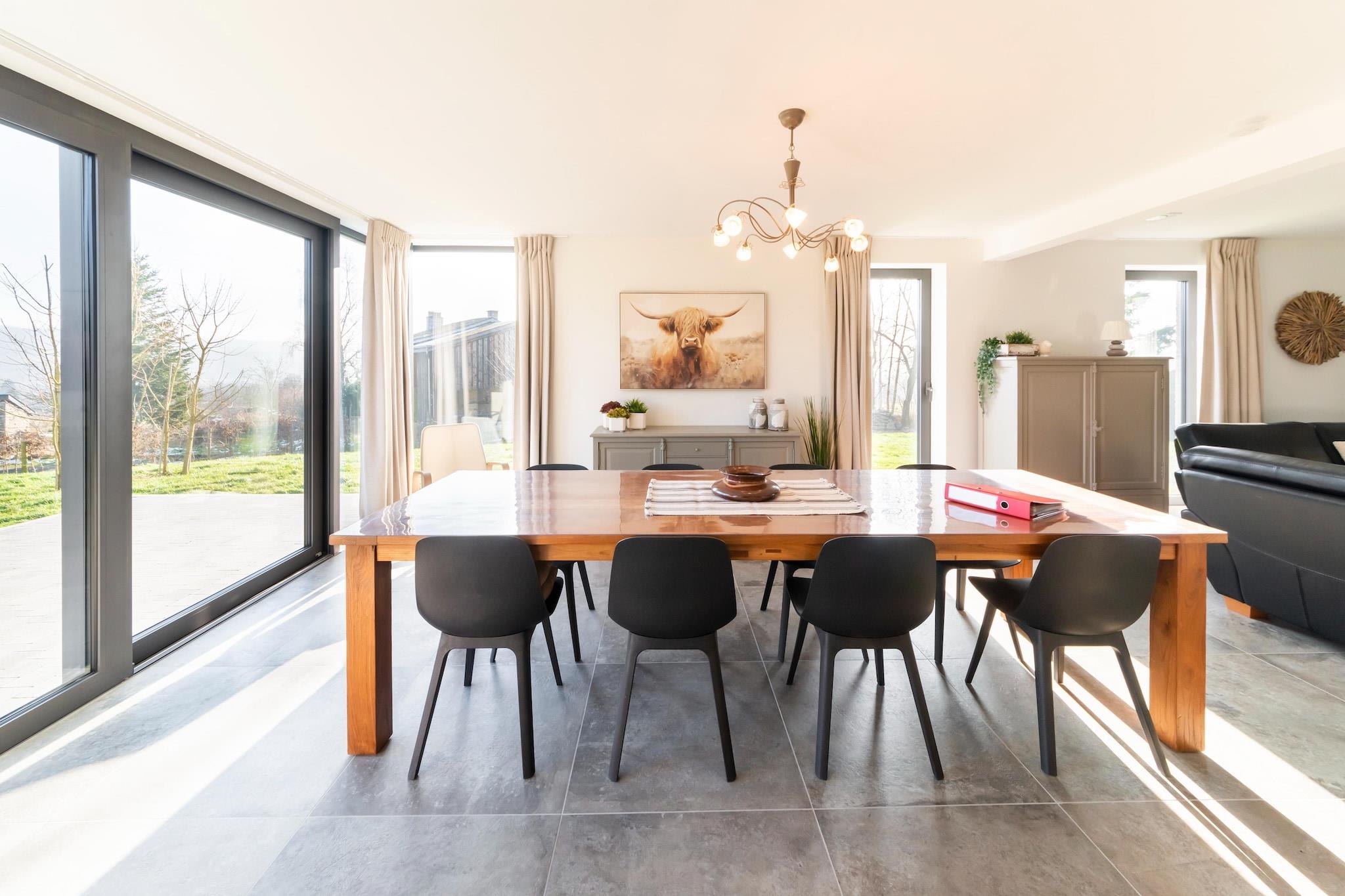 Dette nybyggede feriehus med 5 soveværelser i fredelige Petit-Thier byder på en fantastisk udsigt over det bølgende Ardennernes landskab. Med 2 badeværelser, 2 separate toiletter og moderne bekvemmeligheder kan det rumme op til 8 gæster, perfekt til familier, der søger komfort og ro. Huset ligger kun 5 km fra Vielsalm og er ideelt placeret for at udforske Ardennerne. Oplev de historiske byer Malmedy og Stavelot, besøg Spa-Francorchamps-kredsløbet, eller vandre nær Baraque Fraiture, Belgiens højeste punkt. Indenfor kan du nyde et rummeligt åbent køkken og stue/alrum, der åbner til en stor, overdækket terrasse og en 1200 m² stor have med legeplads. Et opholdsrum byder på indendørs sjov med bordspil, mens køkkenet er fuldt udstyret med opvaskemaskine, køleskab med fryser, ovn, mikroovn, kaffemaskine og meget mere. Et bryggers inkluderer en vaskemaskine, tørretumbler og ekstra vask, ideel til længere ophold. Gulvvarme sikrer komfort året rundt, og der er rigelig privat parkering til rådighed. Bemærk venligst: max belægning er 8 i henhold til kommunale regler. Ingen partier eller ungdomsgrupper fik lov til at bevare de fredelige omgivelser.