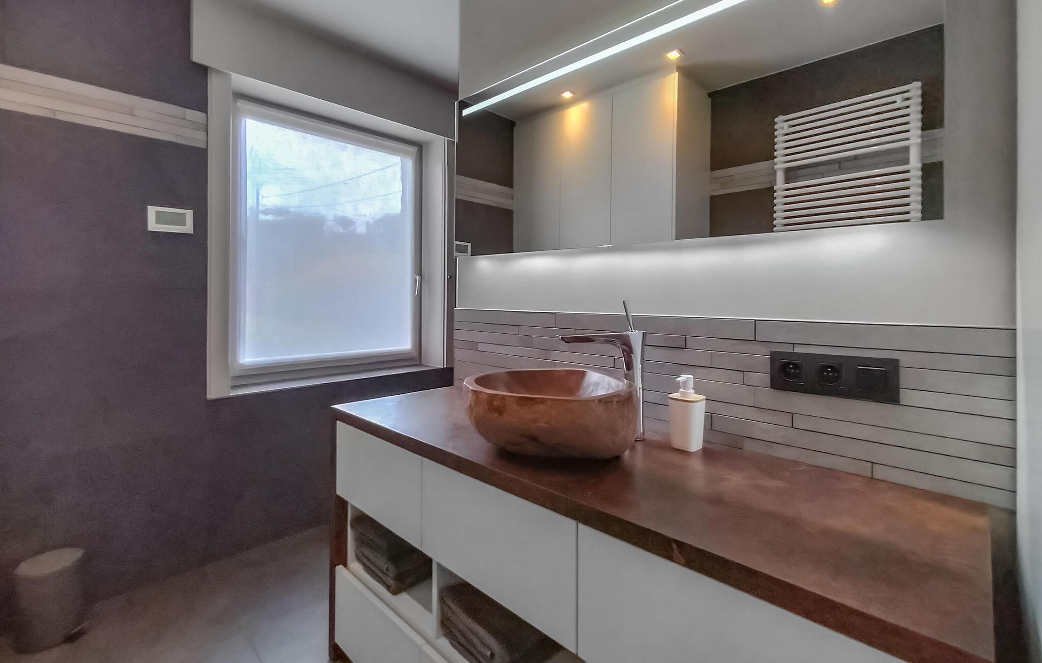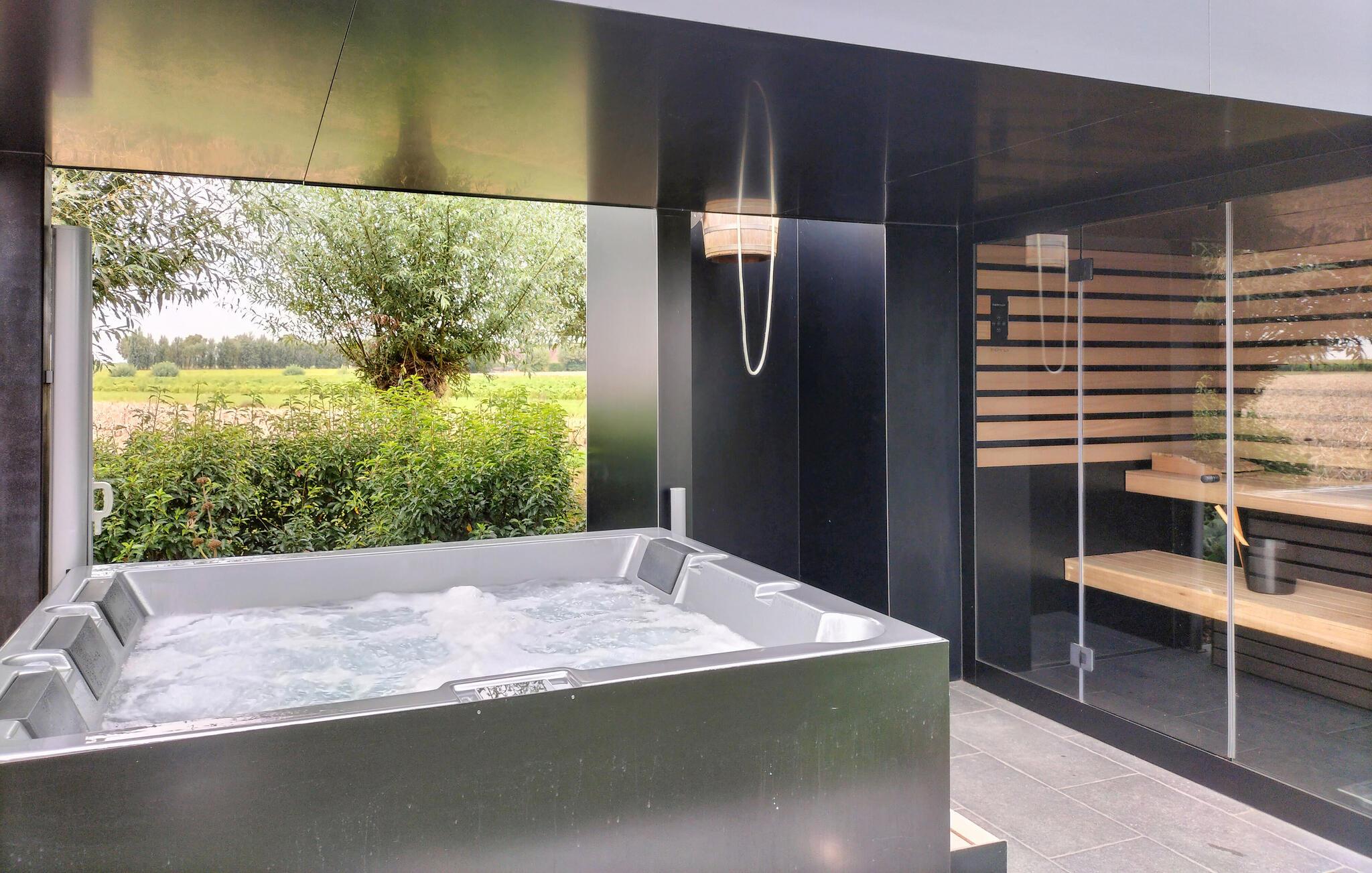 Den dedikerede husejer byggede personligt denne indbydende villa og tænkte på alle detaljer. Fuldend ferien i den afslappende private wellness-oase med udendørs spabad, udendørs sauna, spandbruser, sanitetsrum og afslapningsrum med lille tekøkken. I kan bruge disse mod et ekstra dagligt gebyr og nyde fire timers uafbrudt brug, et håndklæde og badekåbe samt et glas mousserende vin og en frisklavet frugtsalat. Her kan I se frem til flotte indretningsløsninger. De store vinduespartier giver jer udsigt til de karakteristiske grønne omgivelser og sørger for et stort lysindfald. Den airconditionerede stue har et komfortabelt opholdsområde med smart-tv, en rummelig spiseplads med et stort spisebord og et dejligt læsehjørne. I dette læsehjørne er der en komfortabel sofa, der kan laves om til en dobbeltseng. Med denne ekstra seng giver villaen fire par mulighed for at sove sammen. Dog er der ikke plads til mere end ti gæster i denne villa. Der er to badeværelser og et separat toilet er i stueetagen. Nyd de fire klimatiserede soveværelser, som lægger op til en god nats søvn på øverste etage.