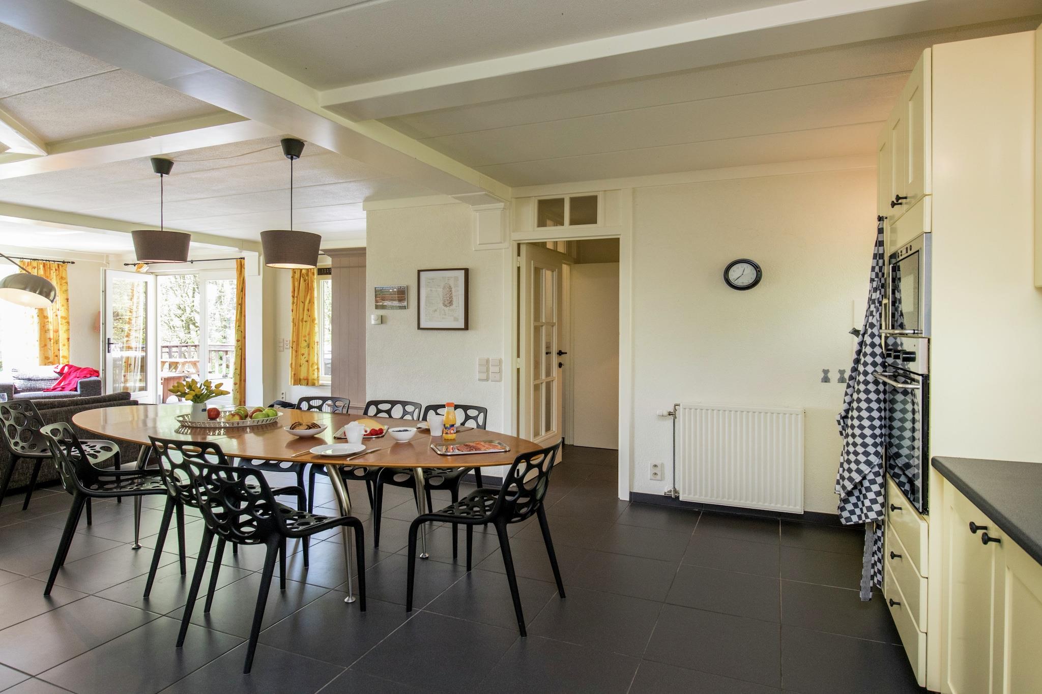 Stueetage: (åbent køkken(komfur(Komfur med fire kogeplader, elektrisk), kaffemaskine(kaffetragt), ovn(grill-ovn), mikrobølgeovn, opvaskemaskine , køleskab, fryser, barnestol), stue / spisestue(Fjernsyn(Hollandske TV-kanaler), spisebord(8 personer), DVD-afspiller, radio, CD-afspiller, stereoanlæg, balkon)) På 1. etage: (soveværelse(2x enkeltseng(dynebetræk)), soveværelse(dobbeltseng), soveværelse(dobbeltseng, håndvask), badeværelse(badekar, bruser(enhed), 2x håndvask, toilet)) Kælder: (sofastue, soveværelse(2x enkeltseng), opholdsrum(bordfodbold)) toilet, vaskerum (2x håndvask, vaskemaskine), tørretumbler, varme(central), terrasse(40 m2), terrasse, have(> 1000 m2), cykelopbevaring, havemøbler(8 personer), grill, parkering, liggestole, Parasol, legeredskaber, bordtennisbord