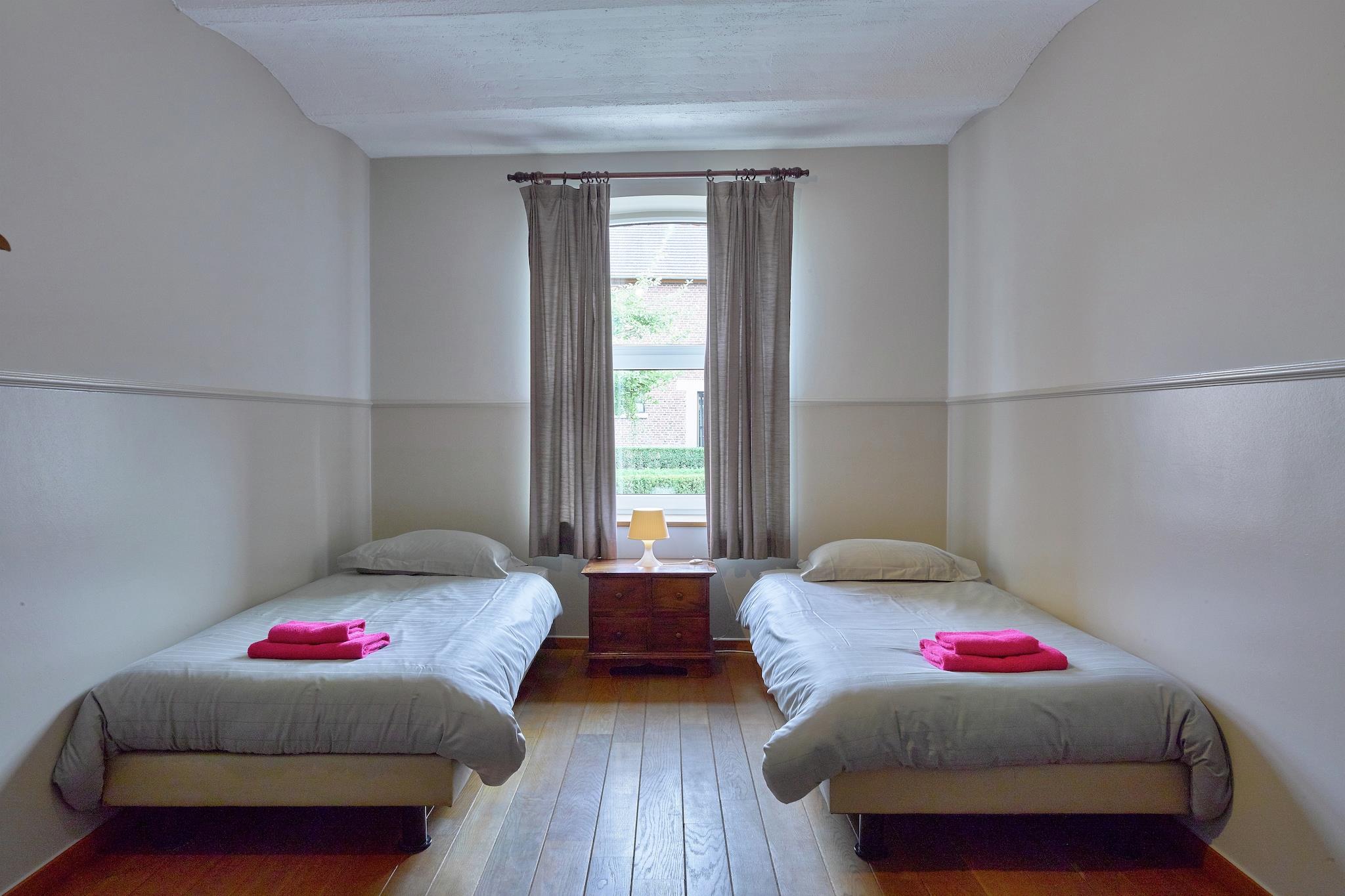 Oplev et fredeligt tilflugtssted i dette smukt renoverede karmeliterkloster i Zepperen, Sint-Truiden. Perfekt til store grupper eller familier, tilbyder hjemmet hyggelige soveværelser, veludstyrede badeværelser og bevarede klosterfunktioner. Gæsterne kan nyde fælles måltider i den store spisesal, slappe af i flere lounges eller slappe af i den frodige have med udsigt over frugtplantager og et charmerende kirketårn. Ejendommen er ideel til teambuilding eller sammenkomster med et fuldt udstyret køkken og et fantastisk spillerum med flipperspil, shuffleboard, billard, dart og en fotoboks. Udendørs er der en terrasse og grillplads, der er de perfekte rammer for afslappende aftener, og kæledyr er velkomne, så alle i familien kan nyde opholdet. Beliggende i Limburgs Haspengouw, Europas største frugtdyrkningsregion, er hjemmet omgivet af æble-, pære- og kirsebærplantager. Udforsk naturskønne blomsterstier på cykel eller Vespa, besøg lokale frugtgårde, eller slap af på sæsonbestemte blomsterbarer. I nærheden byder Sint-Truiden på gotisk arkitektur, middelalderkirker og pulserende søndagsmarkeder, mens Tongeren og Bokrijk tilbyder kulturelle udflugter. Lokale spisesteder inkluderer kæledyrsvenlige muligheder som Het Moment, De Fakkels og Herberg De Klappeel.