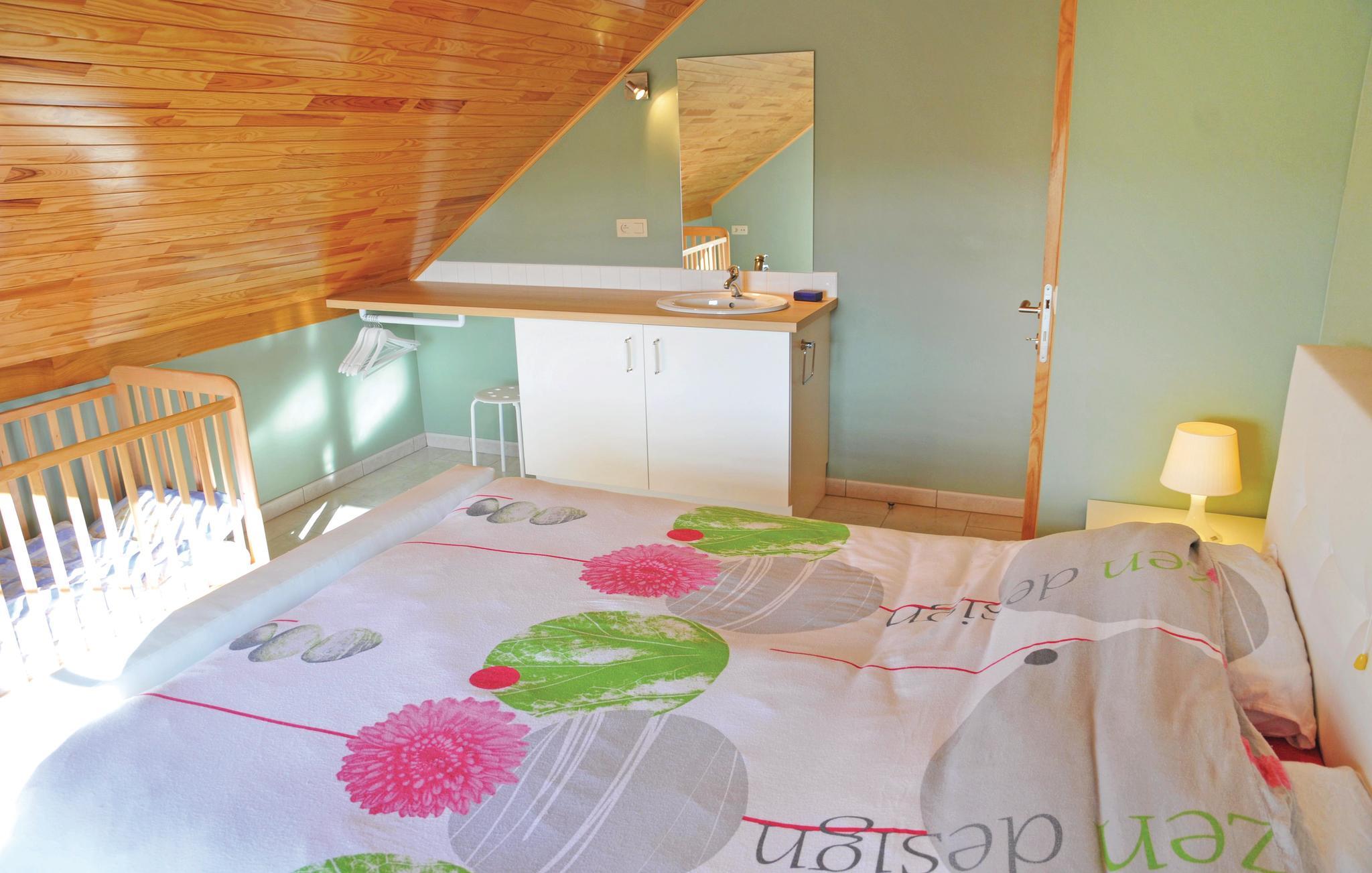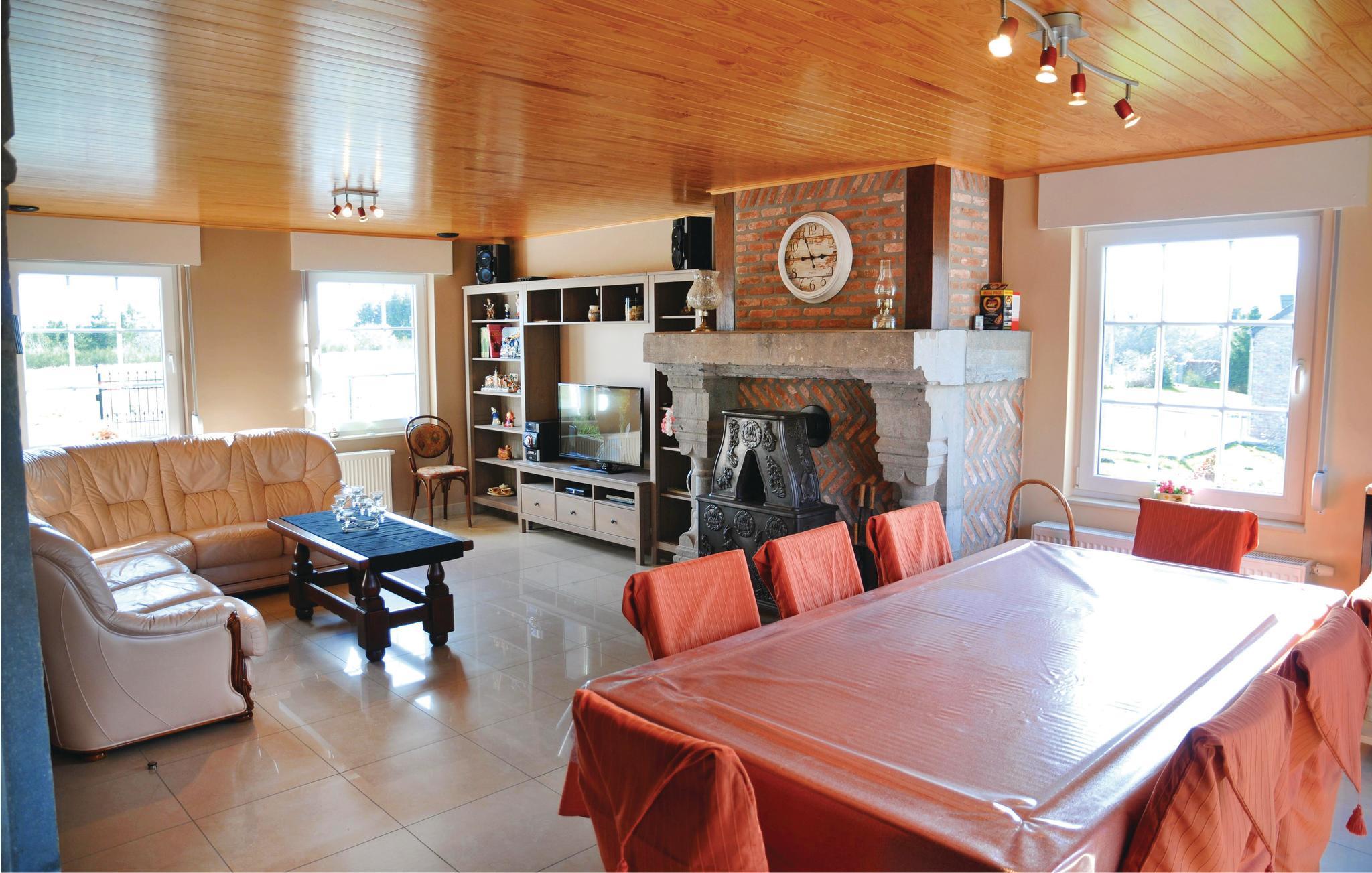 På en skråning i et boligområde i nærheden af Durbuy venter feriehuset Morice i et boligområde i nærheden af Durbuy. Herfra har I en herlig udsigt til det omgivende bakkelandskab. Der er 12 km til Durbuy, verdens mindste by, 20 km til Rochefort og 40 km til Dinant. Her kan I opleve og foretage jer meget som at sejle i kajak, køre på mountainbike, vandre, ride og besøge de mange seværdigheder som grotterne af Han, Rochefort og Hotton, borgene i Dinant og Namur, borgruinen af La Roche, Hare-Krishna-slottet ved Durbuy, bryggeriet af Maredsous og haverne af Annevoie. Fritidsområdet Chevetogne er et sandt paradis for familier med børn. Her er der ikke mindre end 12 legepladser, i kan sejle i robåd på den lille sø, ligge på engen, tre friluftsbade og en zoologisk have med klappe- og kæledyr. Alt dette har I lige i nærheden, og bor alligevel roligt. Der er et par andre huse omkring jer, men grundene er så store, at der ikke kan være tale om naboer. I landsbyen kan I købe økologiske produkter direkte hos bønderne. Prøv også på bondegolf, en sjov, flamsk variant af golf. Jeres feriehus er først blevet opført for nyligt og er udstyret med al slags komfort. Fra det store daglig- og spiseområde i stueetagen kan I træde ud på den store solterrasse. På samme etage er der også et sove- og et badeværelse. PÅ første sal er der fire soveværelser med to boksspringmadrasser hver, der udgør en dobbeltseng, men som kan skubbes fra hinanden. Nederst ligger garagen og et aktivitetsrum med bordfodbold, billard og tv med xbox. Derfra har I adgang til den indhegnede have over yderligere en overdækket terrasse. Feriehuset er en vidunderlig bolig til en ferie med flere familier.