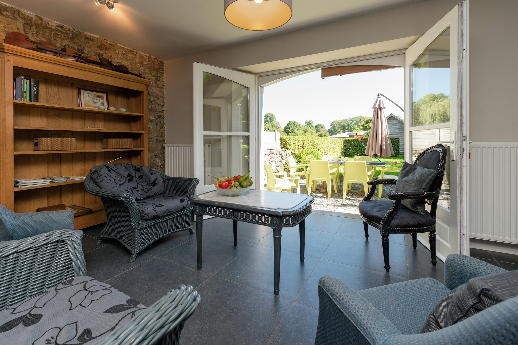 Dette moderne feriehus med 4 soveværelser ligger i det fredelige landskab i Sprimont og tilbyder en afslappende ferie for op til 8 gæster. Med en privat infrarød sauna, centralvarme og en delvist indhegnet have med en trampolin, er den perfekt til familier eller små grupper, der ønsker at slappe af i de belgiske Ardennerne. Huset har 3 badeværelser, rummelig opholds- og spiseplads samt gratis WiFi overalt. Det åbne køkken er fuldt udstyret med moderne apparater, og terrassen med grill er ideel til al fresco måltider. Indendørs kan du nyde en hyggelig aften ved brændeovnen, eller udfordre din gruppe til et spil bordfodbold. En høj stol og barneseng er tilgængelige efter anmodning, og der tilbydes parkering på stedet. Bemærk venligst: indtjekning er ikke tilladt efter kl. 20.00, undtagen i tilfælde af force majeure. Beliggende kun 1 km fra byens centrum, er boligen tæt på Remouchamps-hulerne, Zoo Reid, kurbyen Spa og Aywaille (6 km). Udendørs elskere vil nyde vandre- og cykelstierne, golfbanen (6,5 km) og skisportsstedet Baraque de Fraiture (35 km). Uanset om du er her for naturen, wellness eller familiehygge, tilbyder dette hjem en fredelig og veludstyret base.