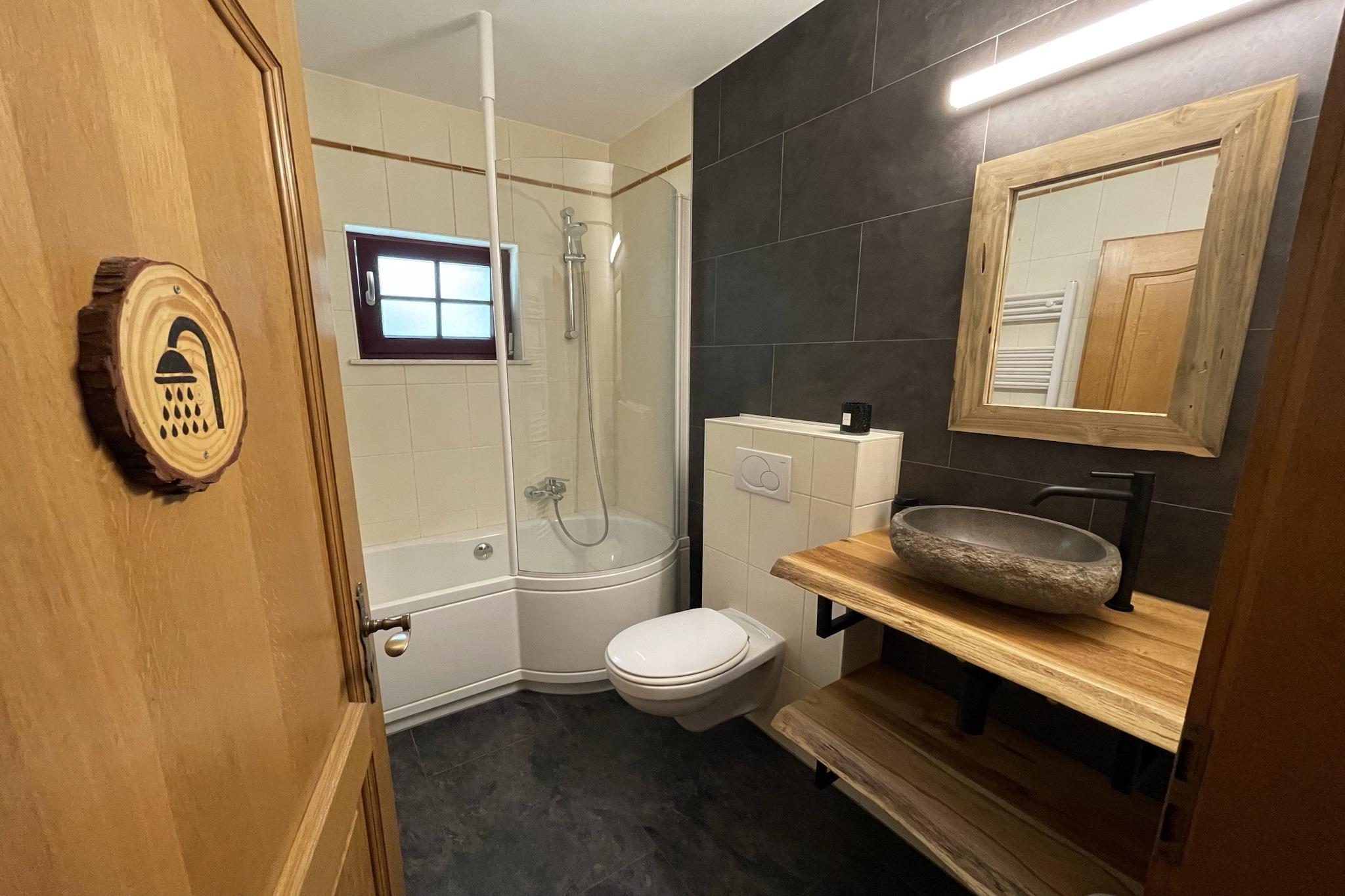 Charmerende feriehus til 12 gæster med have, pejs og opholdsrum i Sankt Vith Velkommen til Son de l"Our, et charmerende og rummeligt feriehus til op til 12 gæster og 1 kæledyr, beliggende i de smukke naturomgivelser i Sankt Vith i de østlige Ardenner. Dette hyggelige hus er ideelt for familier eller vennegrupper, der ønsker at nyde naturen, freden og komforten sammen. Huset kombinerer en autentisk atmosfære med moderne komfort. I stueetagen finder du en hyggelig stue med pejs, perfekt til afslappende aftener sammen. Denne etage tilbyder også to komfortable soveværelser med dobbeltsenge og et badeværelse med badekar og bruser. Fra balkonen kan du nyde den fredelige udsigt over det omkringliggende grønt. Mezzaninen har et hyggeligt tv-område og et afslapningshjørne med bordfodbold og ekstra sovepladser – et fantastisk sted for børn og teenagere. Herfra har du adgang til tagterrassen, hvor du kan slappe af og nyde den friske Ardennerluft. Husets hjerte ligger i stueetagen, hvor en rummelig spisestue og et fuldt udstyret køkken gør det nemt at lave mad og spise sammen med hele gruppen. Denne etage byder også på tre ekstra soveværelser og et badeværelse med bruser. Udenfor finder du en stor have med terrasse, havemøbler og grill, perfekt til lange sommeraftener. Børnene kan lege i haven, mens de voksne nyder de fredelige Ardenner-omgivelser. Der er også parkeringsplads til flere biler. Regionen omkring Sankt Vith er kendt for sine smukke landskaber, skove og vandreruter. Floder, charmerende landsbyer og mange muligheder for vandreture og cykling findes i nærheden, samt nem adgang til Tyskland og Luxembourg. Son de l'Our er det perfekte sted for et afslappende ophold i Ardennerne med familie eller venner.