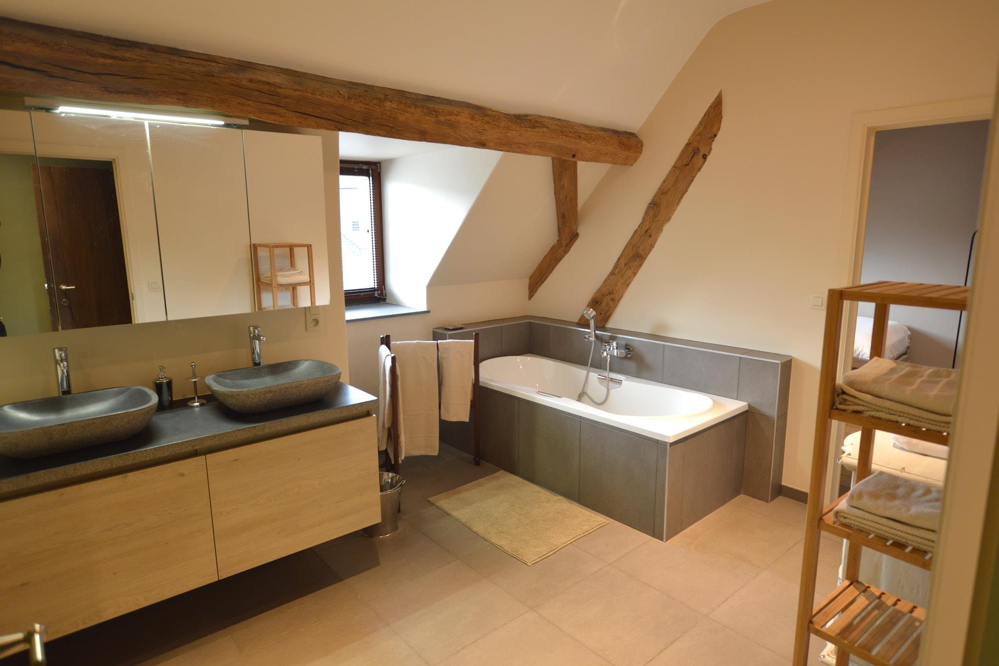 I slutningen af en blindgyde, omgivet af skovklædte bakker og enge, vil \ Moulin-de-Vaulx \ byde dig velkommen til et ophold med venner eller familie eller til selskabsrejser som seminarer eller teambuilding. Denne gamle gård, der er blevet fuldstændig renoveret, garanterer et bemærkelsesværdigt ophold. Du vil finde fred, plads og komfort i denne charmerende indrettede lejlighed med en varm atmosfære. Unge og gamle vil nyde billardbordet i entreen og pizzaovnen i køkkenet. Ferieboligen er omgivet af en stor have ved siden af en lille flod. Der er mange terrasser, så du kan nyde solen i hele dag. Der er også mange sportsaktiviteter og seværdigheder i Vallée de la Molignée 's bemærkelsesværdige omgivelser. Og for dem, der elsker motorcykler og biler, er Mettet kredsløb kun få kilometer væk. Moulin-de-Vaulx består af 2 enheder : et stort hus og en mindre. Du har adgang til hele sommerhuset: du vil være den eneste beboer i det store hus samt den lille.