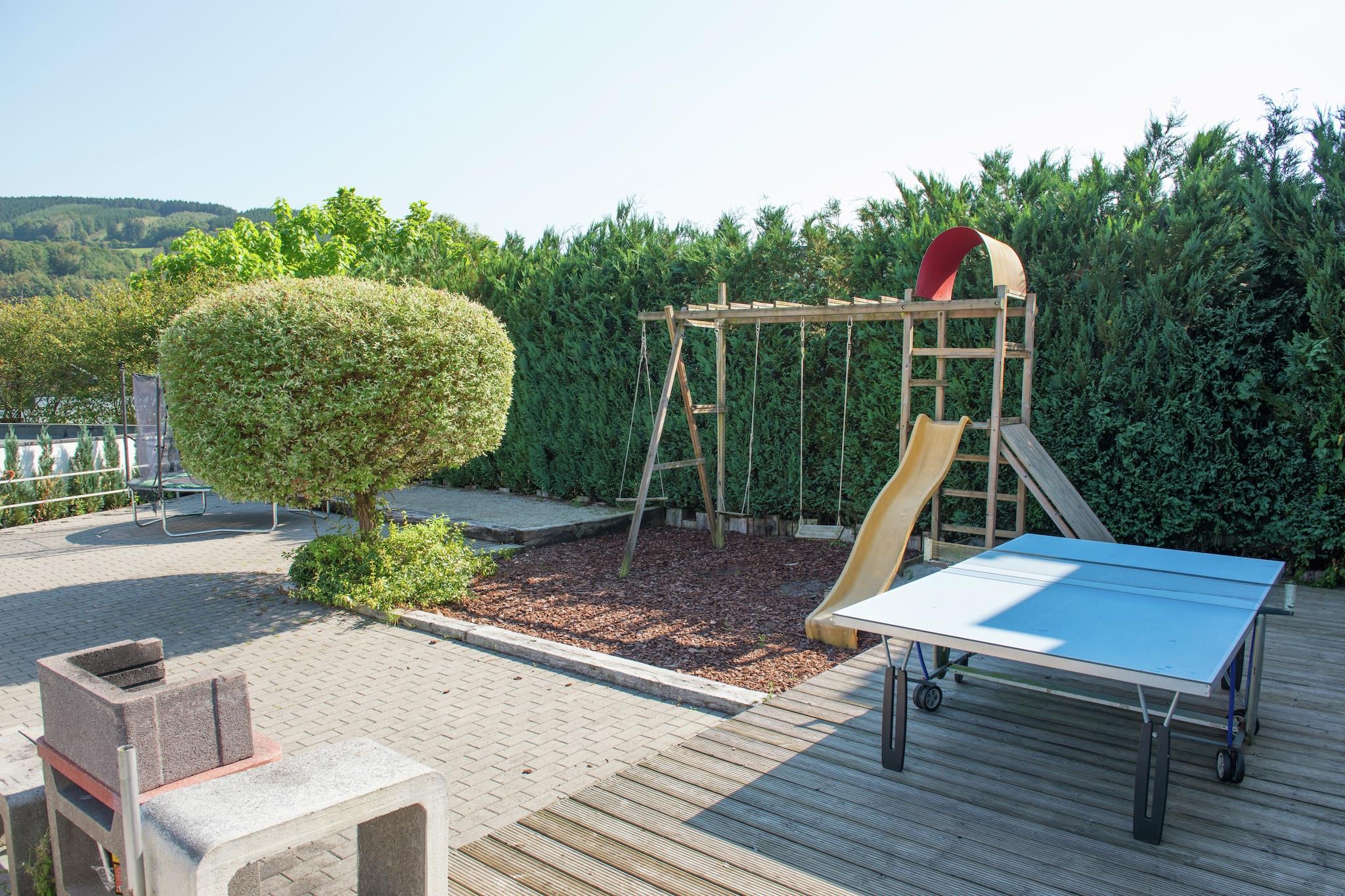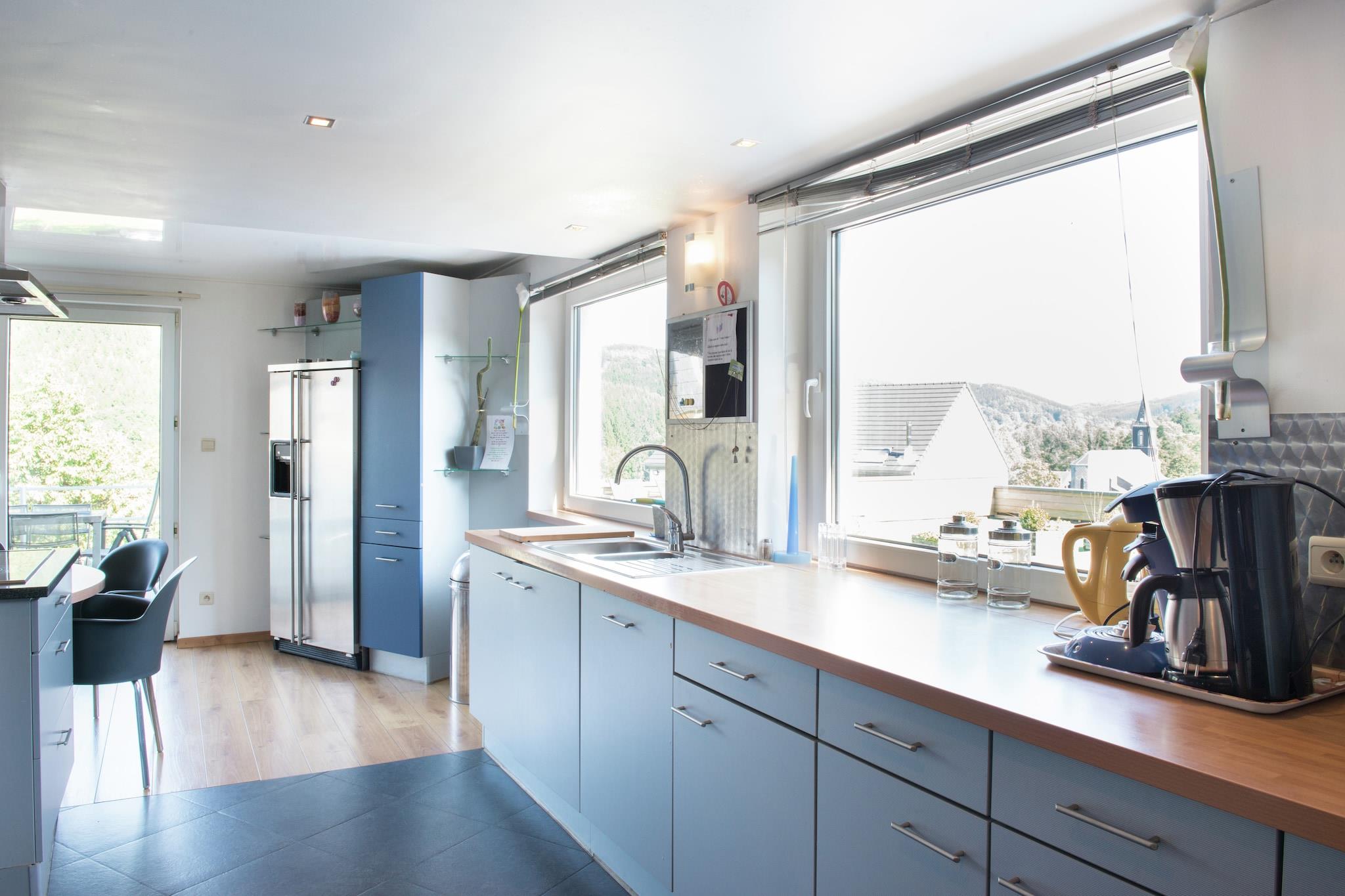 Dette smukke hus ligger i en pragtfuld beliggenhed 7 km fra Francorchamps centrum. Det er tilknyttet feriehuset Les Bastinettes (B 02145). Landsbyen Moulin du Ruy ligger 15 km vest for Stavelot. Fra huset kan du nyde en smuk udsigt over skovene og landsbyen Moulin du Ruy. Huset er rummeligt, meget komfortabelt og møbleret i en meget original stil. Farverne, planløsningen og møblerne - intet er overladt til tilfældighederne. Du har et fuldt udstyret køkken med morgenmadsbar, og huset har en brændeovn til at forbedre dine aftener. Et soveværelse i stueetagen er specielt tilpasset til bevægelseshæmmede, tilgængeligt for kørestolsbrugere, med bruser og håndvask. Huset har et stort udendørsområde med to terrasser (150 m² og 40 m²) udstyret med havemøbler, grill og bordtennisbord. Parkering er tilgængelig meget tæt på huset. Fælles fitnesscenter med professionelt udstyr (Technogym), adgang EURO10/session. Ejendommen er tilgængelig for kørestolsbrugere og udstyret med vægstøttehåndtag til gæster med nedsat mobilitet.