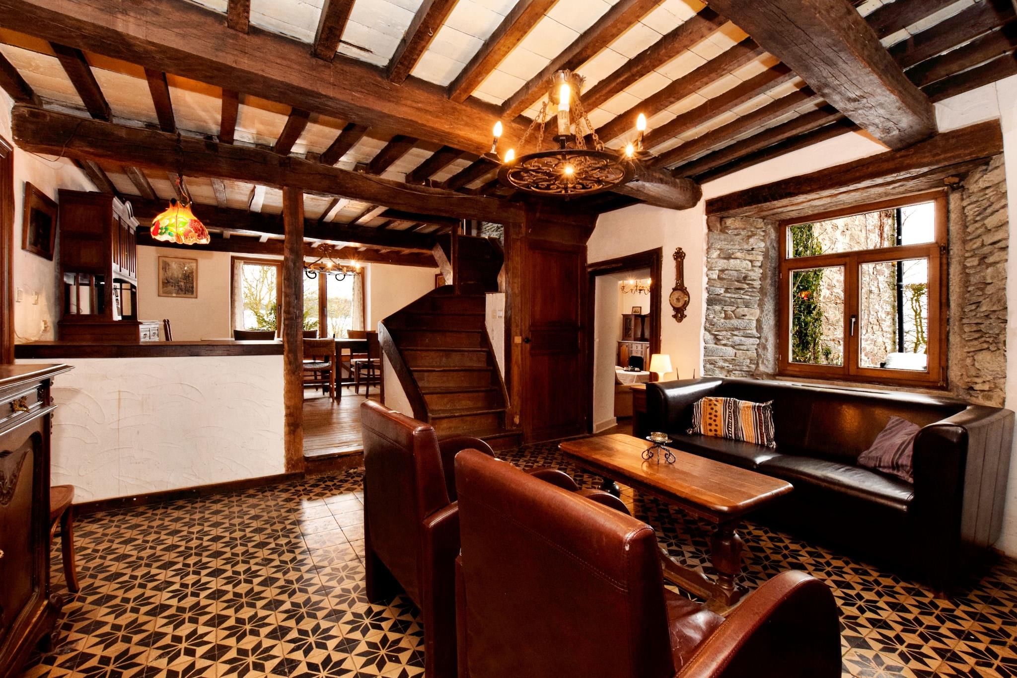 Denne indbydende villa i Trèsfontaines, Tenneville, er et perfekt tilflugtssted på landet for familier eller grupper på op til 14 gæster. Boligen er omgivet af frodig skov kun 100 meter væk og byder på ro og nem adgang til naturen. Den historiske by La Roche-en-Ardenne med sit feudale slot og naturskønne udsigt over floden ligger kun 15 km væk. Friluftsentusiaster kan udforske vandrestierne ved Le Hérou, nyde panoramaudsigten ved Panorama Les Deux Ourthes eller besøge Barrage de Nisramont for vandaktiviteter. Villaen strækker sig over tre etager og har seks soveværelser, inklusive et gennemgangsværelse og et privat en-suite. To hyggelige stuer med brændeovne og underholdningssystemer giver plads til at slappe af, mens det fuldt udstyrede køkken omfatter opvaskemaskine, ovn, mikroovn og vaskemaskine. Gæsterne kan nyde indendørs spil såsom bordfodbold og bordtennis, og børn vil elske trampolinen og legeredskaberne. Centralvarme, en høj stol og en børneseng gør det familievenligt året rundt. Nærliggende spisemuligheder omfatter Le Repos du Moineau til fransk-europæisk køkken, Ristorante Pizzeria Greggorio til håndværksmæssig pizza og Frites Burgers & Co, en lokal favorit til belgisk-amerikansk komfortmad.