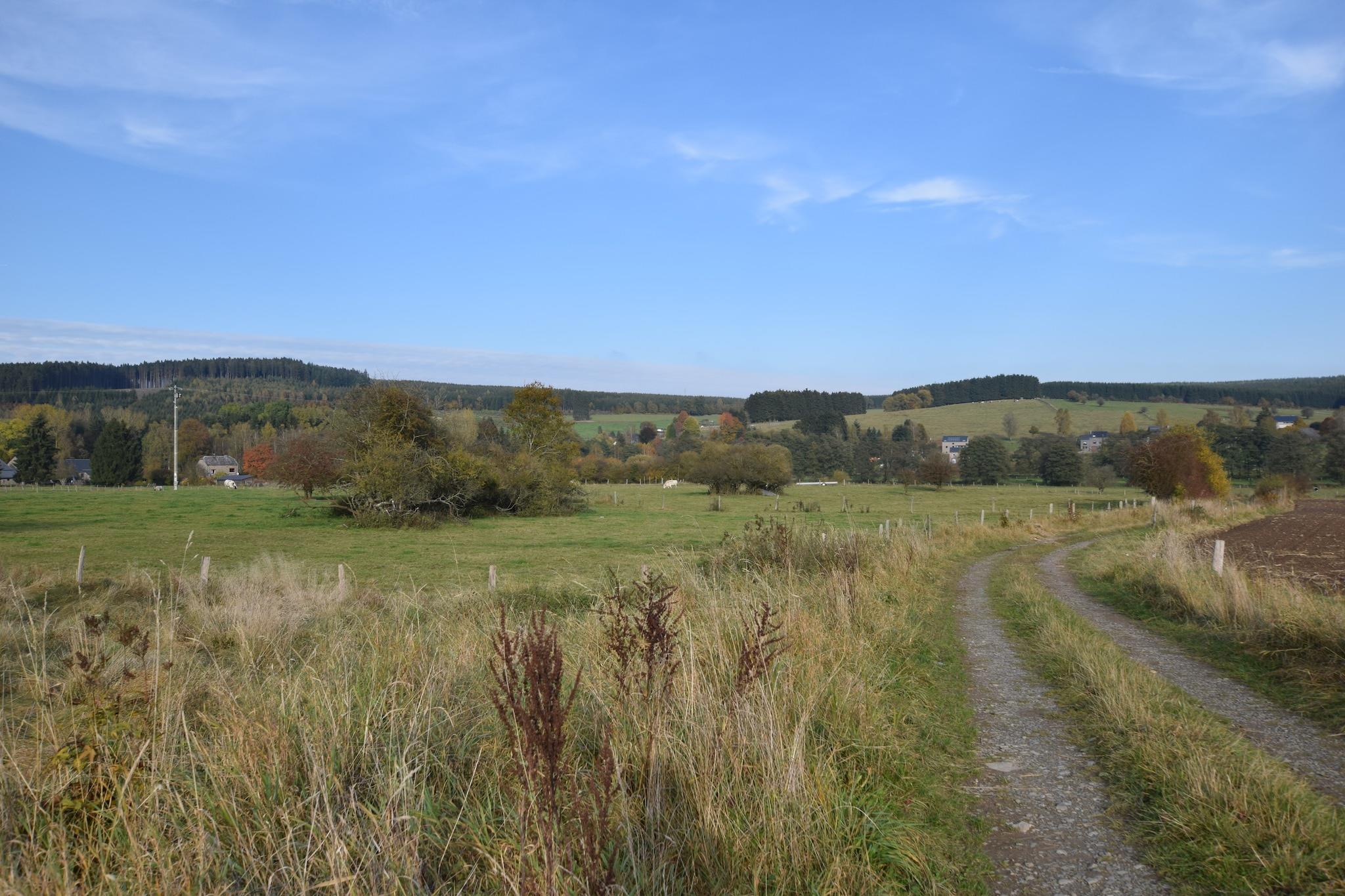 Prima huisje met mooie ligging en uitzicht tussen de bomen door naar lagere weilanden en een nog zeer smalle Ourthe.